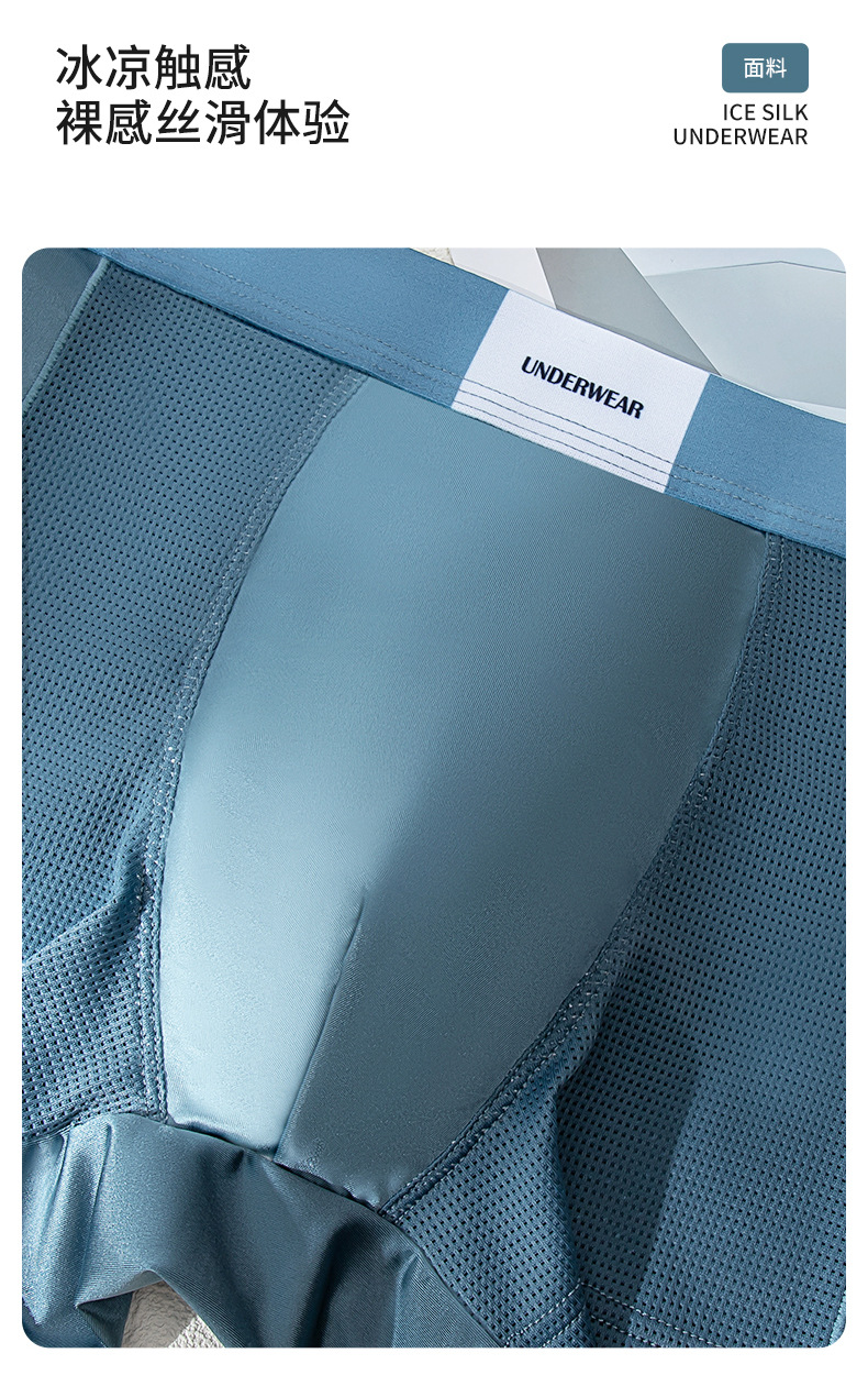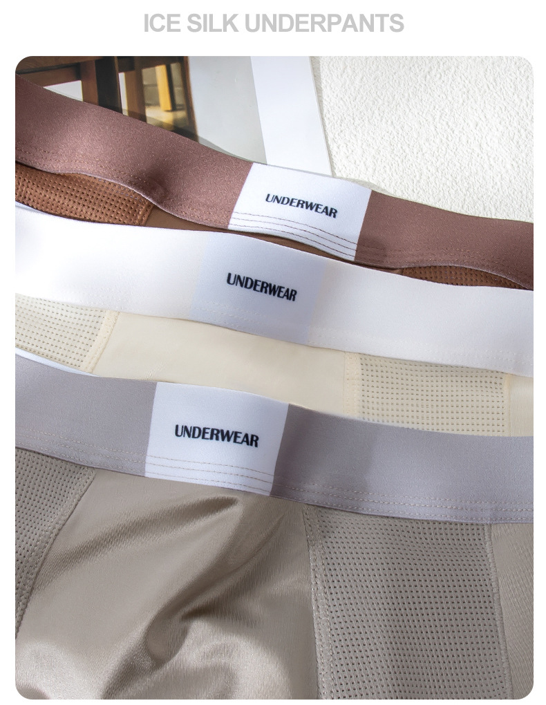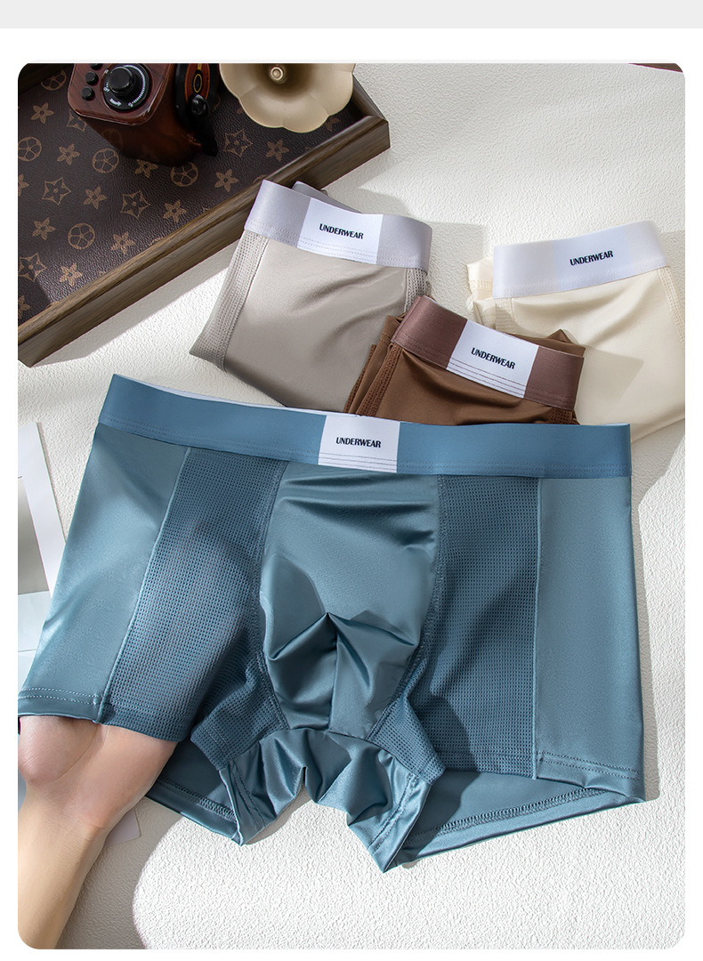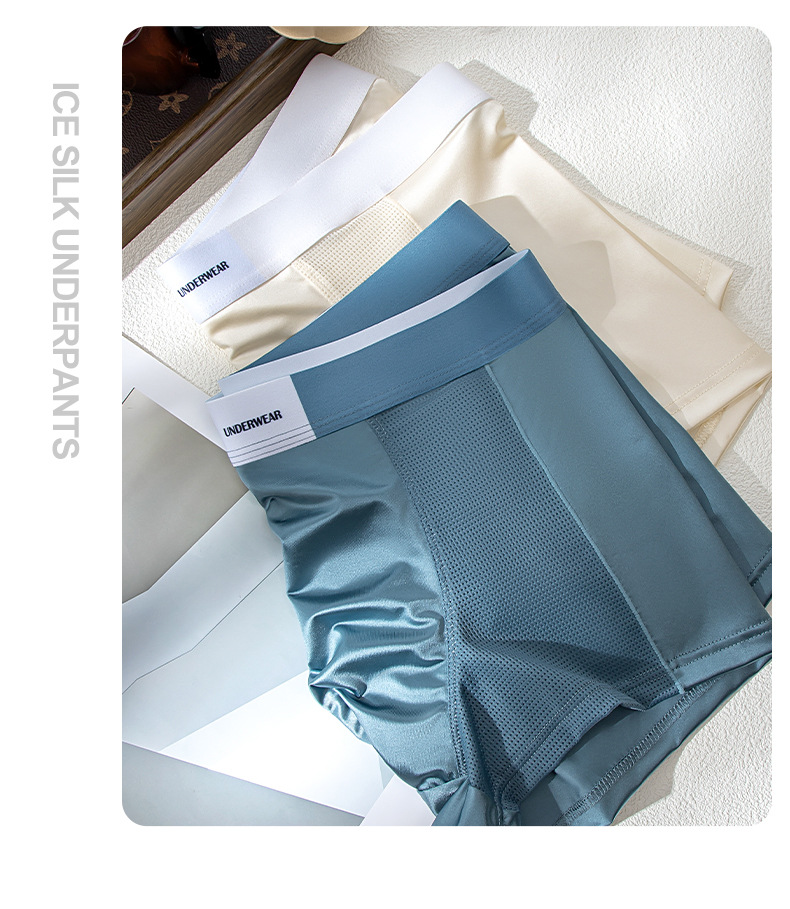 Calzoncillos de seda de hielo para hombres de nuevo estilo, pantalones cuadrangulares de gran tamaño 10A antibacterianos, transpirables y cómodos, pantalones cortos de malla de color sólido