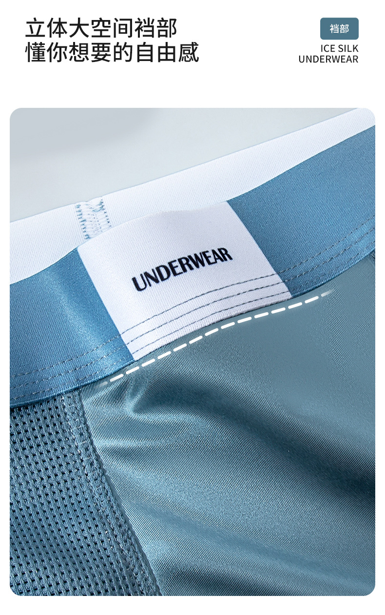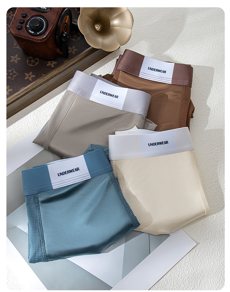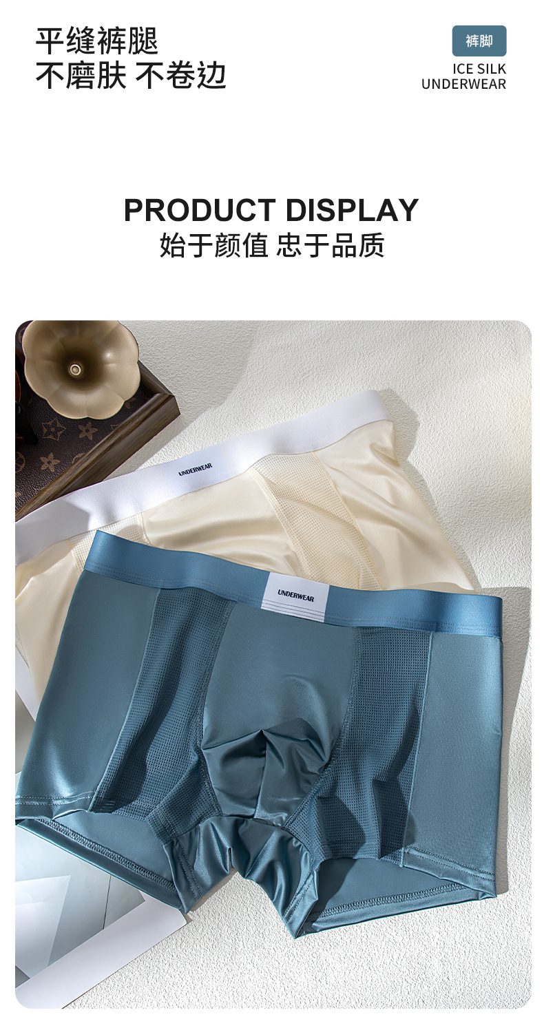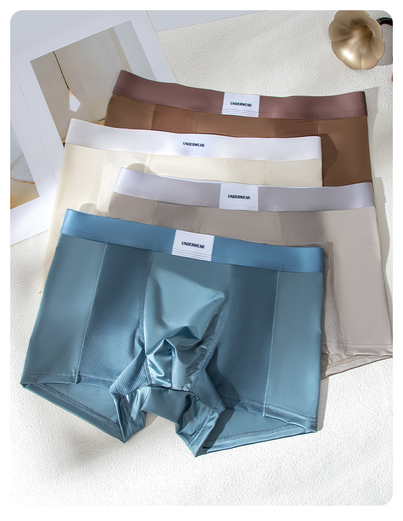 Calzoncillos de seda de hielo para hombres de nuevo estilo, pantalones cuadrangulares de gran tamaño 10A antibacterianos, transpirables y cómodos, pantalones cortos de malla de color sólido