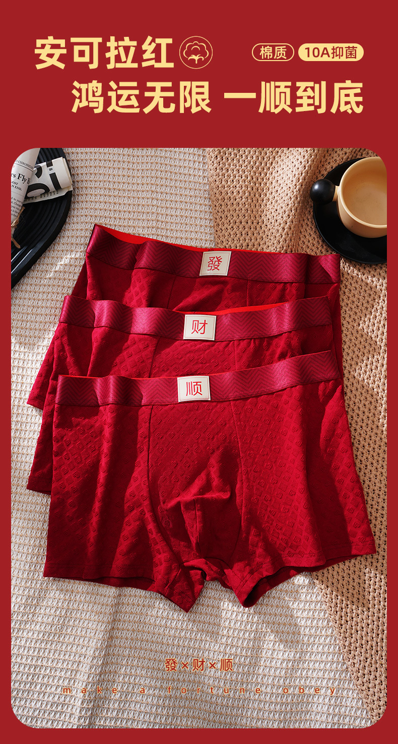 Hong Yun, ropa interior de hombre, algodón rojo transpirable y cómodo jacquard, pantalones de regalio de celebración