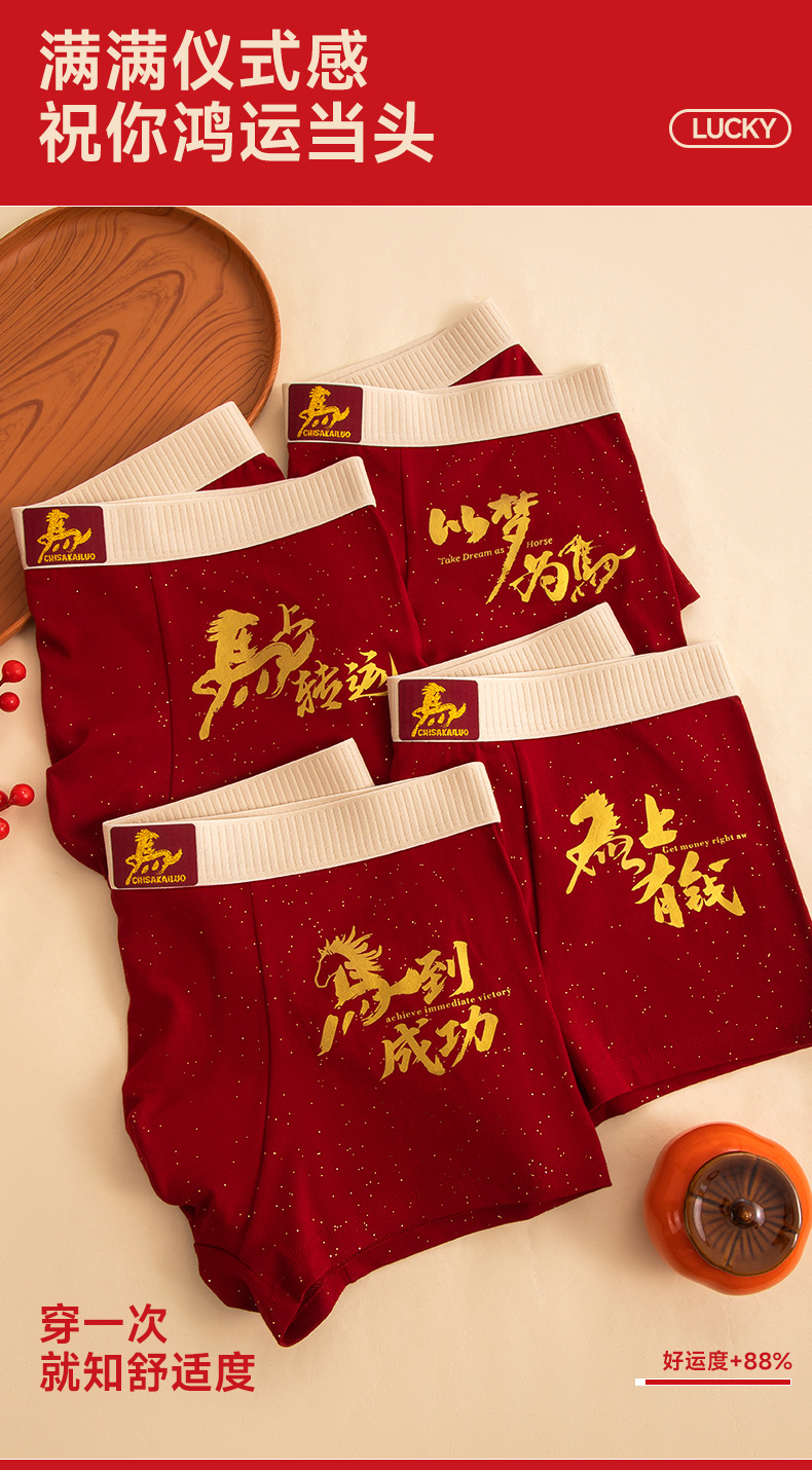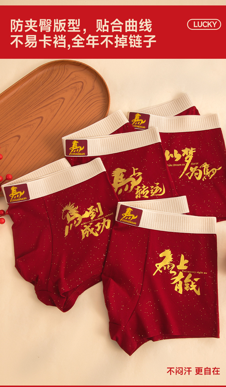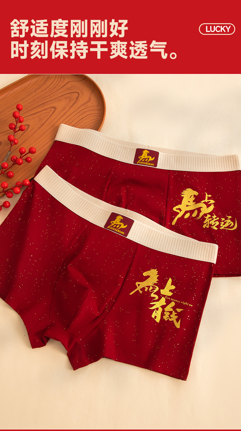 Algodón rojo para hombre calzoncillos de invierno para hombres Jacquard regalo de Año Nuevo para el año de la vida para hombres pantalones planos