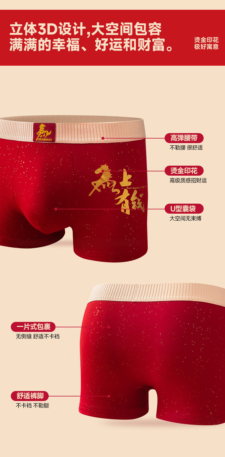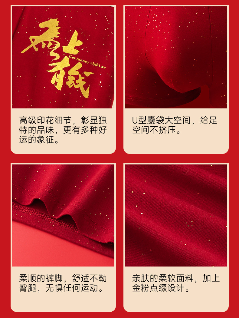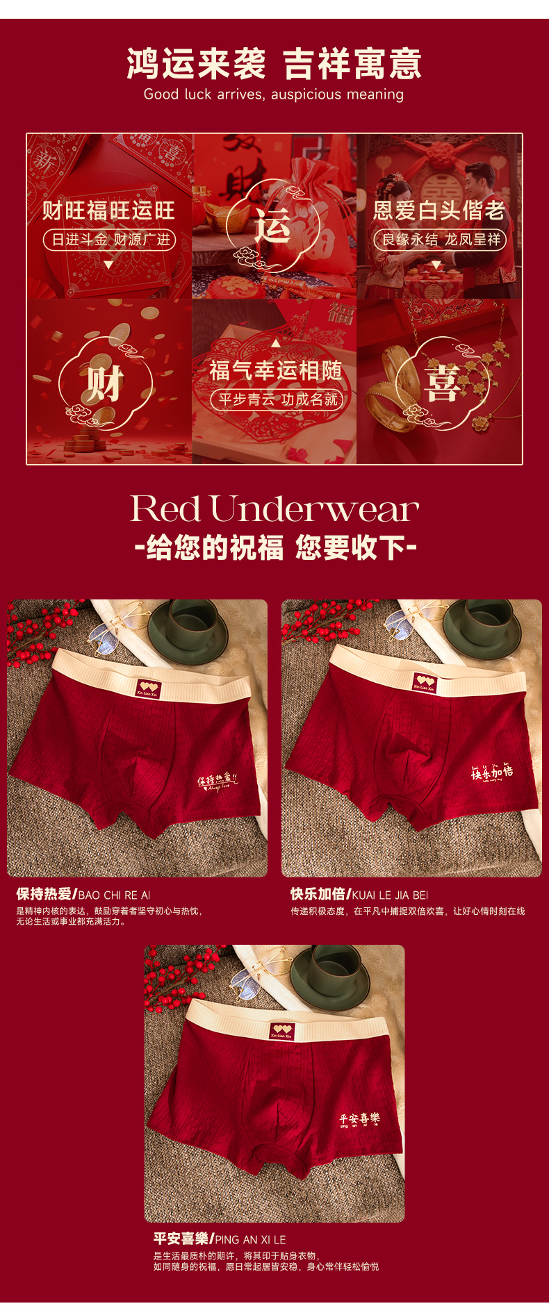Algodón rojo para hombre calzoncillos de invierno para hombres Jacquard regalo de Año Nuevo para el año de la vida para hombres pantalones planos