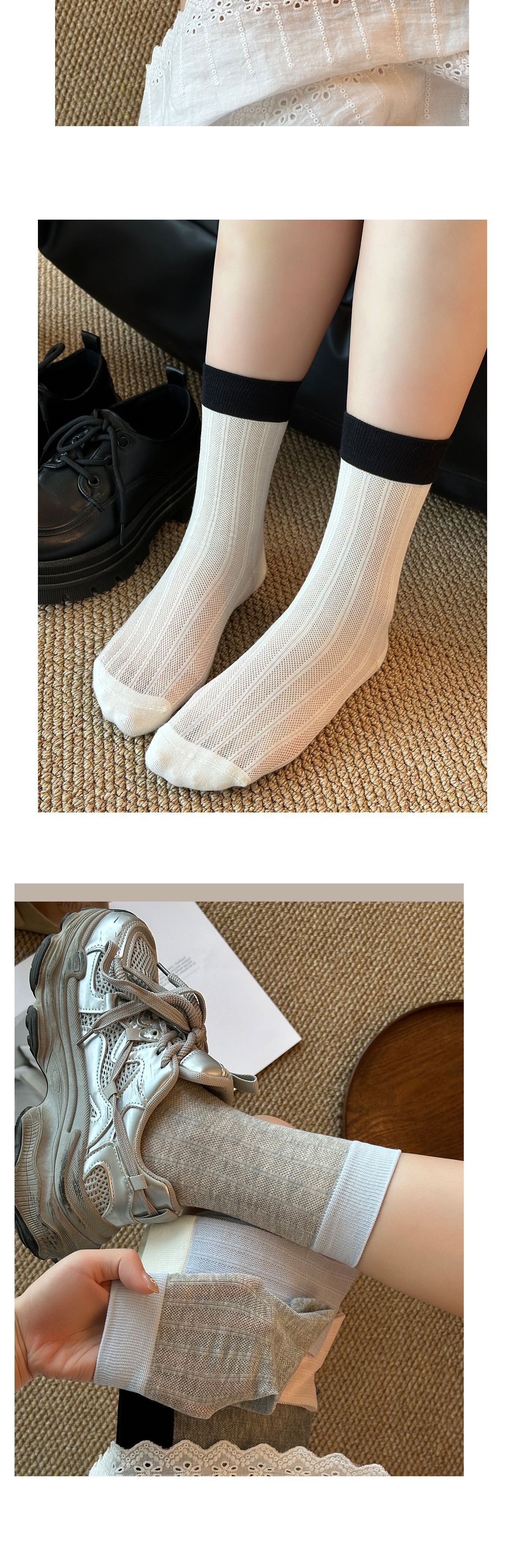 Calcetines de verano para mujer, estilo coreano, de malla fina, huecos, absorbentes del sudor, transpirables, versátiles, hasta la pantorrilla.