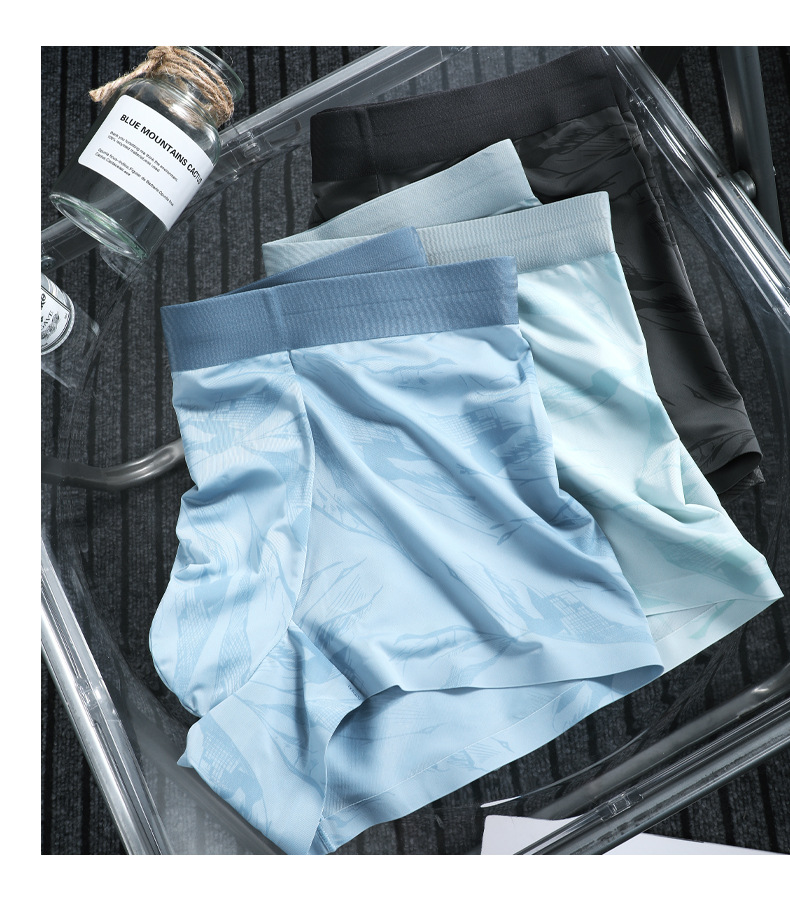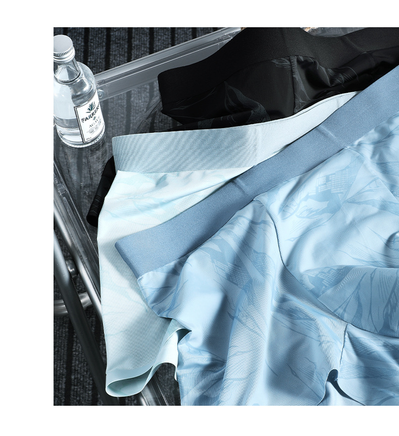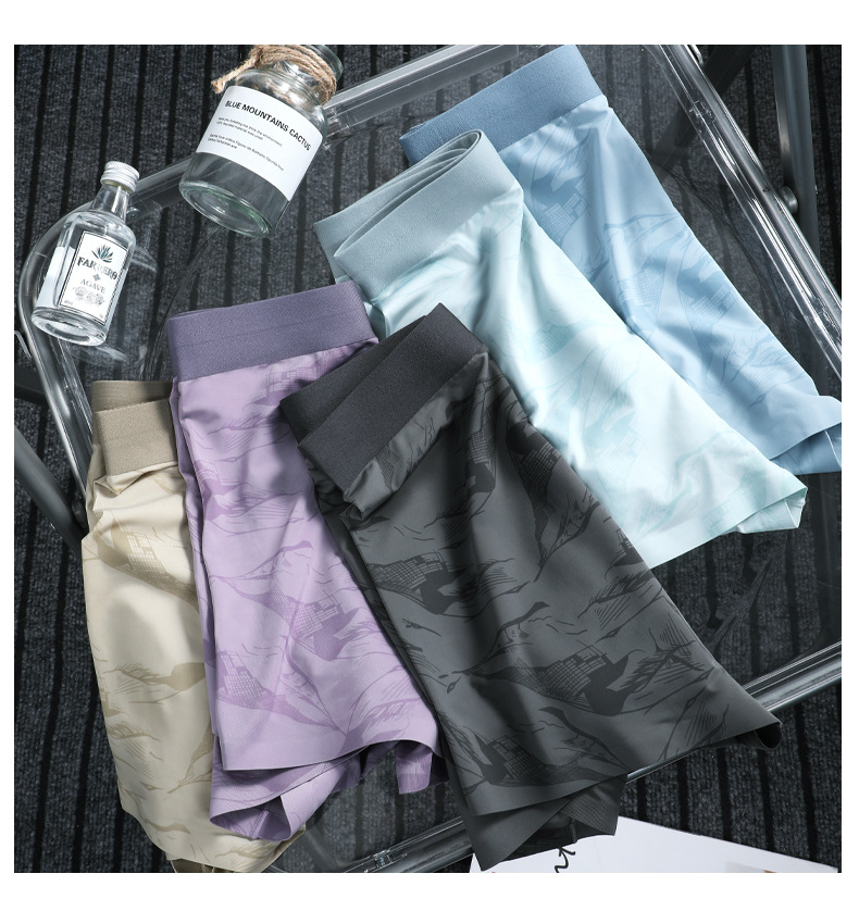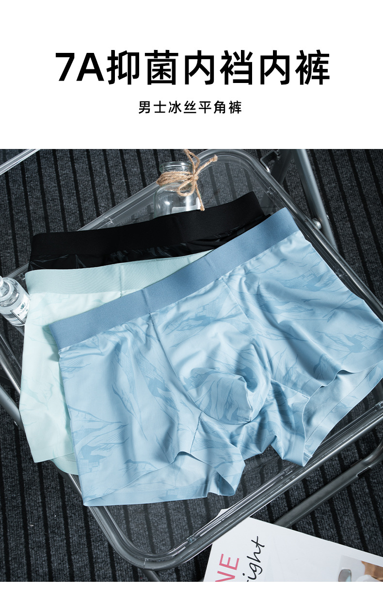 Procesamiento de ropa interior de hombre personalizada 7A, archivo interno antibacteriano, nuevo estilo de verano, calzoncillos bóxer cómodos elásticos de seda de hielo, calzoncillos bóxer