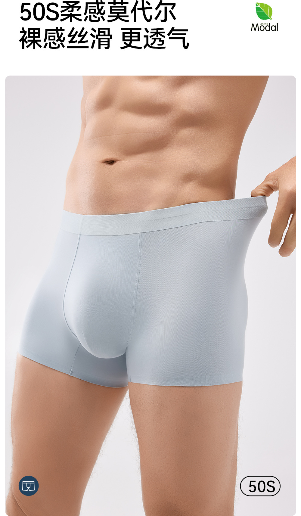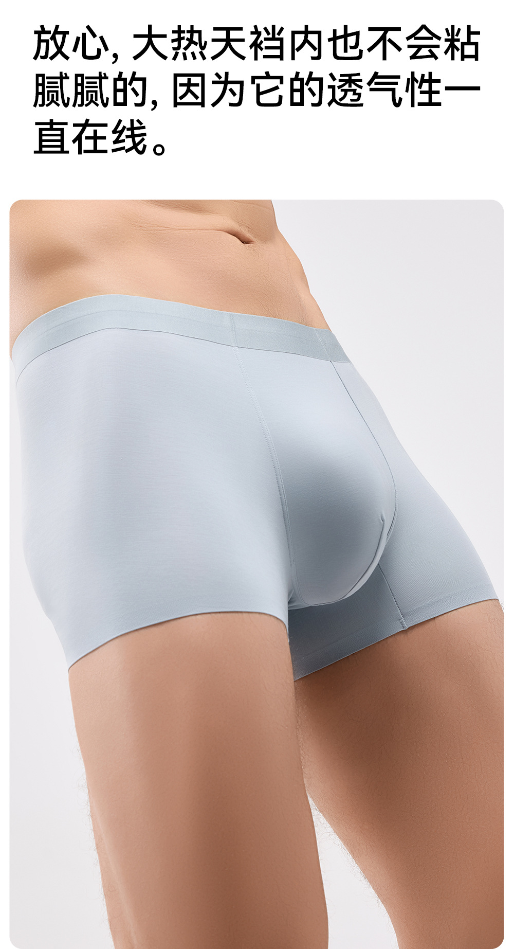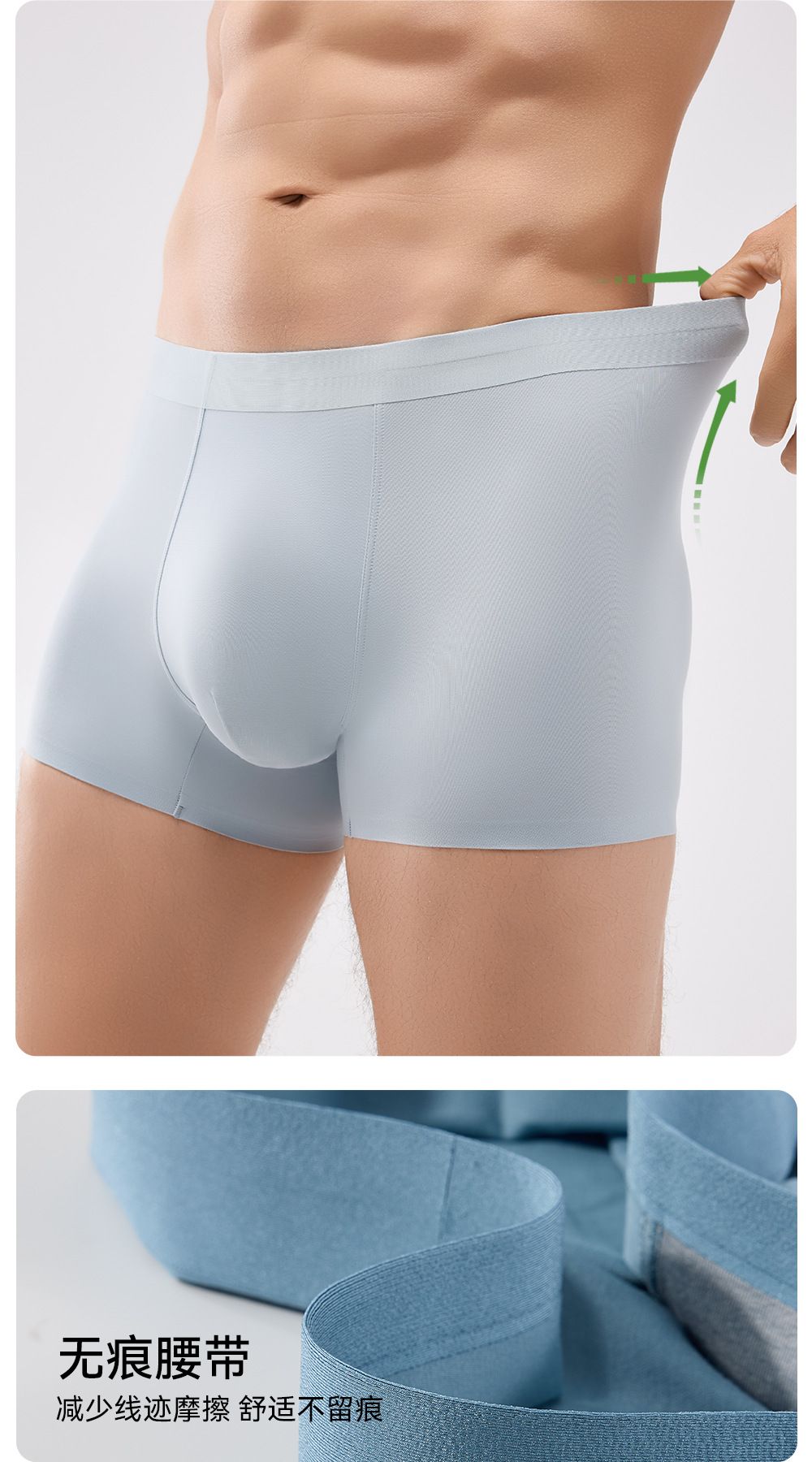 Pantalones interiores masculinas primavera y verano antibacterianas absorción de sudor transpirable de cuatro esquinas de cintura sin marcas de una pieza de pantalones de color sólido