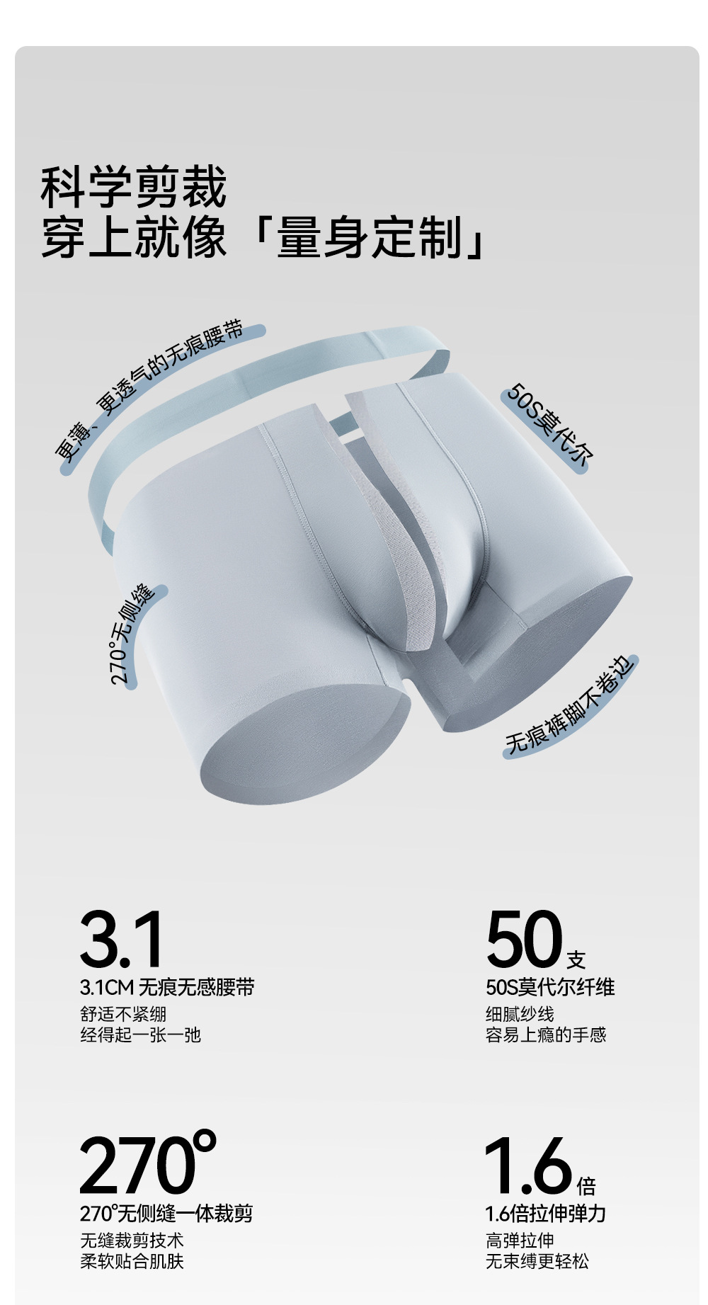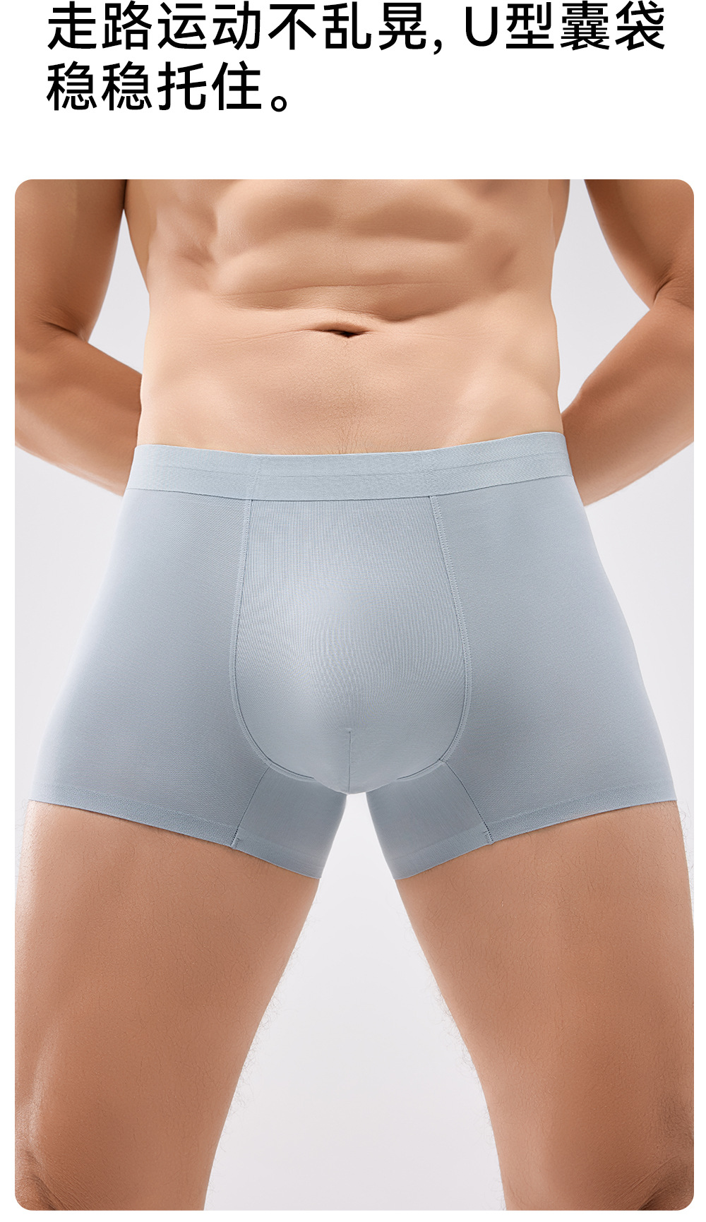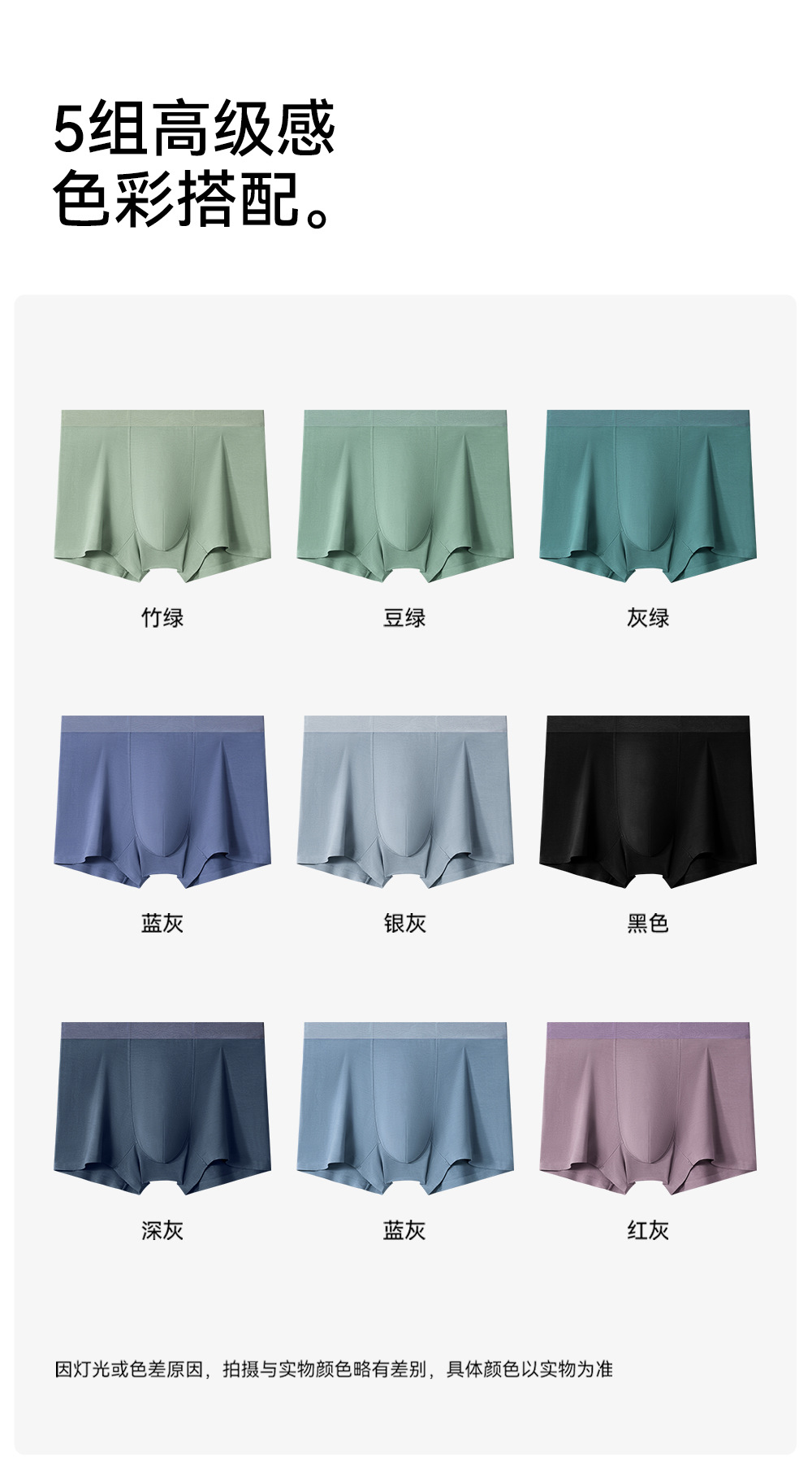 Pantalones interiores masculinas primavera y verano antibacterianas absorción de sudor transpirable de cuatro esquinas de cintura sin marcas de una pieza de pantalones de color sólido