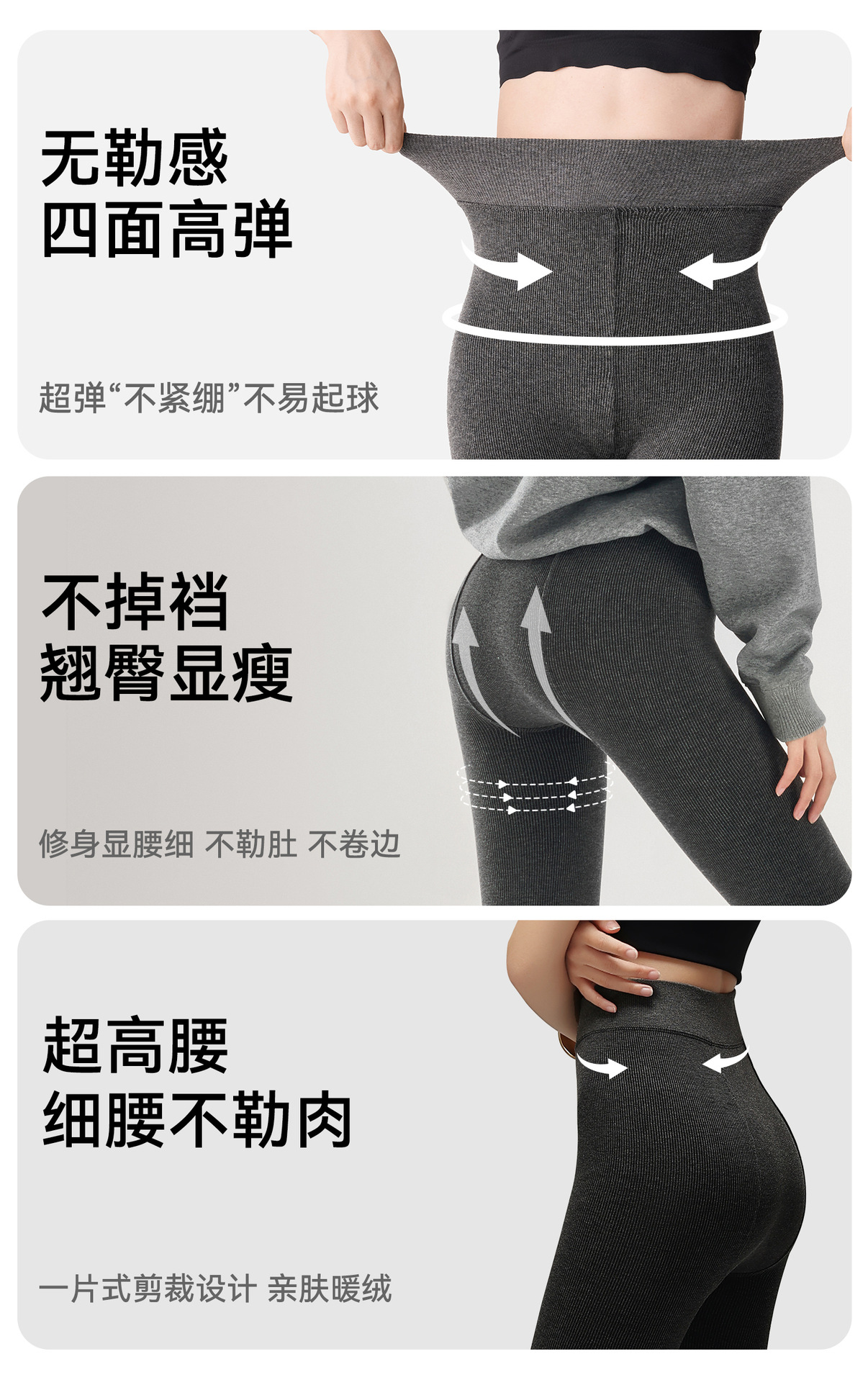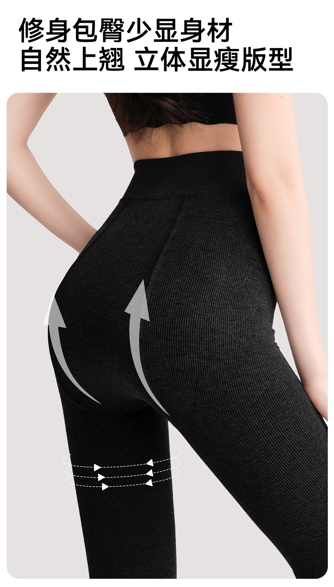 Pantalones leggings para mujeres de invierno con algodón grueso vertical de micropresión calzoncillos grises abdominales elevadores
