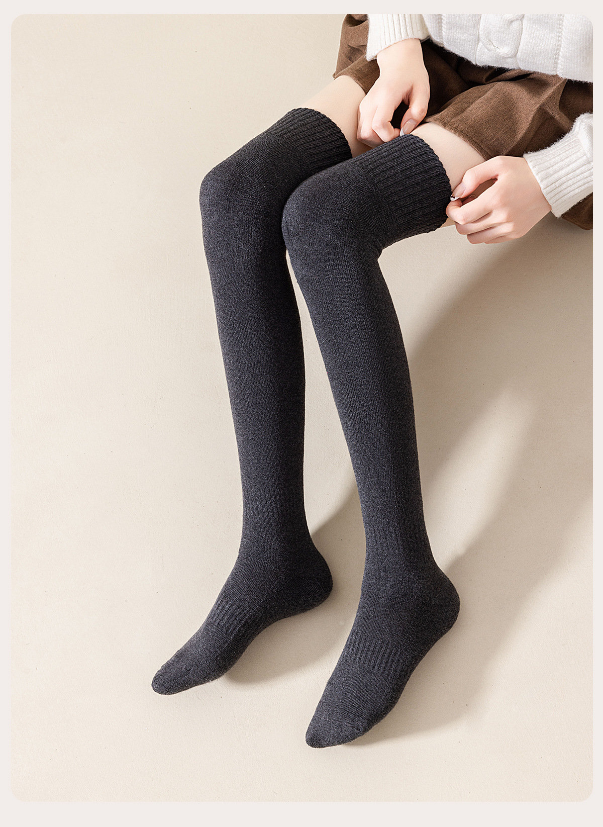 Calcetines de rodilla de mujer calcetines de invierno y otoño de lana calcetines de pantorrilla gruesas calcetines de rodilla de color sólido de pierna larga de invierno