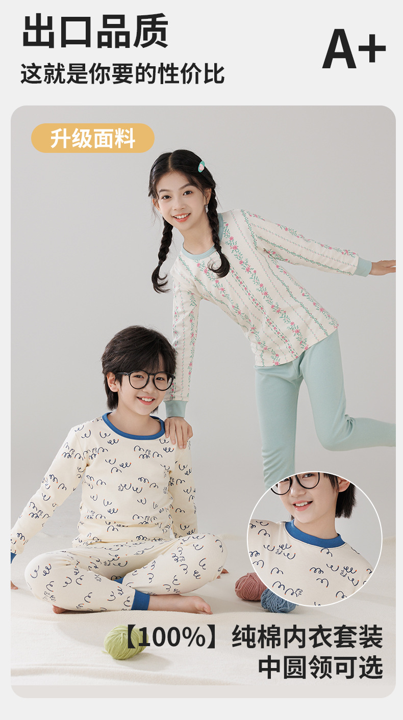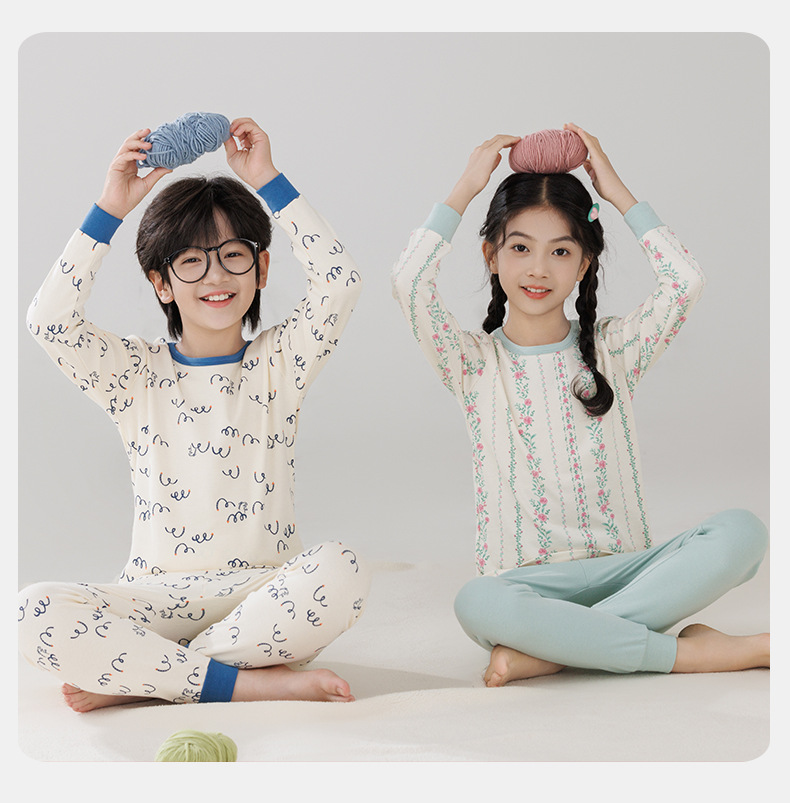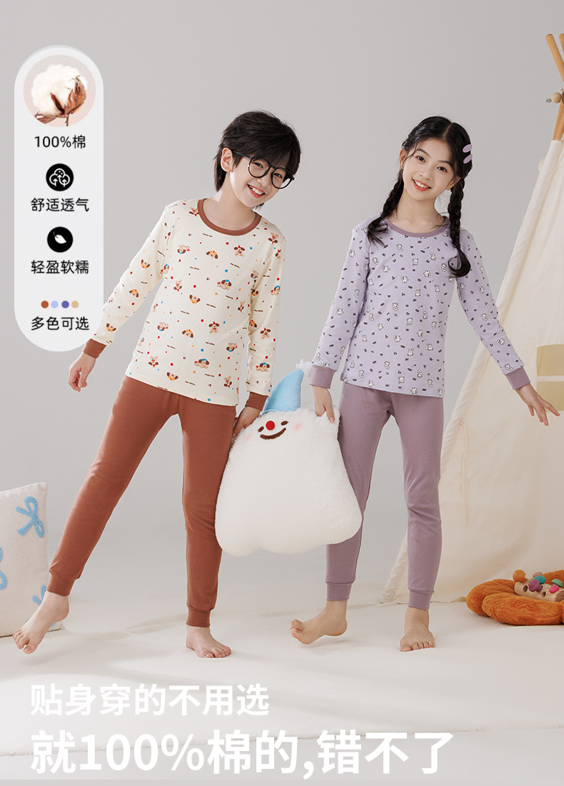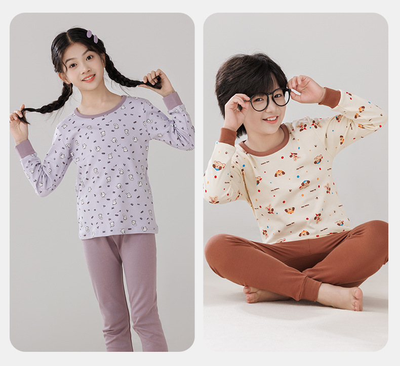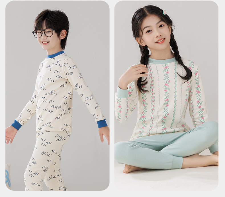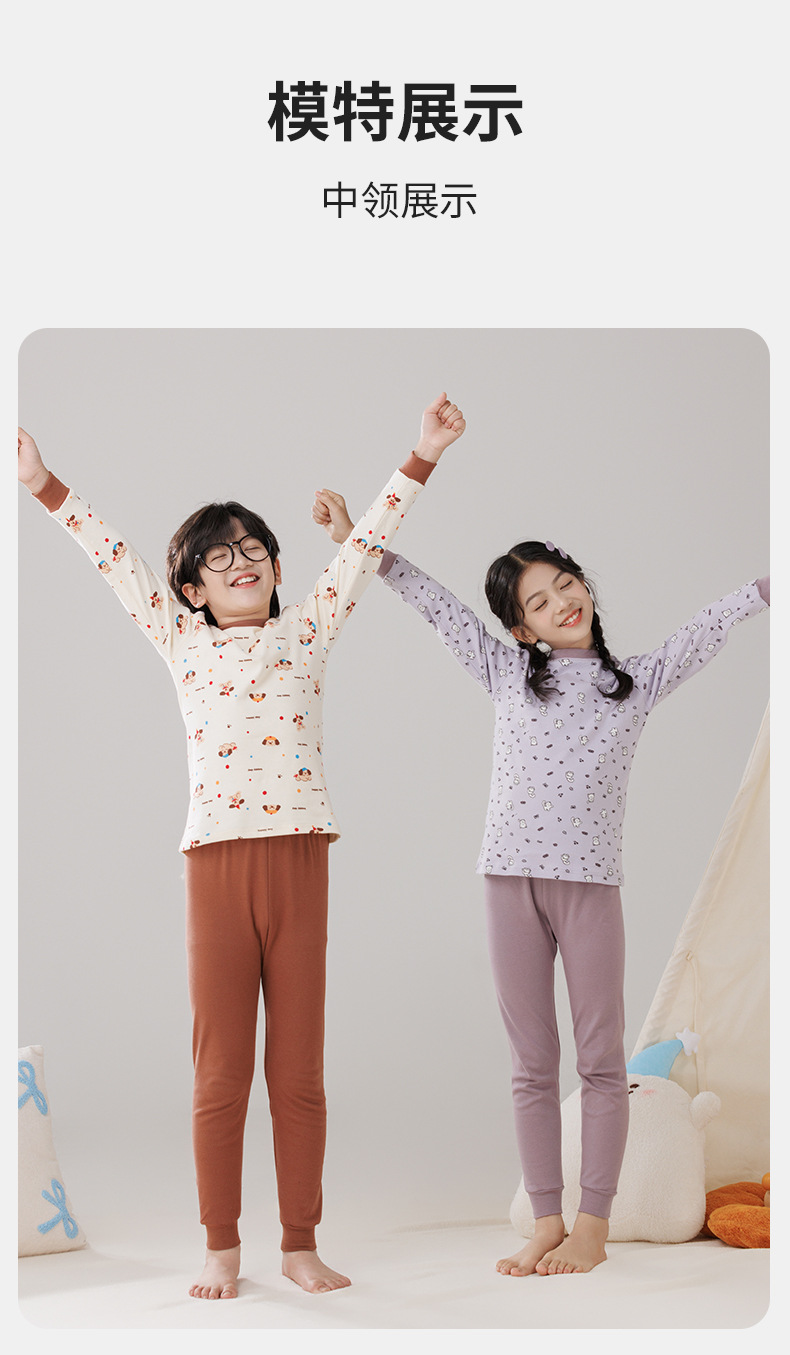 Pijamas de algodón para niños ropa interior caliente de cuello medio para niñas pantalones de otoño para niños suéter de algodón base invierno