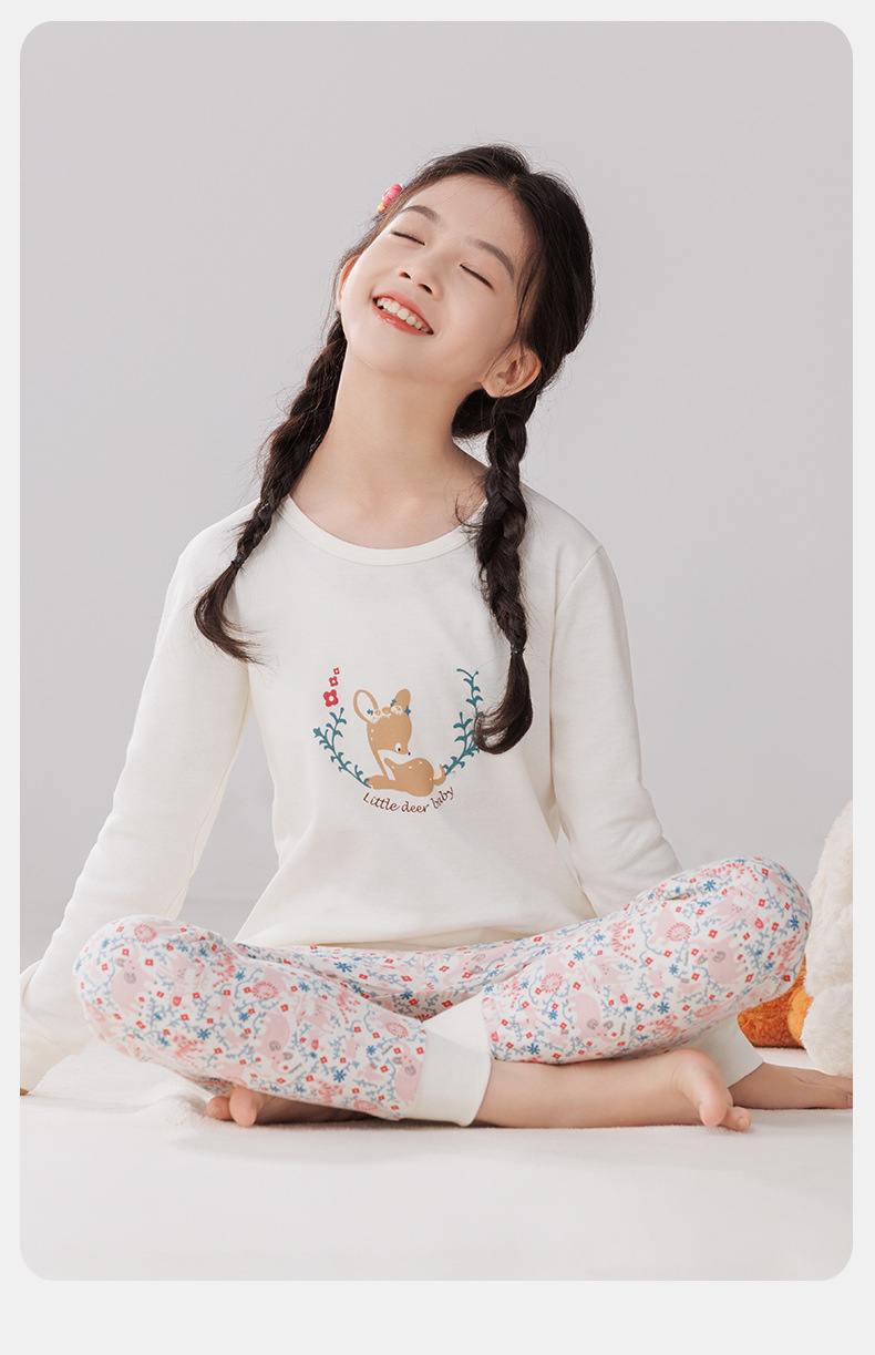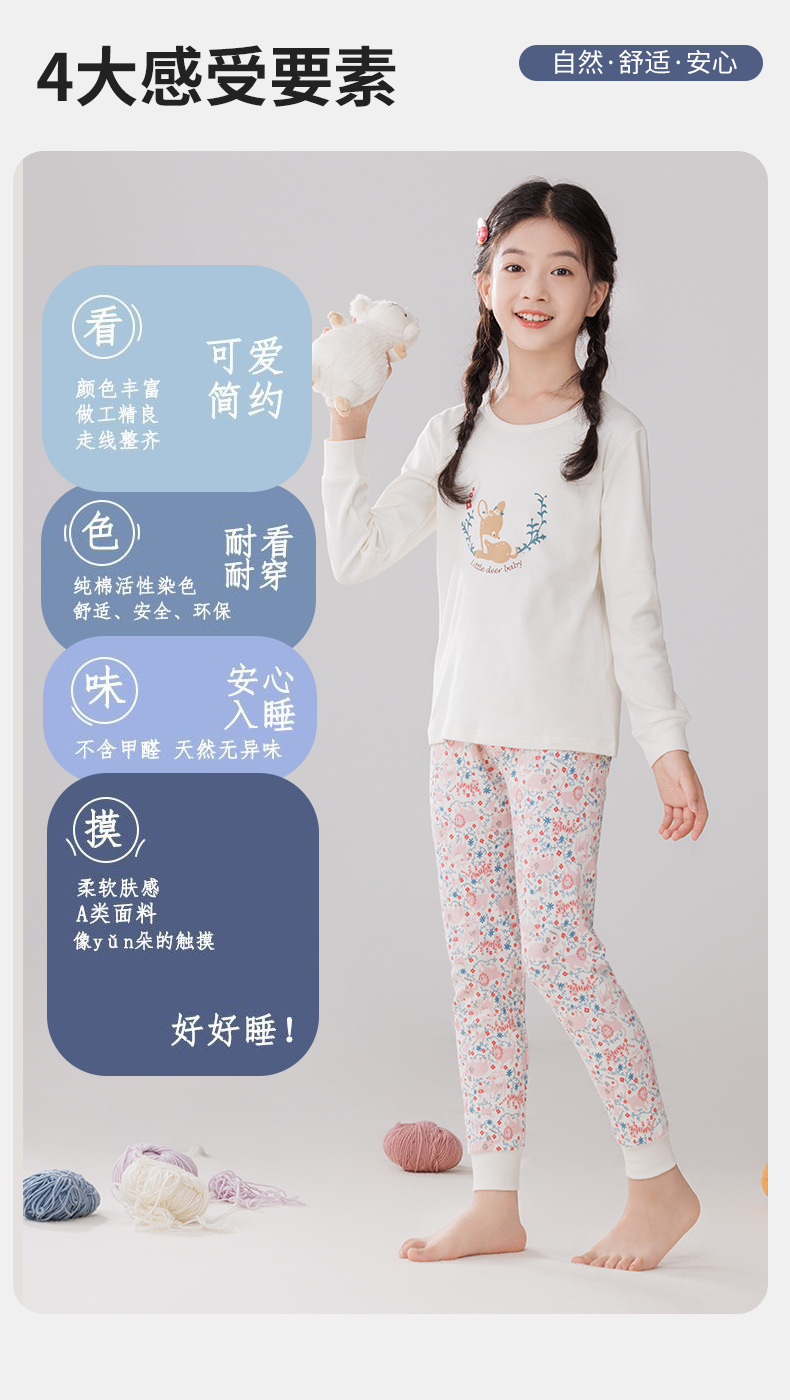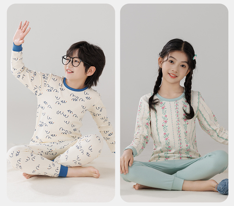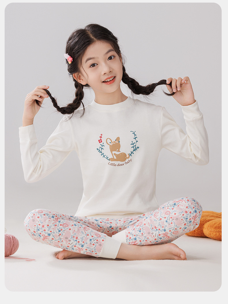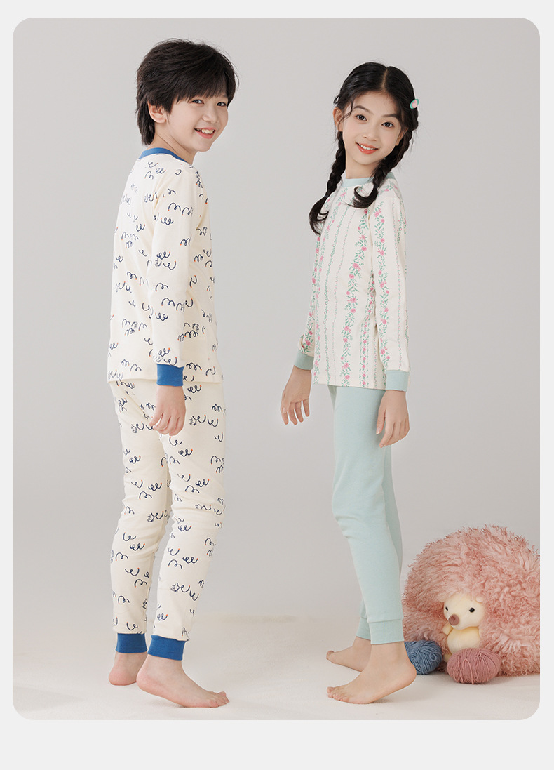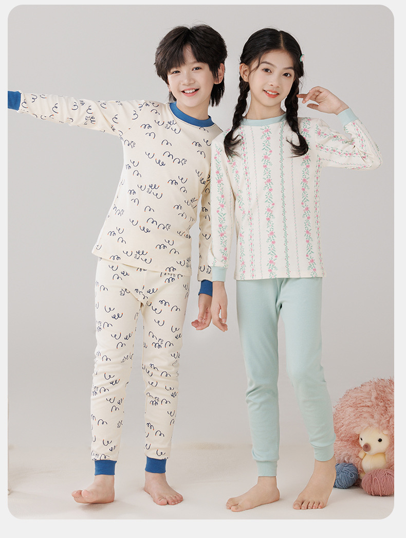 Pijamas de algodón para niños ropa interior caliente de cuello medio para niñas pantalones de otoño para niños suéter de algodón base invierno