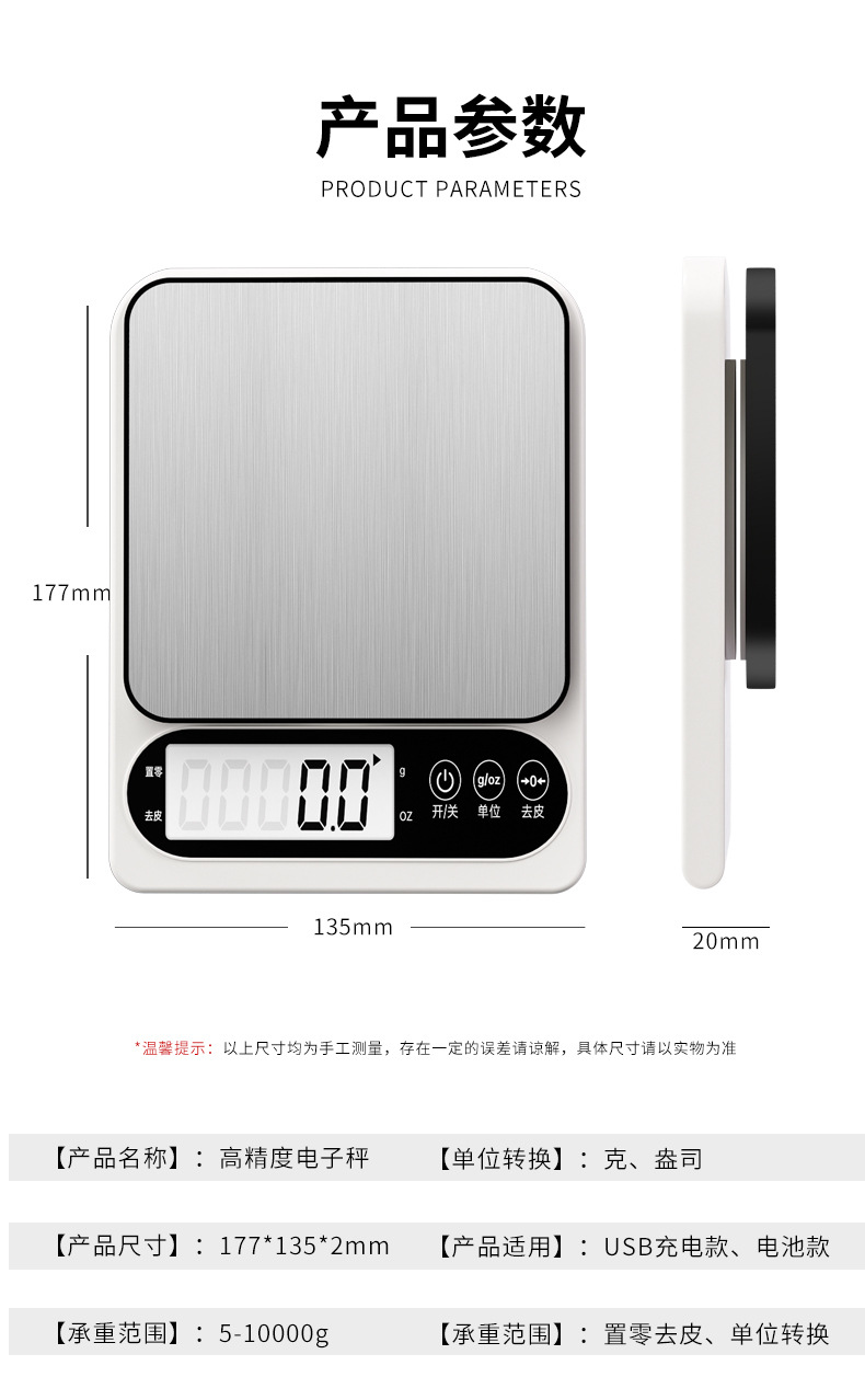 | Color | Batería "Starry White" 5KG / 1G [actualizado y mejorado] Batería "Starry White" 3KG / 0.1G [regalado] Batería "Starry White" 5KG / 0.1G [regalado] Batería "Starry White" 10KG / 0.1G [regalado] Batería "Starry White" 10KG / 1G [regalado] Batería de acero inoxidable "Starry White" 3KG / 0.1G [regalado] Batería de acero inoxidable "Starry White" 5KG / 0.1G [regalado], El modelo de carga de acero inoxidable 3KG / 0.1G [regalo] El modelo de carga de acero inoxidable 5KG / 0.1G [regalo] El modelo de carga de acero inoxidable 5KG / 0.1G [regalo] El modelo de carga de acero inoxidable 10KG / 0.1G [regalo] El modelo de carga de acero inoxidable 10KG / 0.1G [regalo],"Starry White" de tres usos 3KG / 0.1G [regalo] "Starry White" de tres usos 5KG / 0.1G [regalo] "Starry White" de tres usos 10KG / 0.1G [regalo] "Starry White" de tres usos de acero inoxidable de tres usos 3KG / 0.1G [regalo] "Starry White" de tres usos de acero inoxidable de tres usos 5KG / 0.1G [regalo], Carga verde menta 10kg / 0.1g + bandeja + taza de medición + separador de clara de huevo + cable de carga USB |