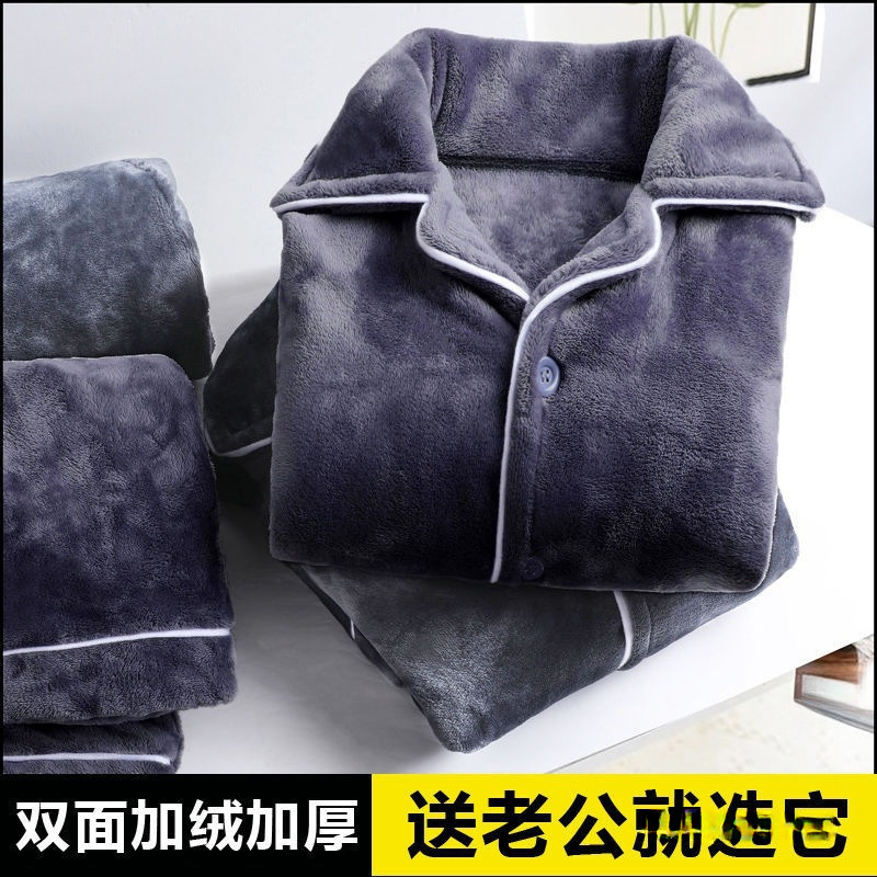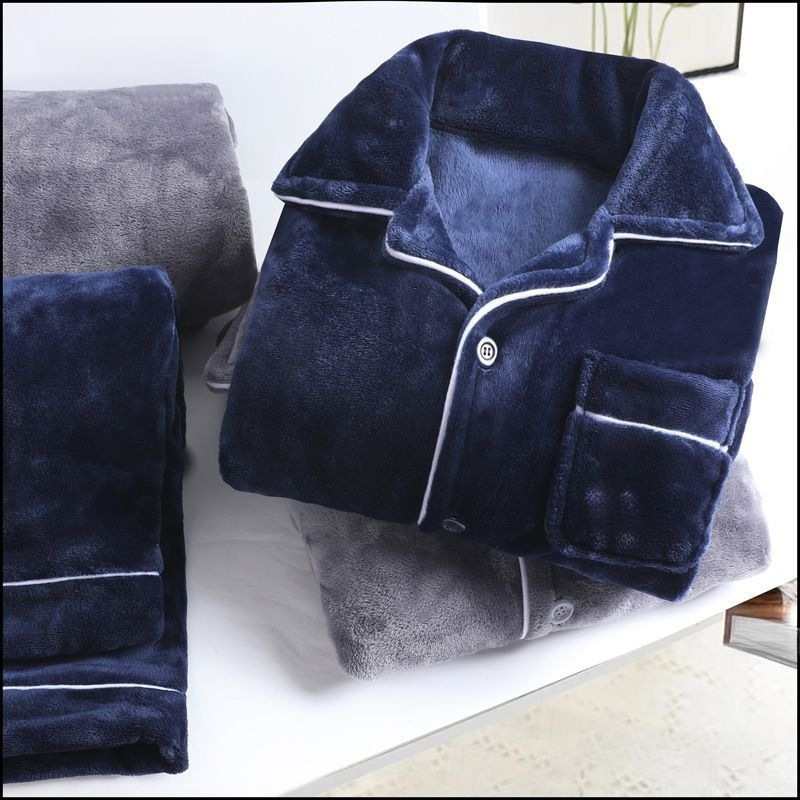 Transfronterizo hombre coral terciopelo pijama otoño y invierno grueso terciopelo cálido manga larga suelta franellas set de ropa para el hogar