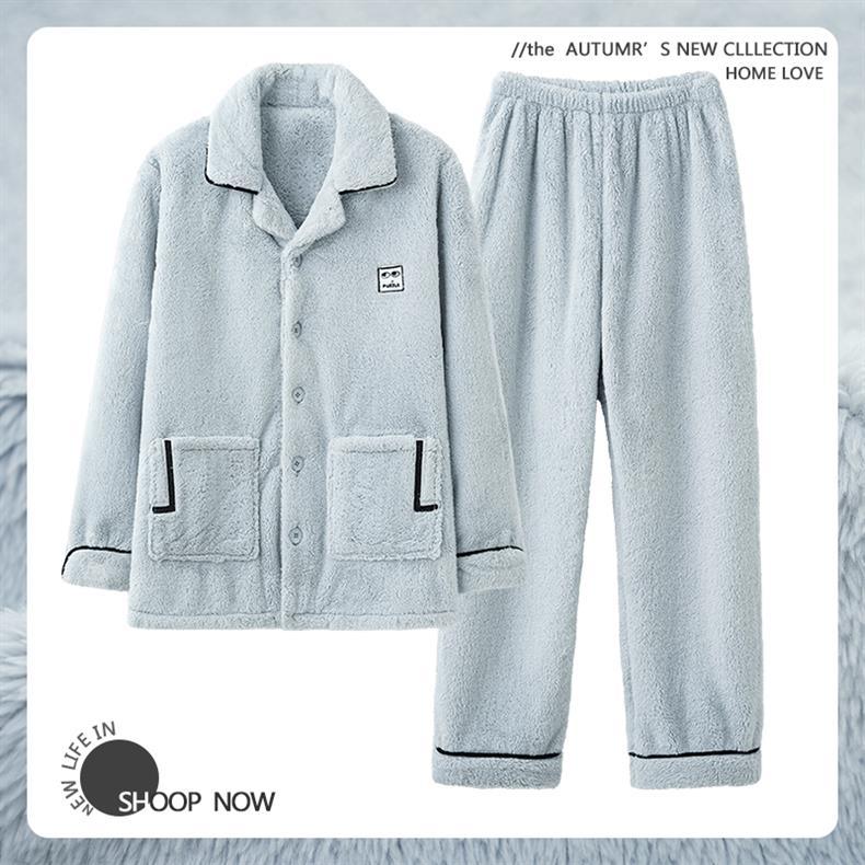 Pijamas de invierno para hombres, terciopelo de coral, franela caliente, otoño y invierno para hombres, 2024 nueva ropa para el hogar