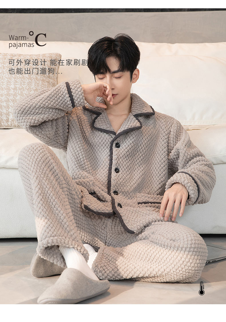 Simple otoño y invierno de hombre coral camisa de pijama de camisa de manga larga larga tamaño grande con camisa de franela cálida ropa de invierno