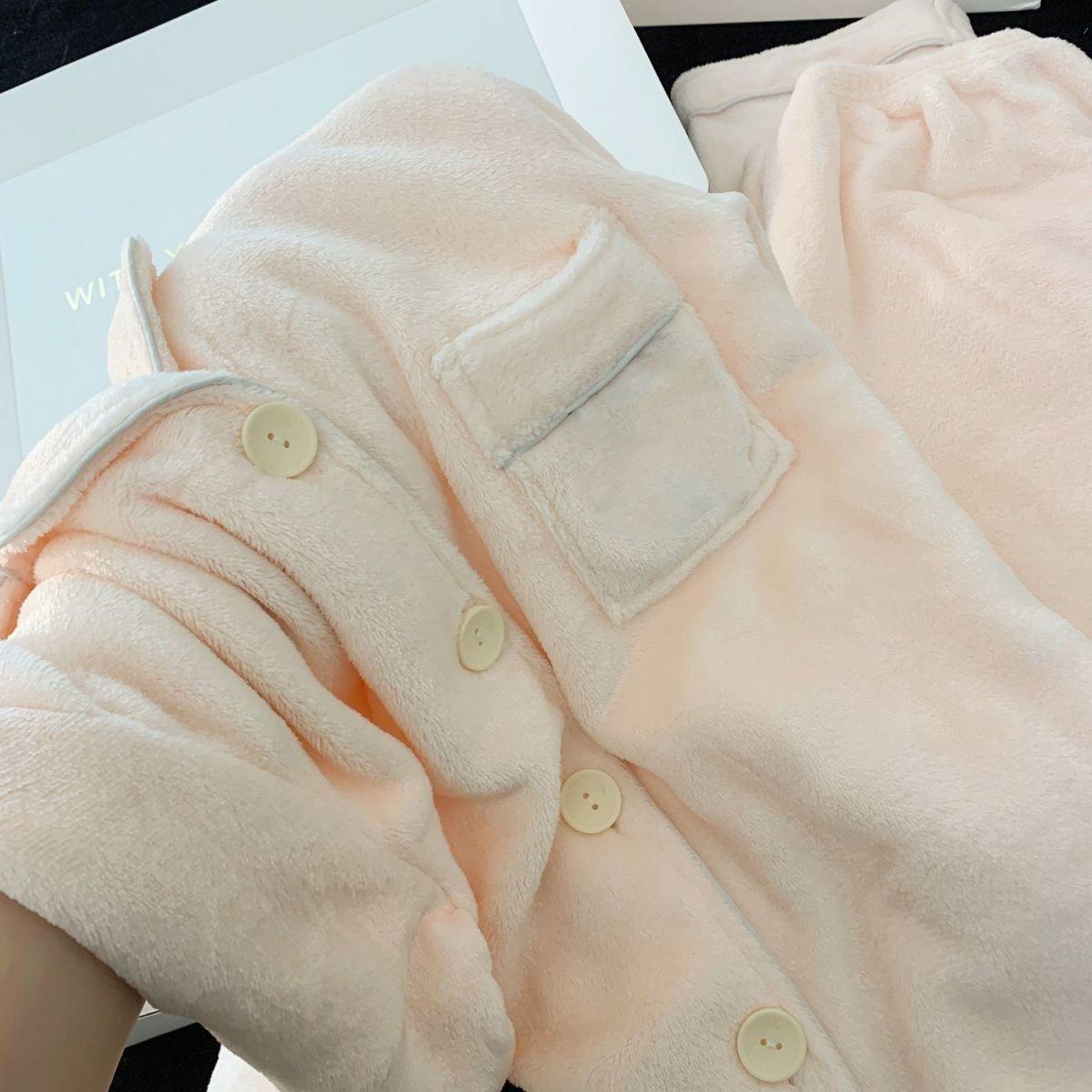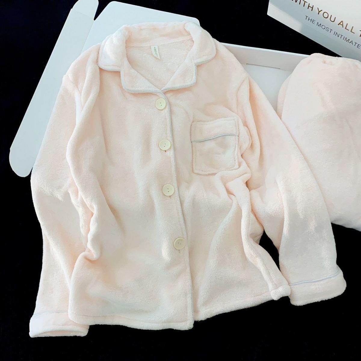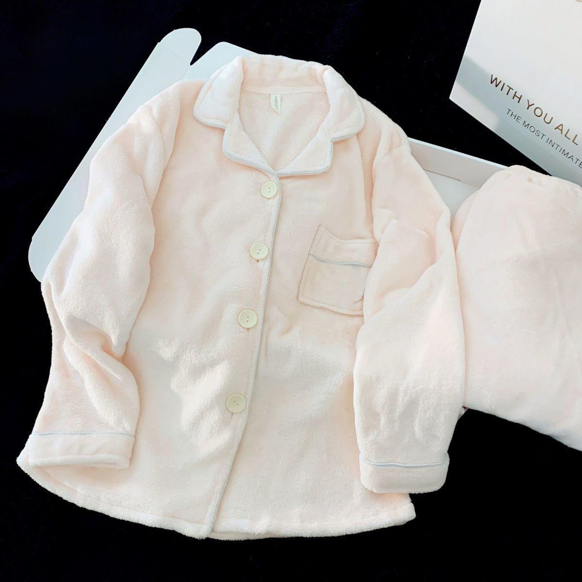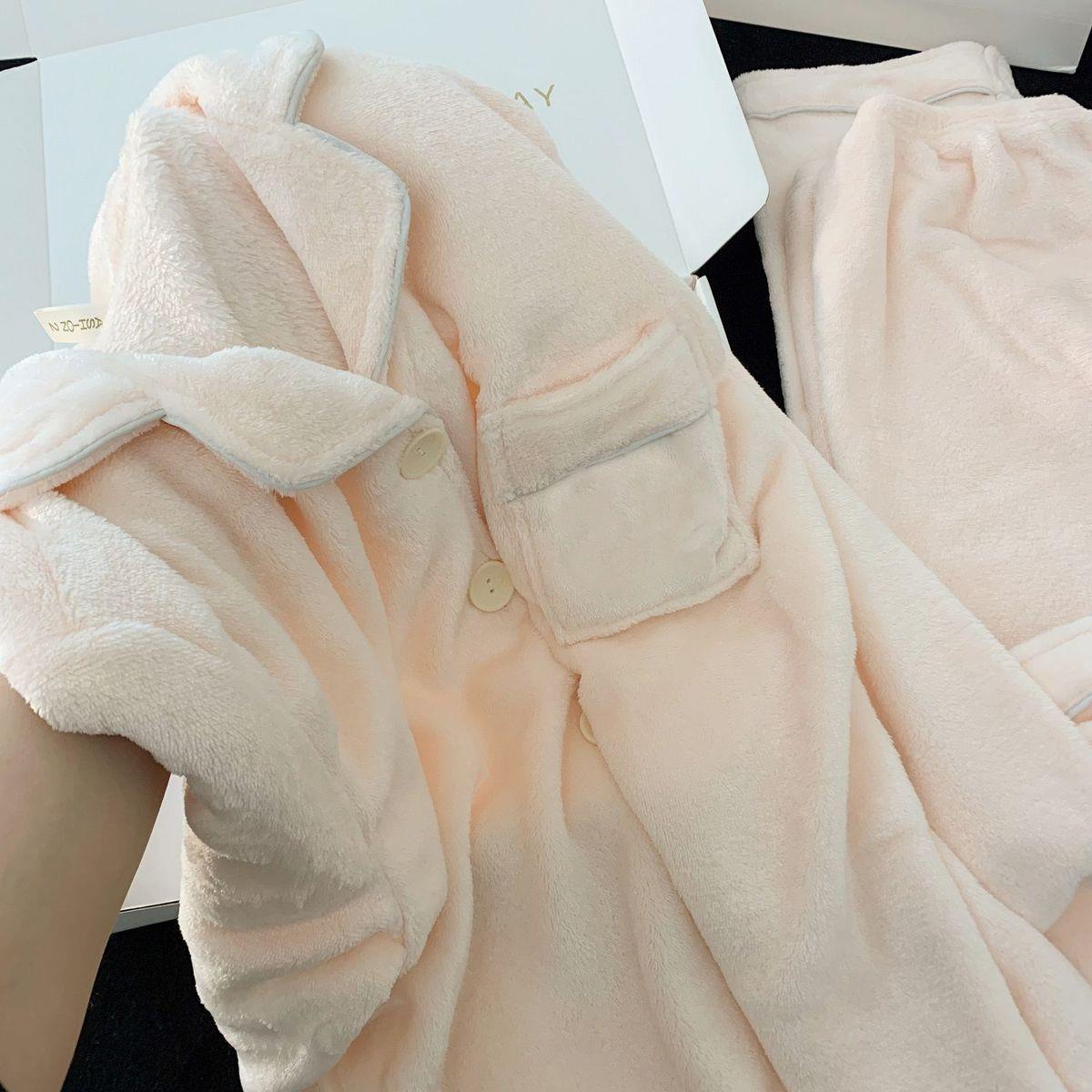 Nuevo pijama rosa de lana de coral para mujeres 2025 invierno acelerado de lana de franela para niñas simple conjunto de ropa para el hogar