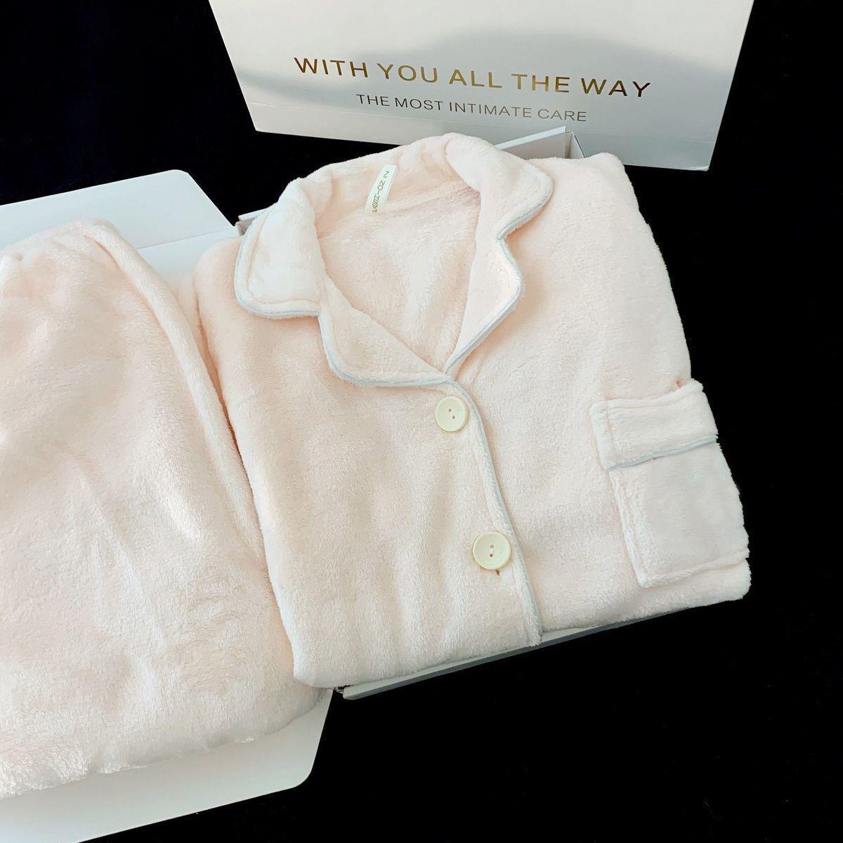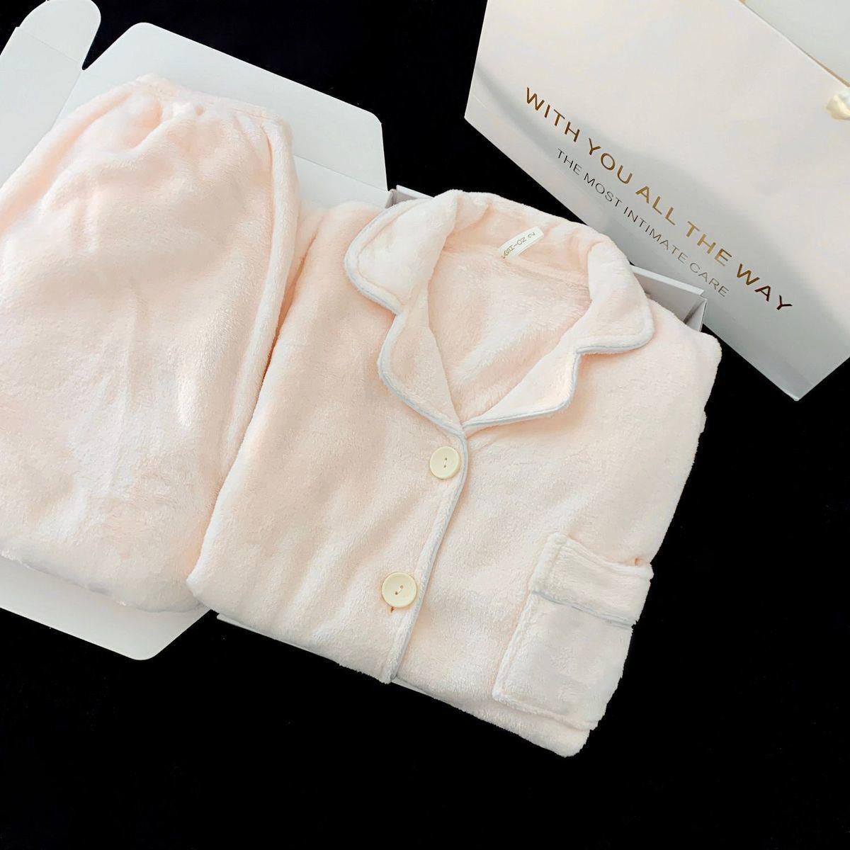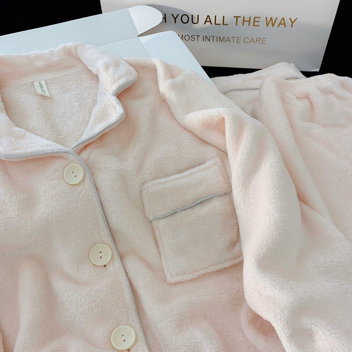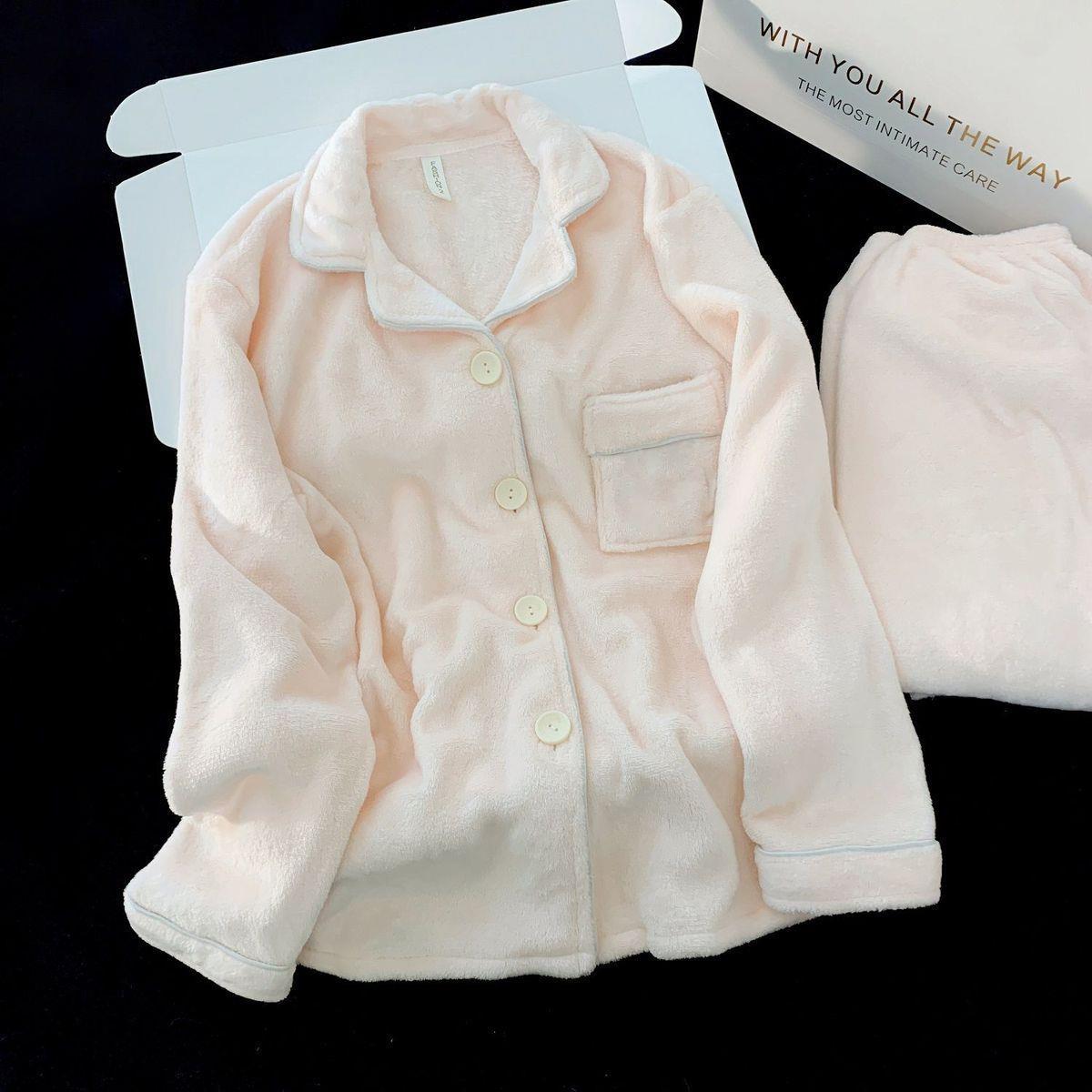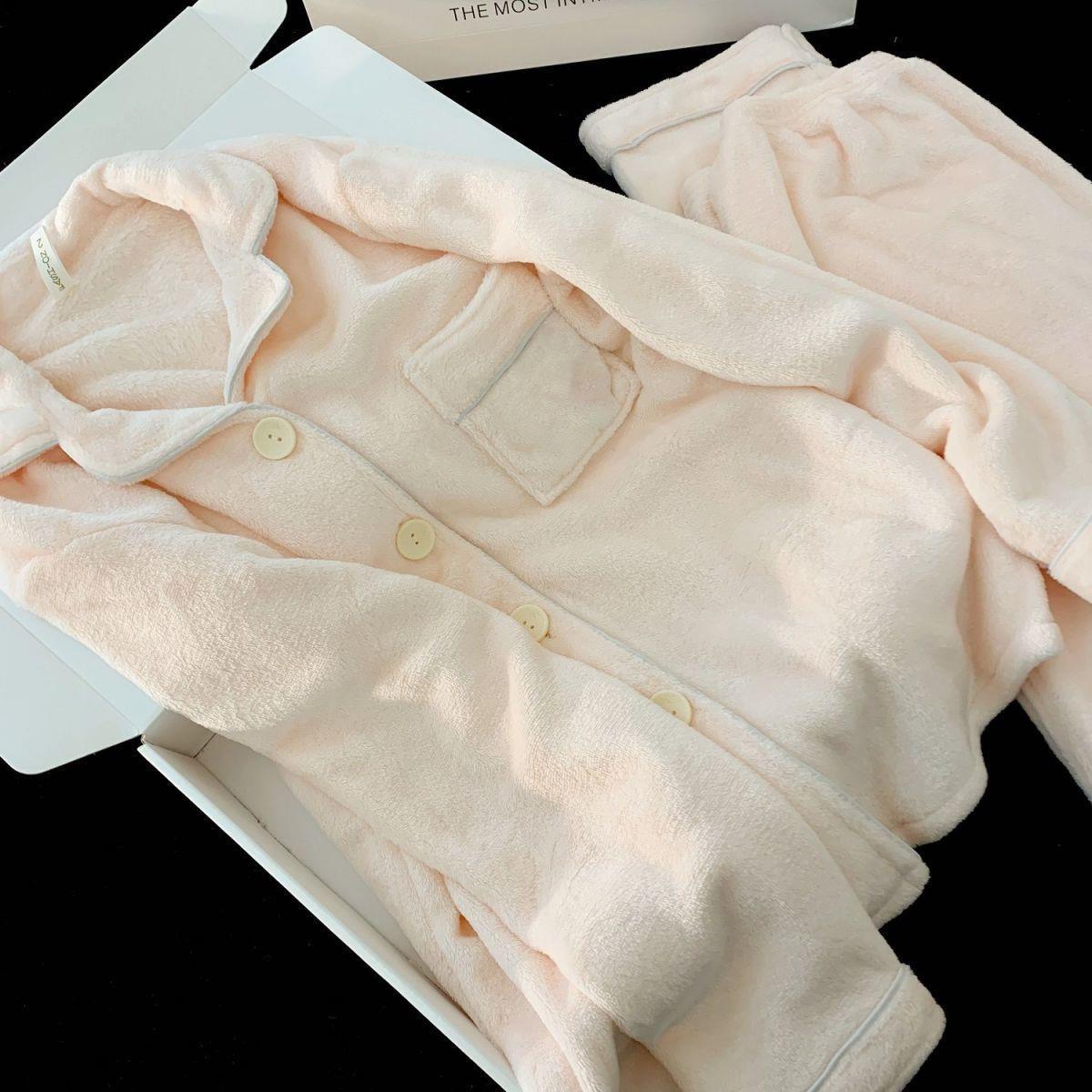 Nuevo pijama rosa de lana de coral para mujeres 2025 invierno acelerado de lana de franela para niñas simple conjunto de ropa para el hogar