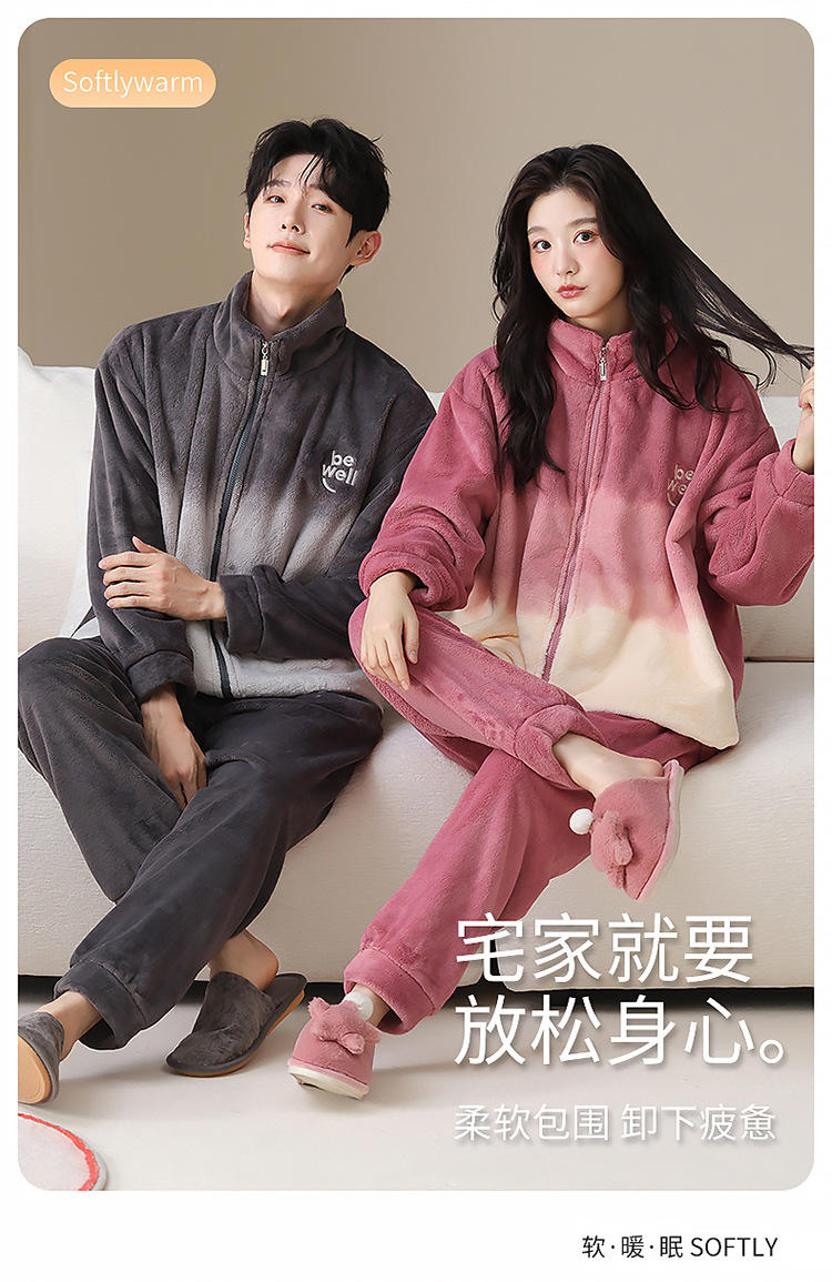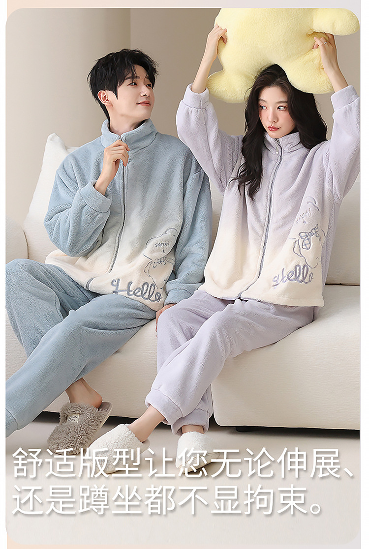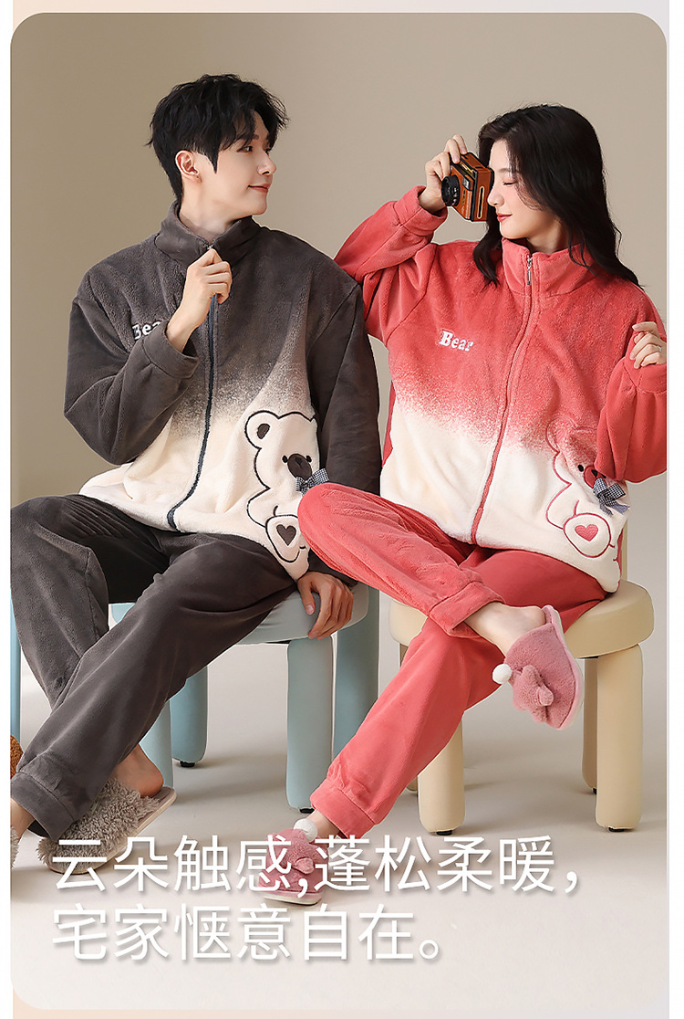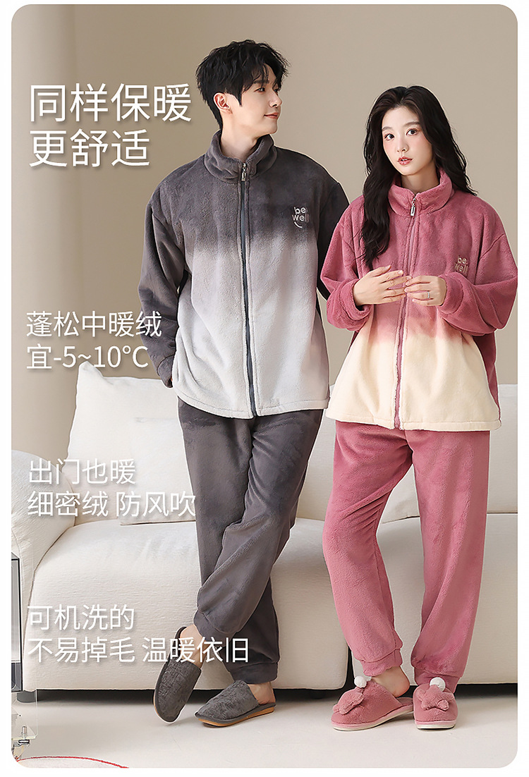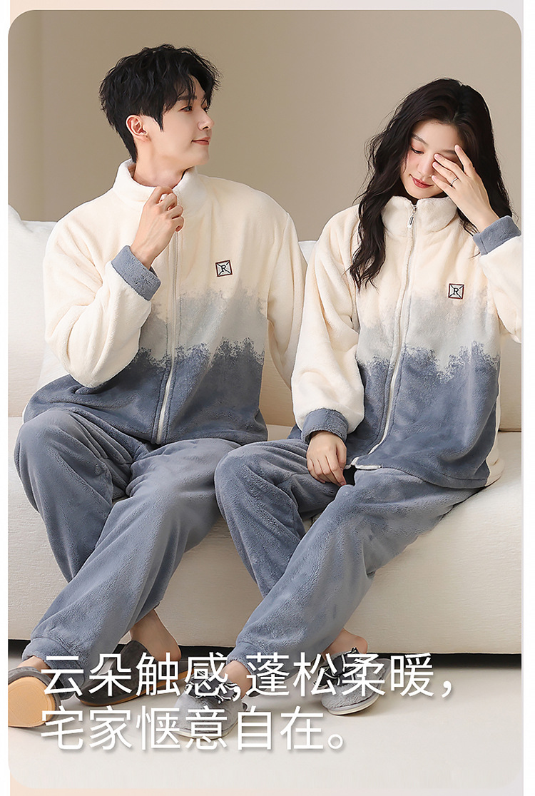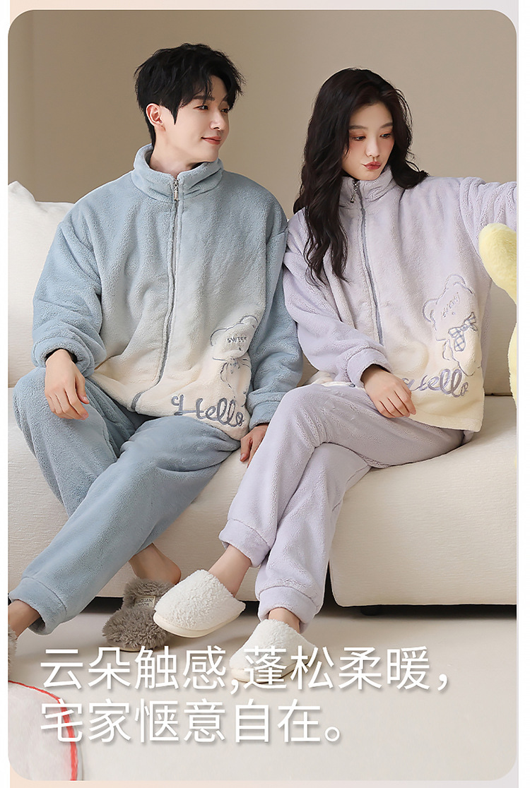 Coral vello pareja pijama de invierno para mujeres 2025 nuevo vello con cremallera gruesa se puede usar ropa de franela masculina