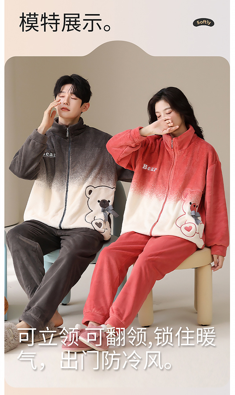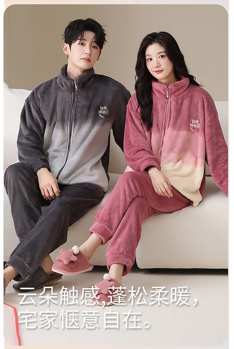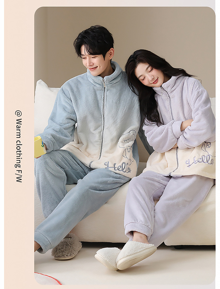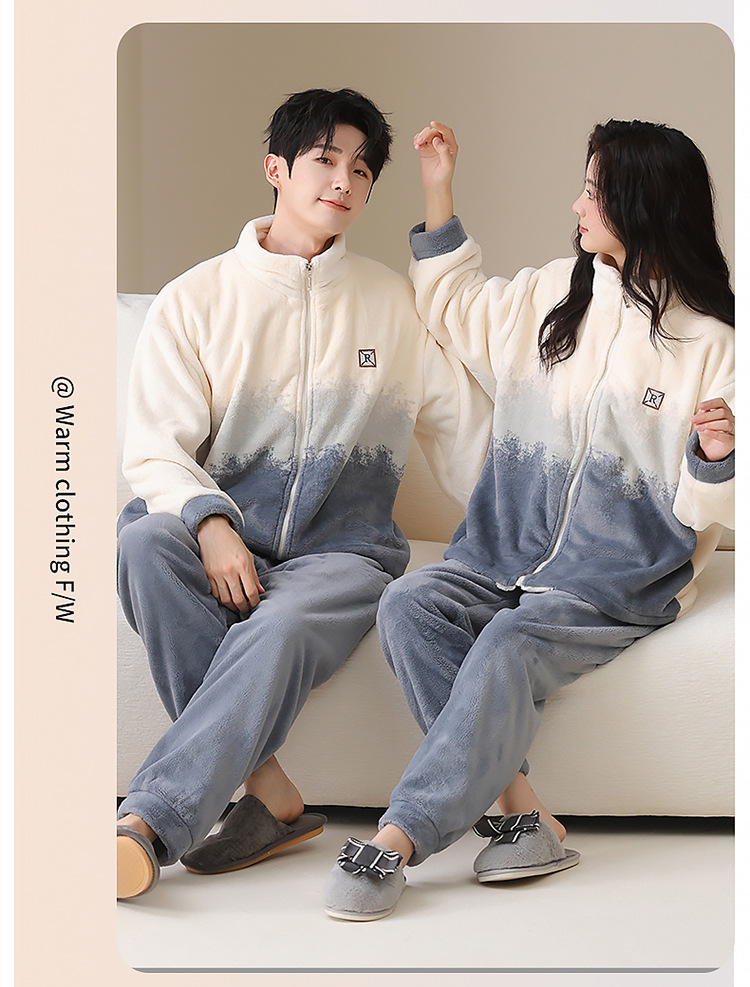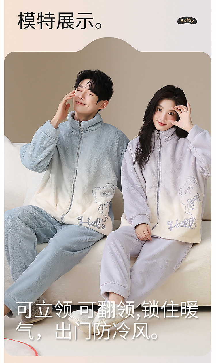 Coral vello pareja pijama de invierno para mujeres 2025 nuevo vello con cremallera gruesa se puede usar ropa de franela masculina