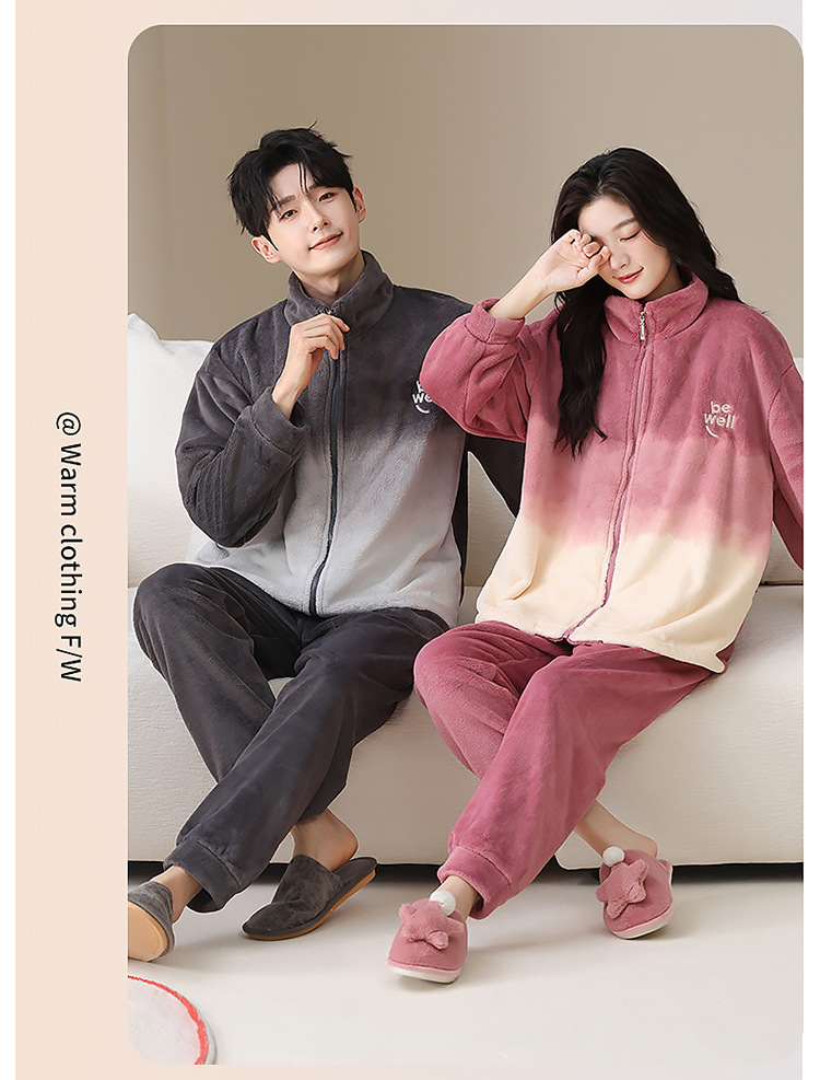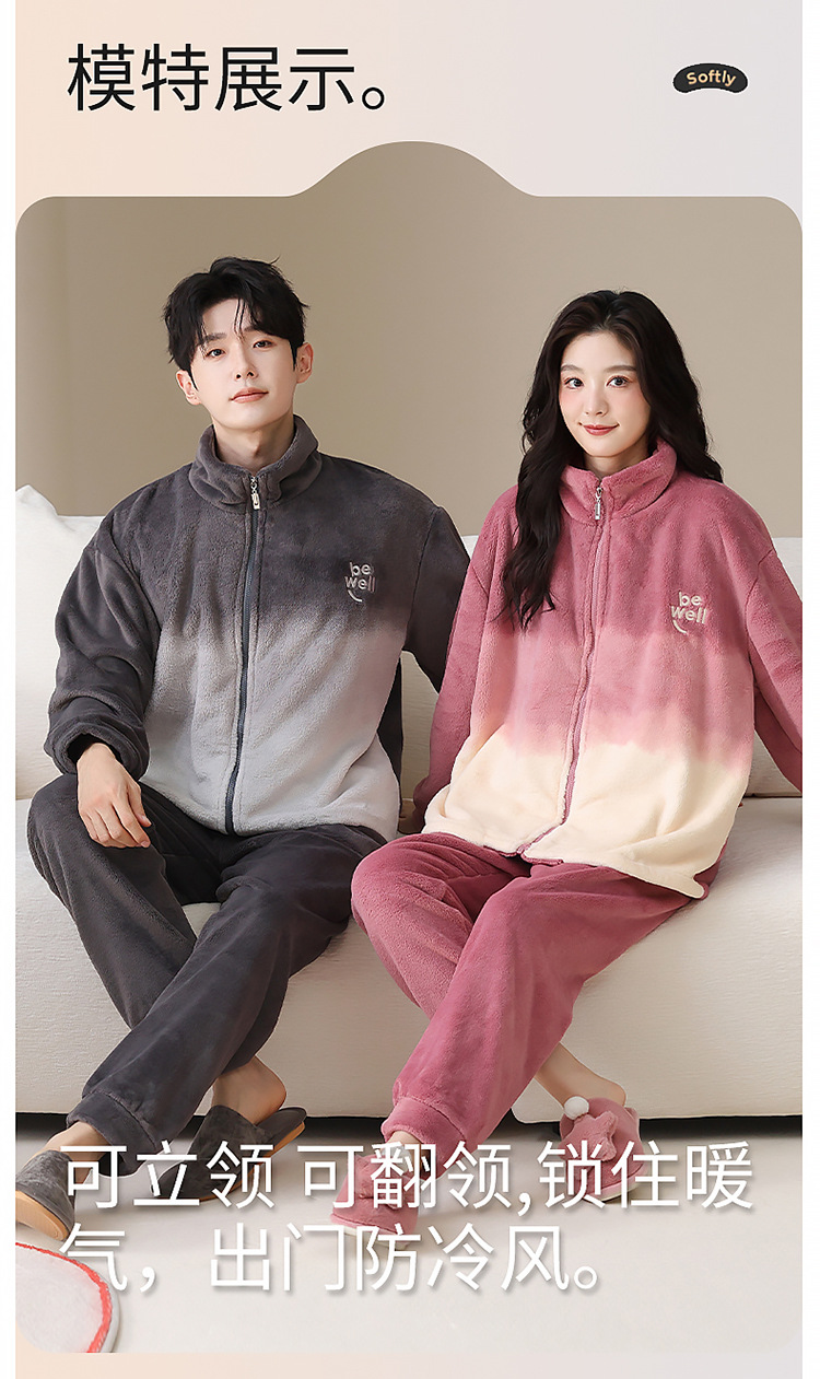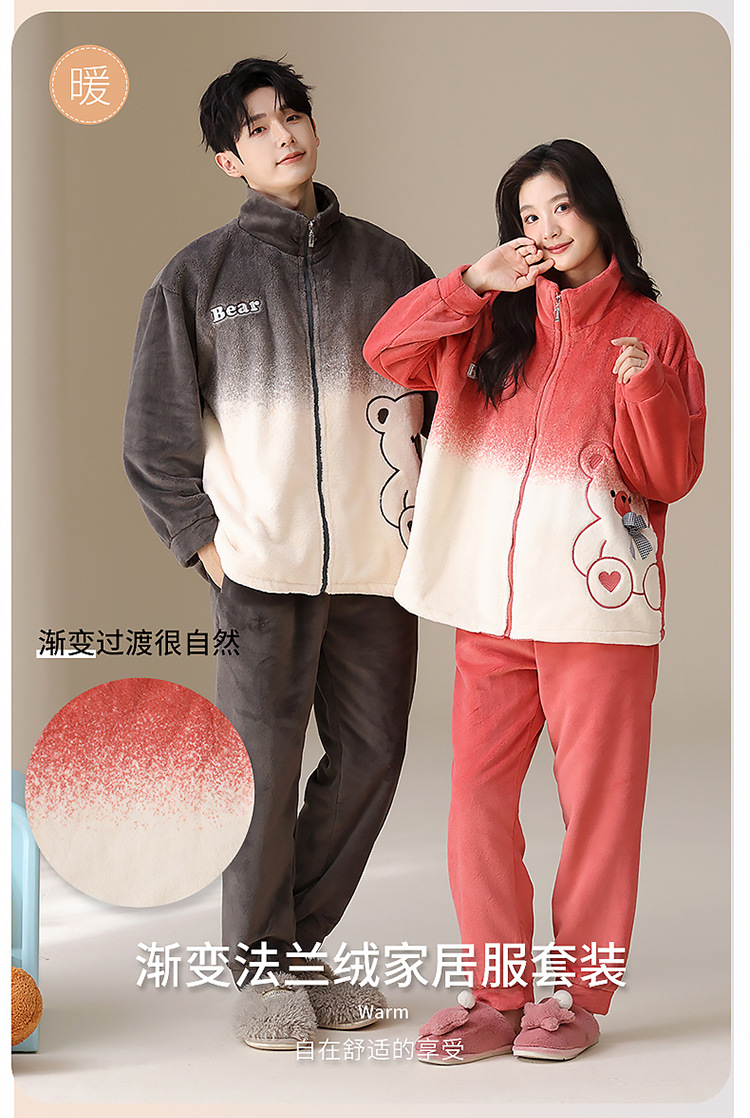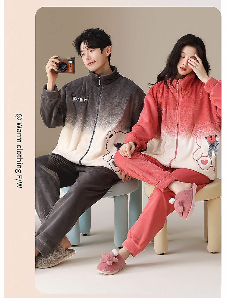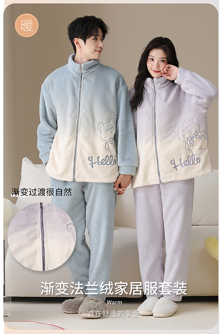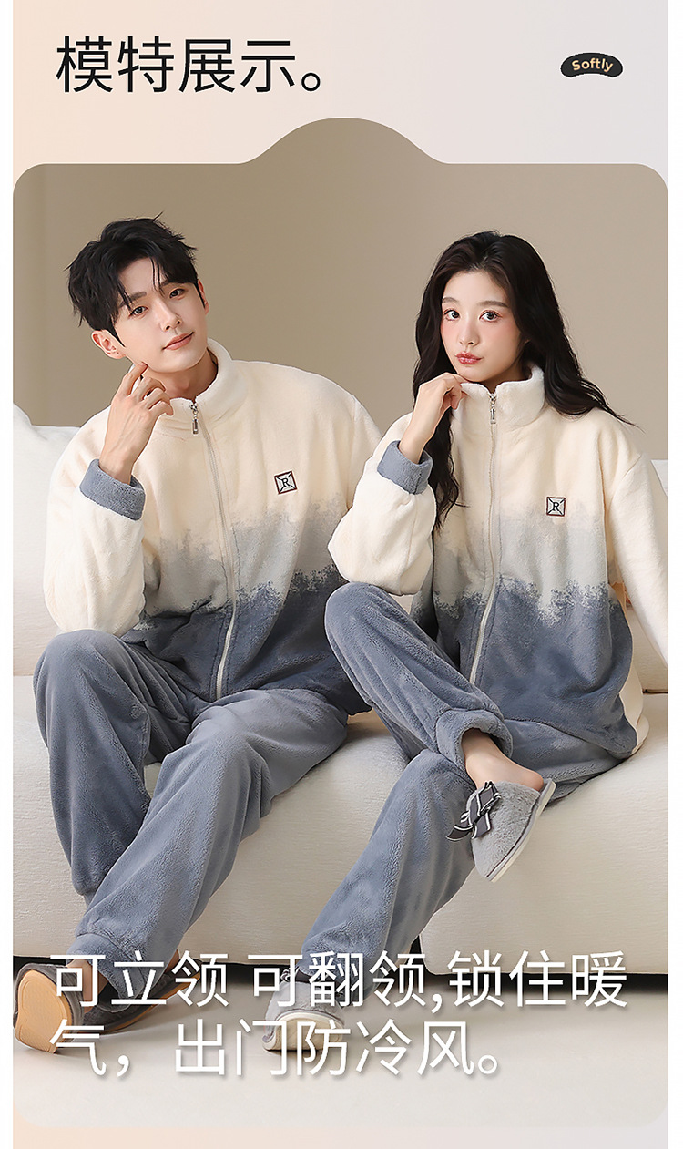 Coral vello pareja pijama de invierno para mujeres 2025 nuevo vello con cremallera gruesa se puede usar ropa de franela masculina