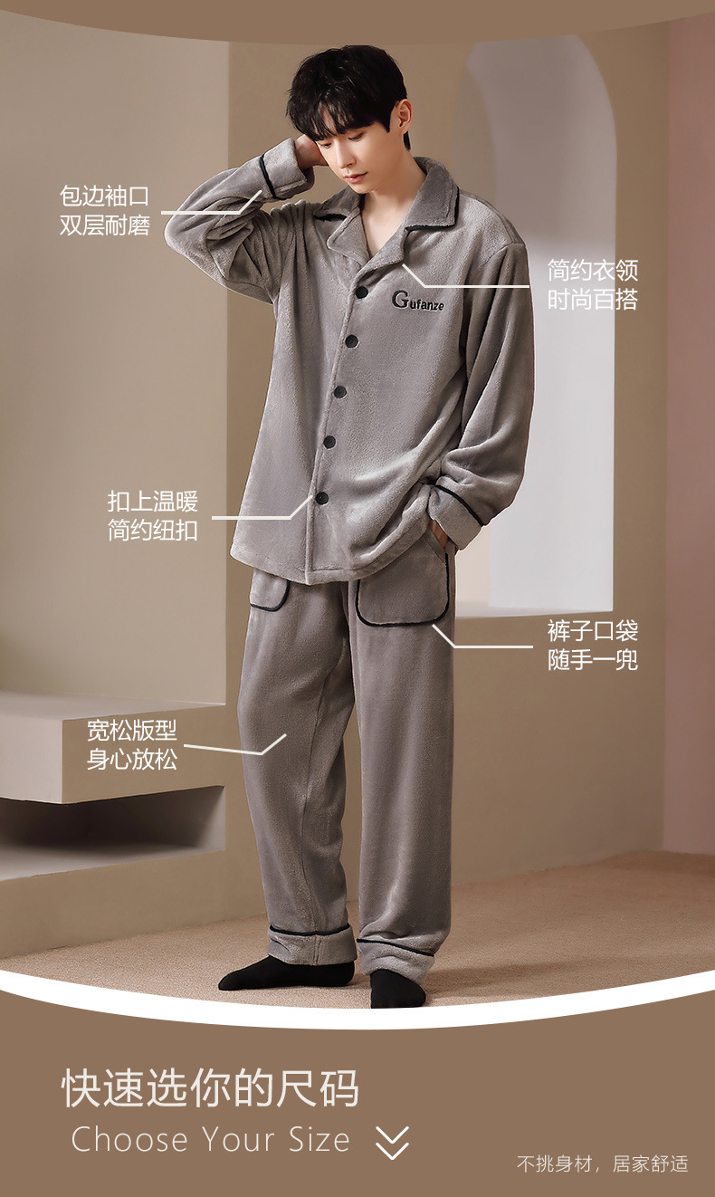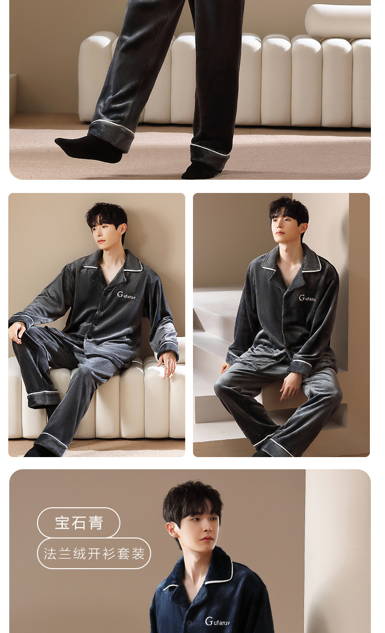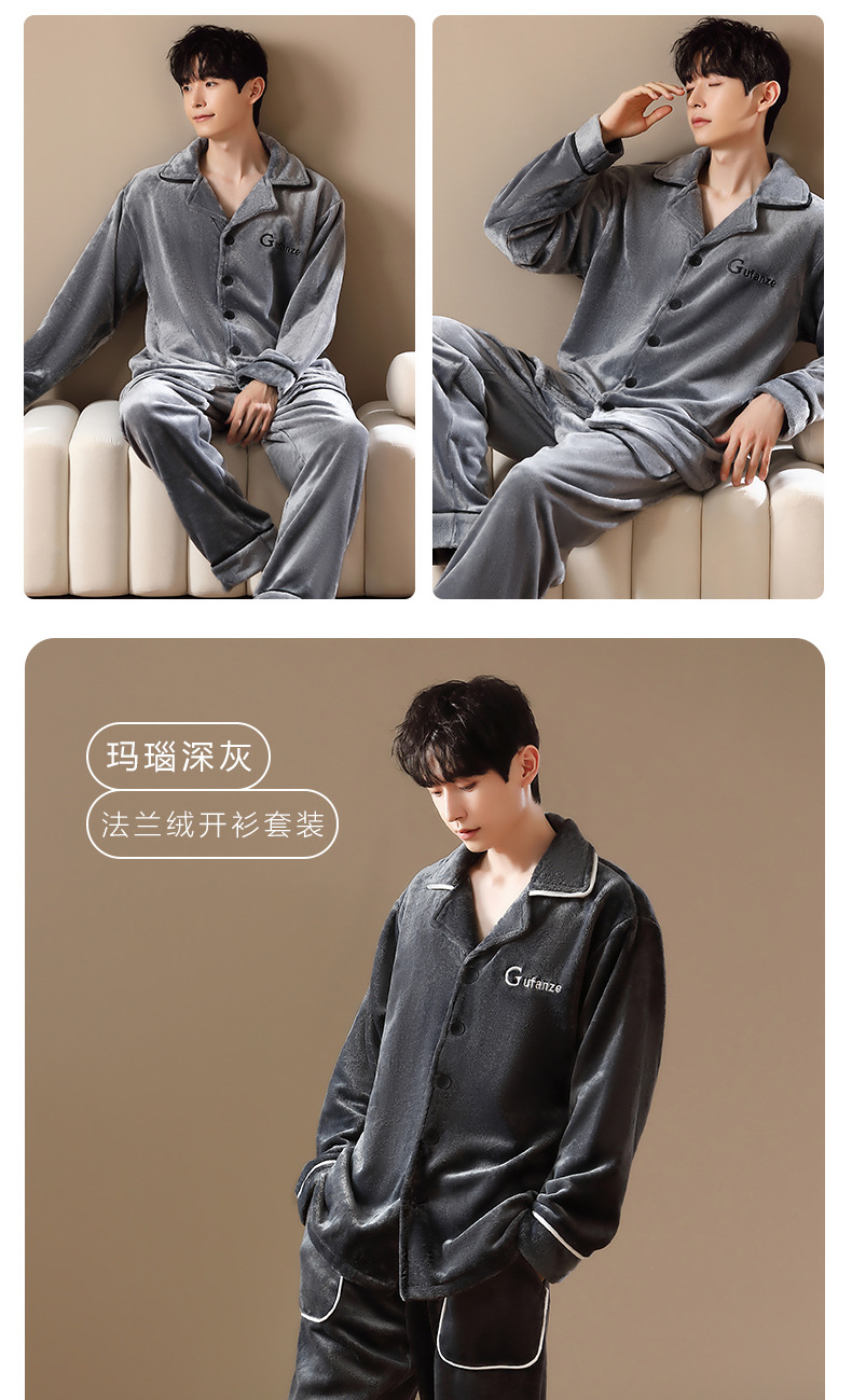 Pijamas de coral de lana de invierno para hombres con lana de invierno engrosado otoño invierno conjunto de ropa de franela 2025 nuevo
