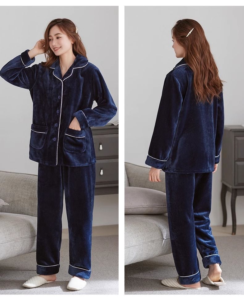 Nuevo otoño y invierno pijamas para mujeres y hombres gruesas ropa cálida de coral veludo pareja franela conjunto de ropa para el hogar