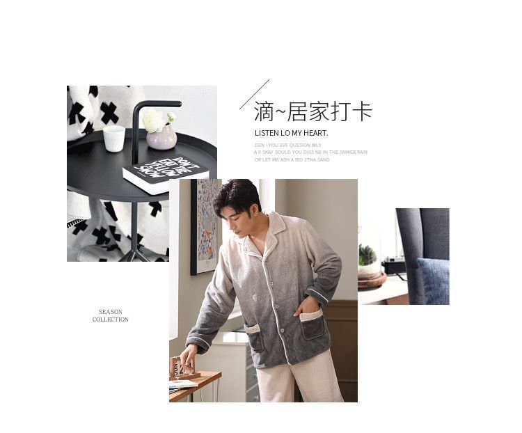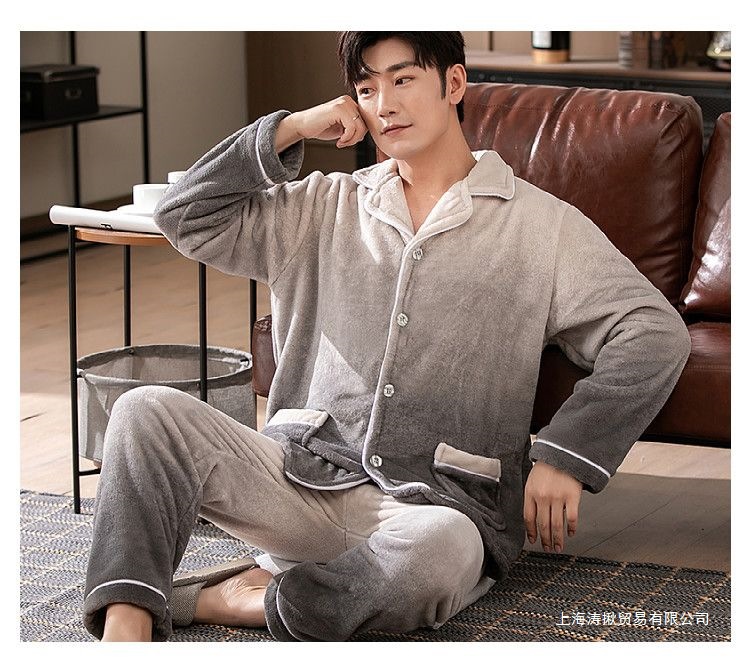 Pijamas de invierno de terciopelo de coral, pijamas de franela gruesas de invierno para hombres, ropa de hogar cálida de mangas largas para hombres