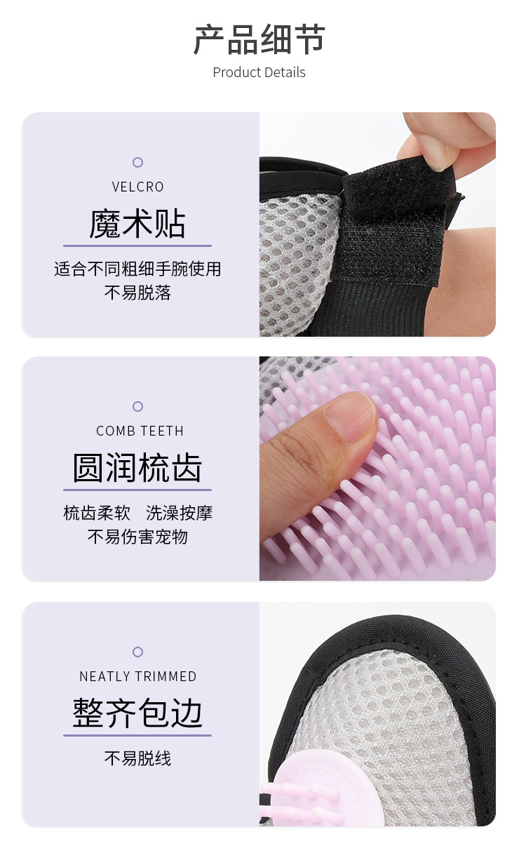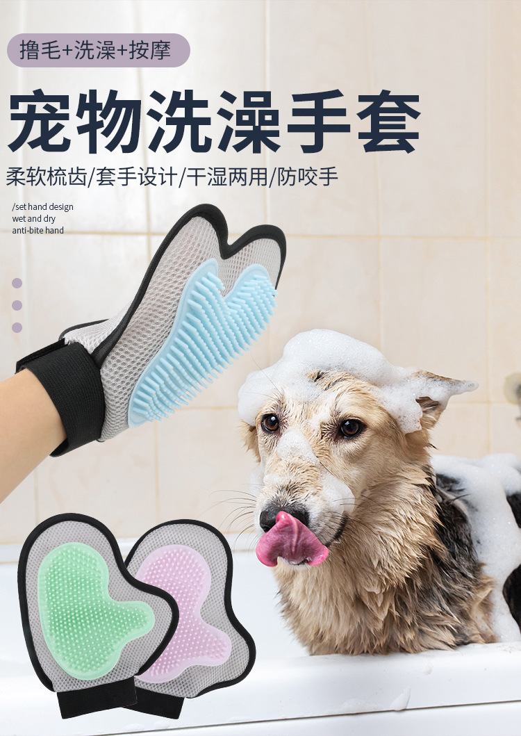 Suministros de limpieza para mascotas, guantes para eliminar el pelo, baño y masaje para gatos, cuidado y pulido del pelo de perros, venta al por mayor del fabricante, eliminan el pelo suelto.