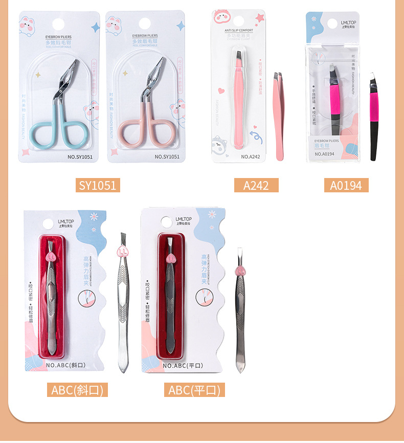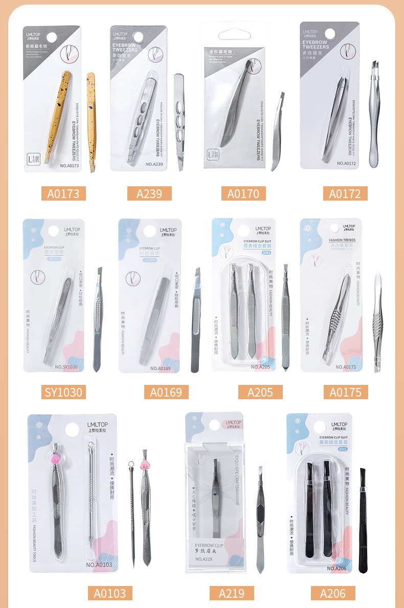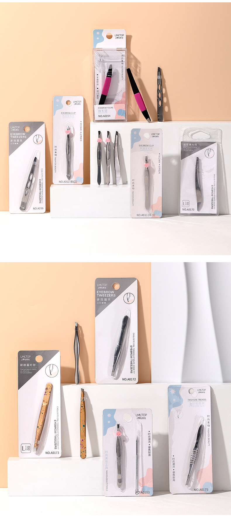 Clip para cejas de acero inoxidable LMLTOP, boca oblicua, pinzas para cejas planas, pinzas para depilarse, clips auxiliares para pestañas postizas, una variedad de colecciones