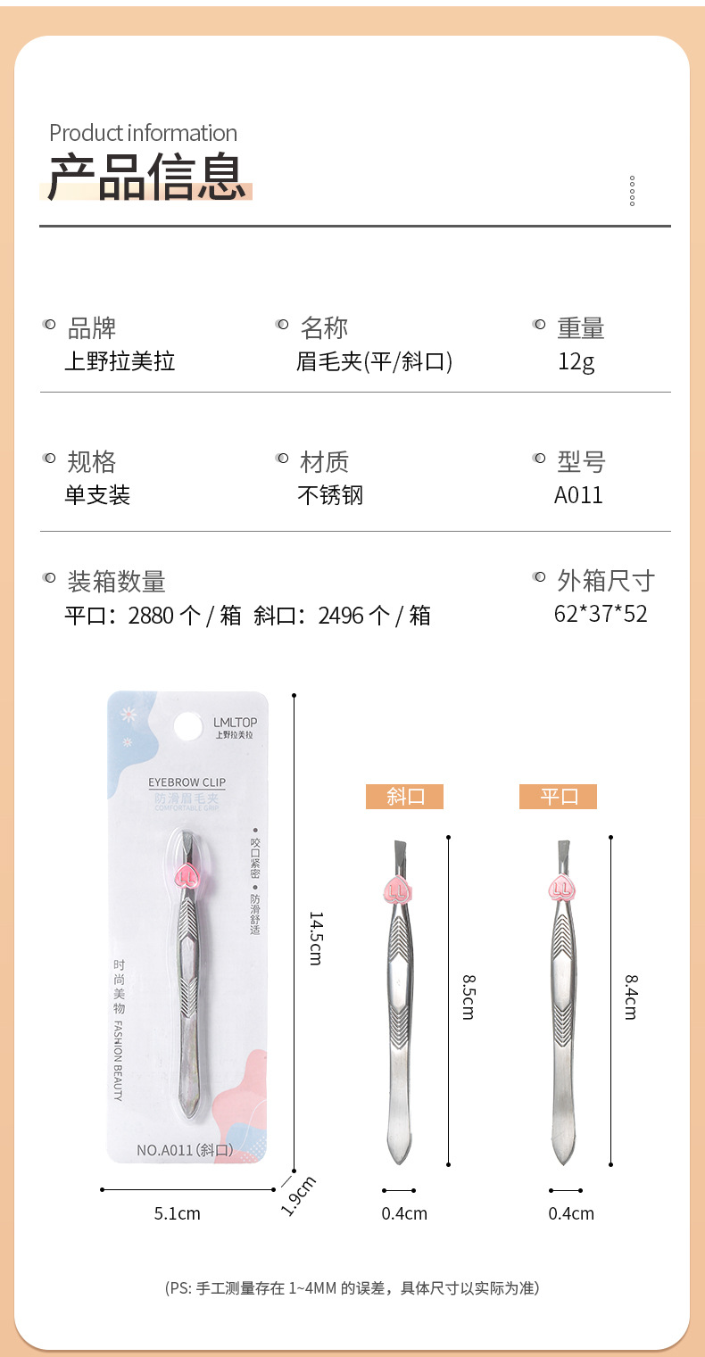 | Clasificación de colores | A011 boca plana,A011 boca oblicua,A239 estilo hueco oblicuo,A205 paquete de dos,A0170 boca oblicua,A0169 boca oblicua,ABC boca plana,ABC boca oblicua,A0103 paquete combinado de clip para cejas y aguja para acné,SY1030 boca oblicua,A0194 boca oblicua,A206 paquete de dos,A219 caja de boca oblicua,A242 rosa,Alicates para cejas SY1051 (rosa),SY1051 Alicates para cejas (azul),SY568 boca oblicua dorada (todo en inglés),S353 boca oblicua dorada (todo en inglés),SY521 Golden Feather Clip (Clip auxiliar para pestañas postizas),SY522 clip de amapola (clip auxiliar para pestañas postizas),SY574 clip de pluma de oro púrpura (clip auxiliar para pestañas postizas),Clip de pluma de oro rosa S404 (clip auxiliar para pestañas postizas),Clip oblicuo S354 (todo en inglés),Clip de boca plana S355 (todo en inglés),Clip de gancho S356 (todo en inglés),Clip de boca afilada S357 (todo en inglés) |