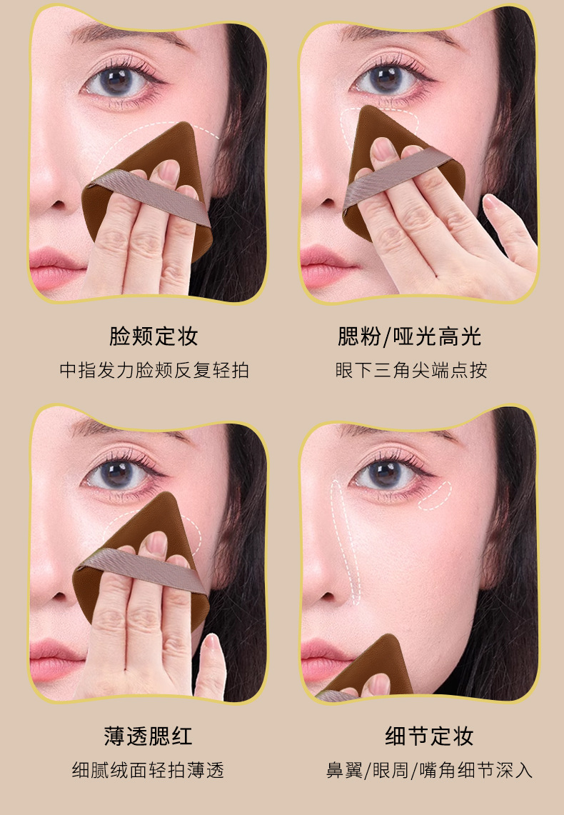 El nuevo terciopelo de soplo triangular súper suave transfronterizo no come polvo, polvo suelto, polvo seco denso, soplo de soplo, cojín de maquillaje de doble cara