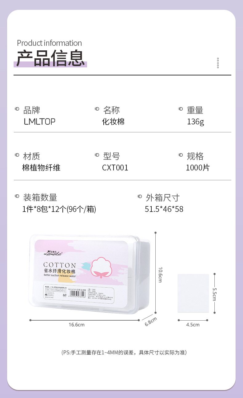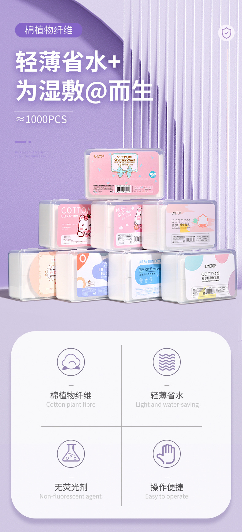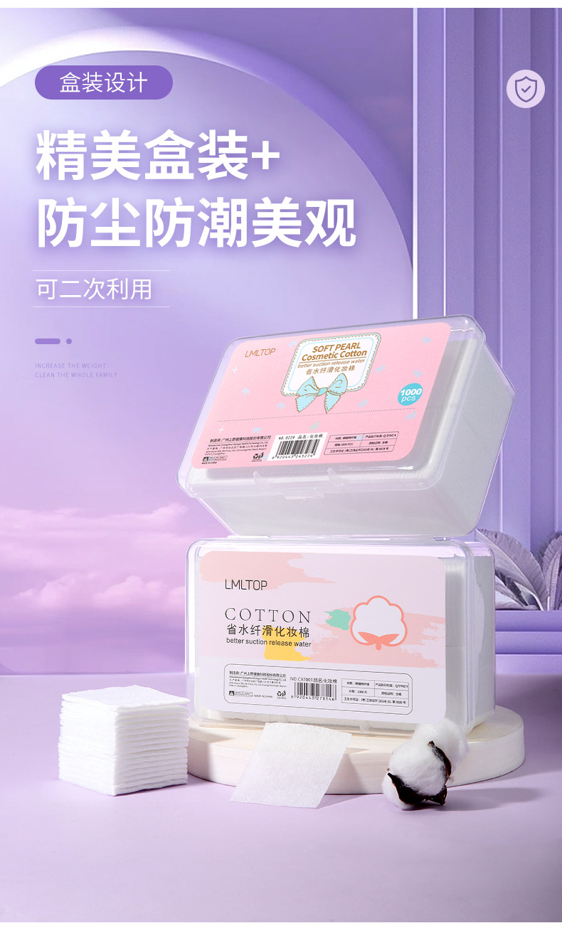 Ramila tela no tejida 1000 piezas de maquillaje en caja delgada algodón desechable removedor de maquillaje que ahorra agua pieza de algodón compresa húmeda B228