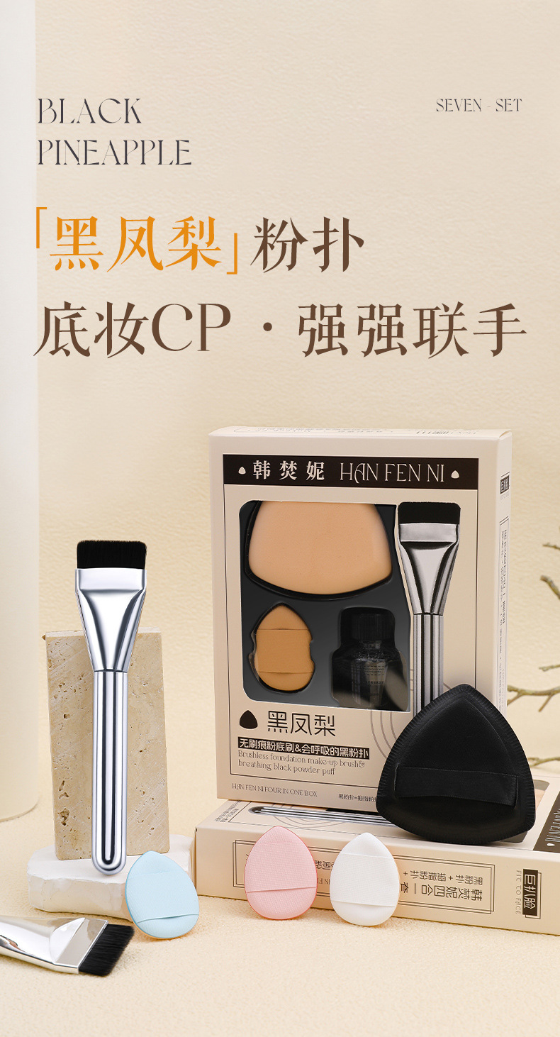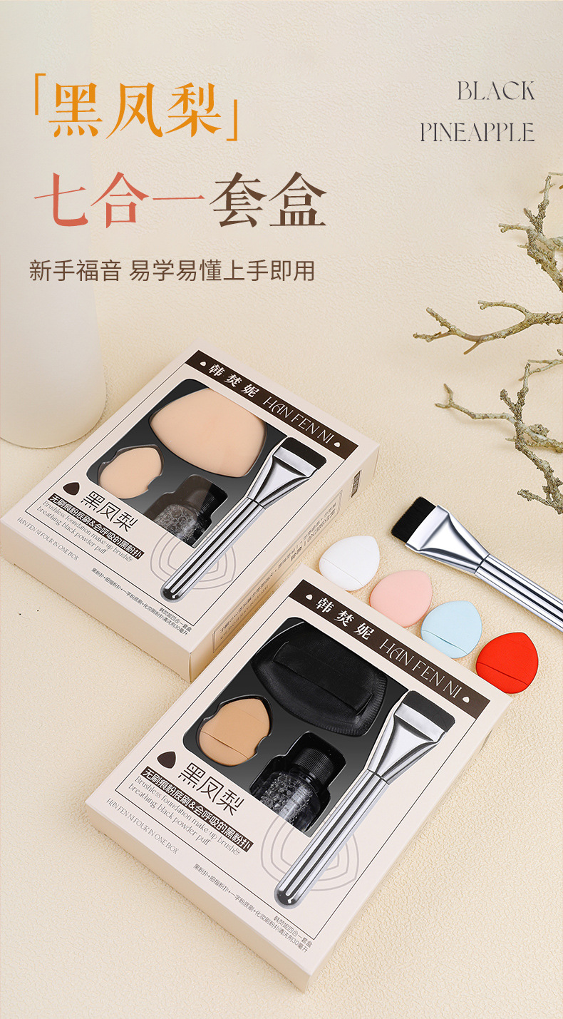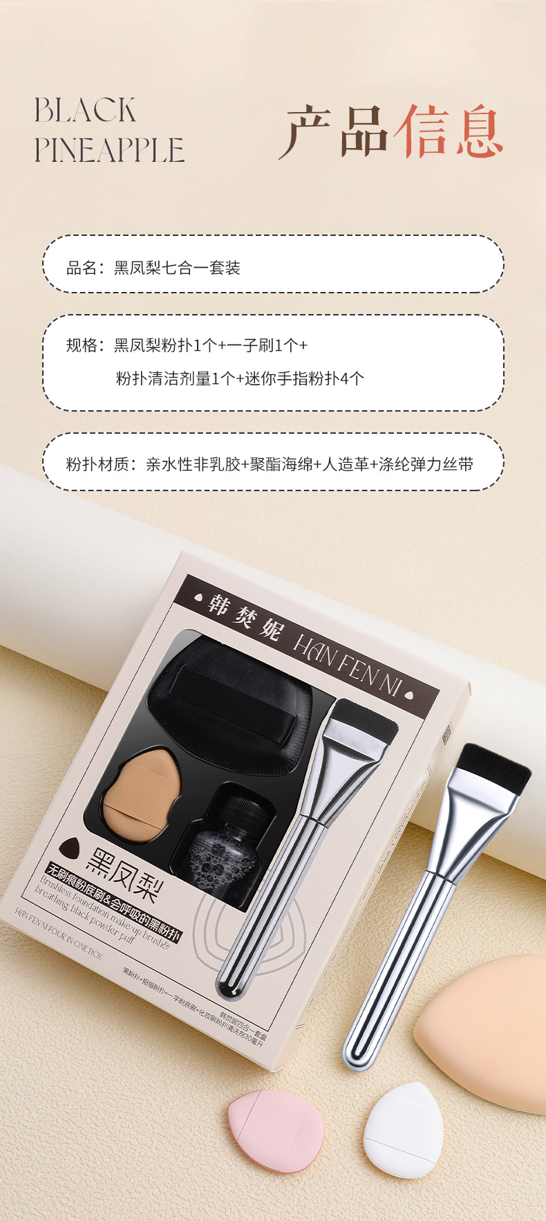 Piña negra triángulo polvo base un cepillo de maquillaje limpio detergente pulgar polvo cojín de aire 7 piezas conjunto