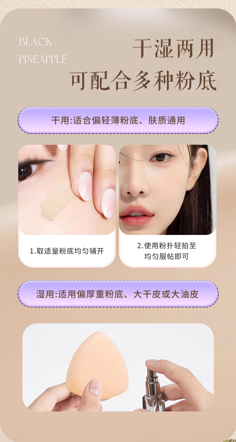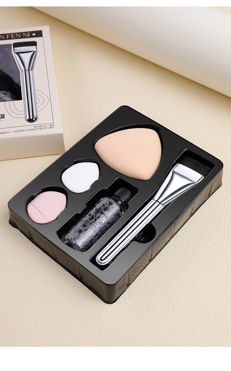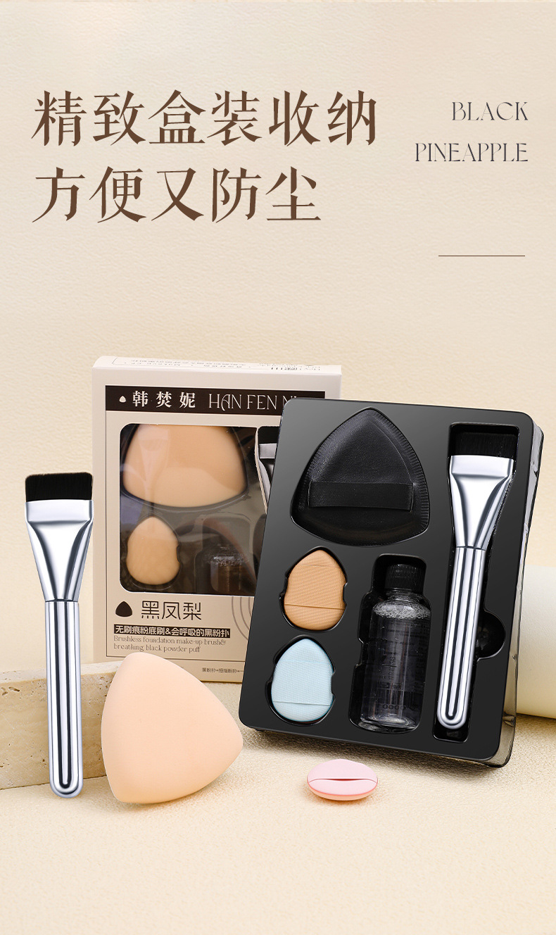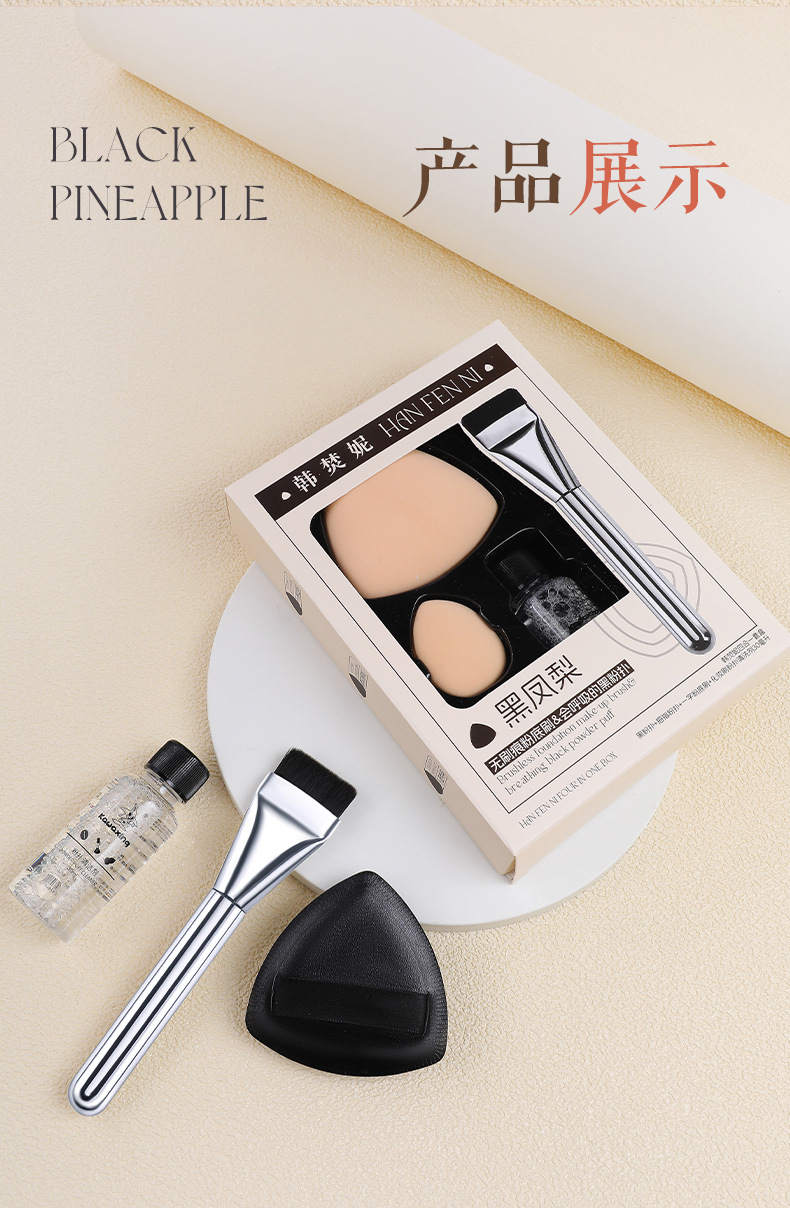 Piña negra triángulo polvo base un cepillo de maquillaje limpio detergente pulgar polvo cojín de aire 7 piezas conjunto