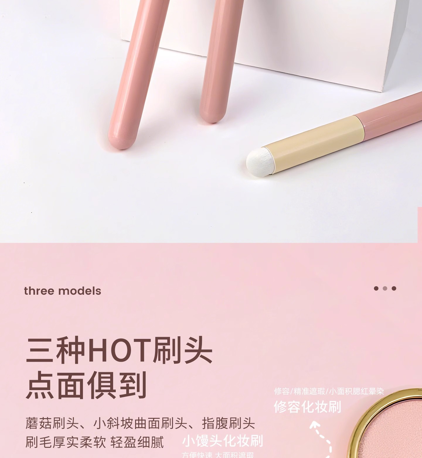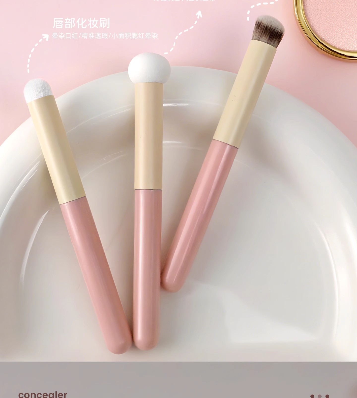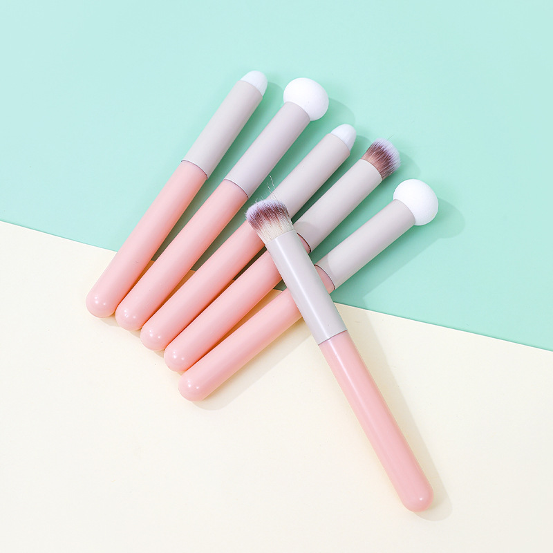 Los fabricantes venden al por mayor pequeños bollos al vapor, brochas de maquillaje, cepillos correctores de tres piezas, cepillos de labios oblicuos, cepillos de manchas que no dejan marcas, cabeza de hongo de esponja