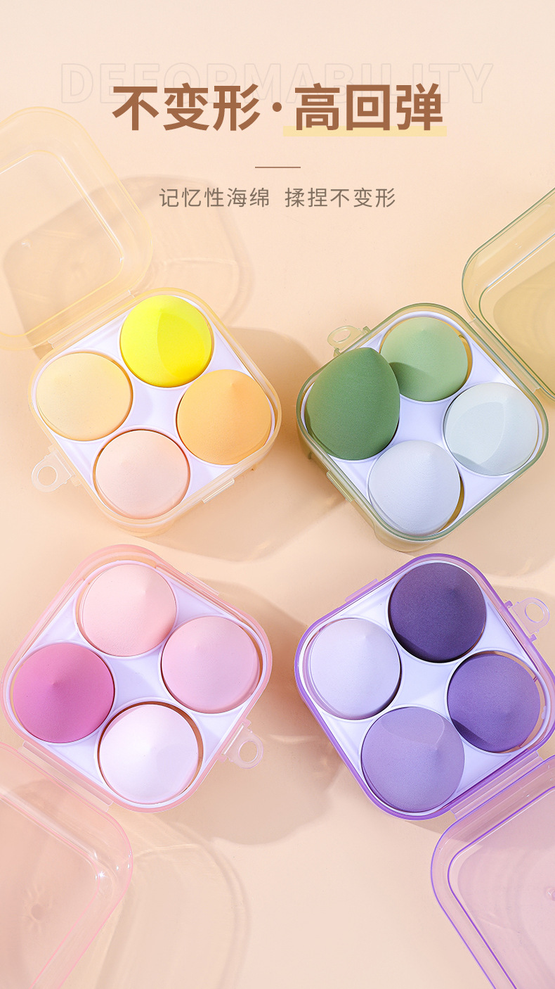 Nuevo 4 caja de polvo de huevo de maquillaje no es látex super suave no comer polvo de maquillaje esponja de maquillaje huevo gota de agua cortada oblicuamente