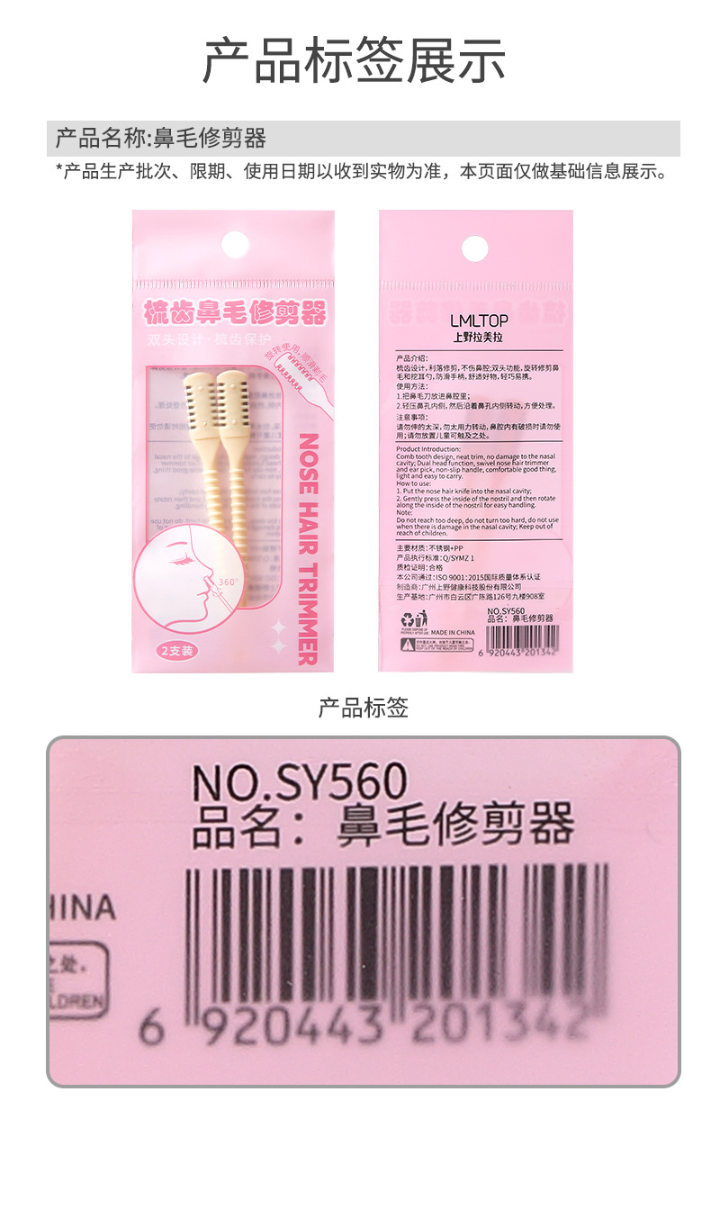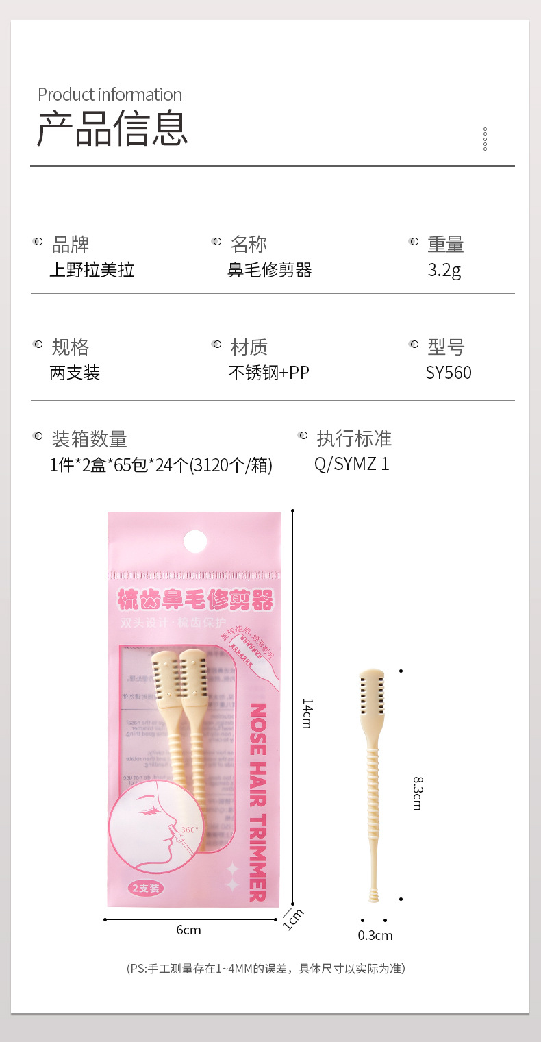 Cortadora de pelo de nariz de doble propósito LMLTOP con dientes de peine, tijeras de pelo de nariz, herramienta de excavación de orejas en espiral SY560