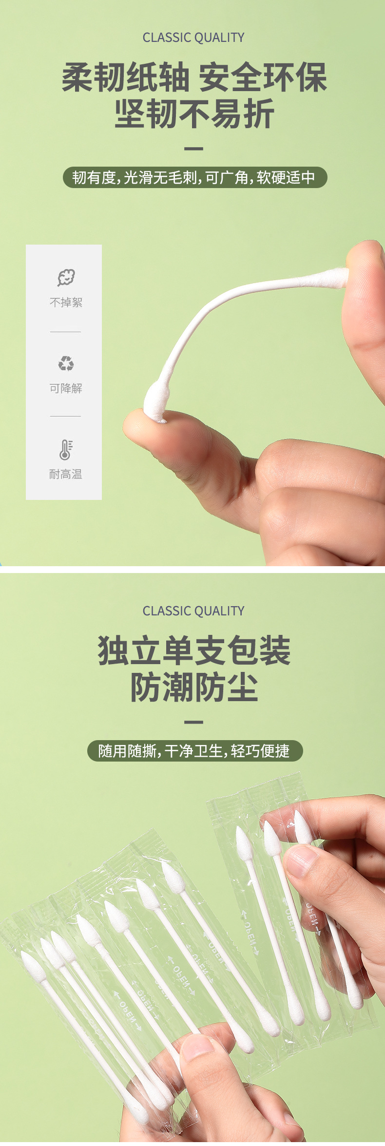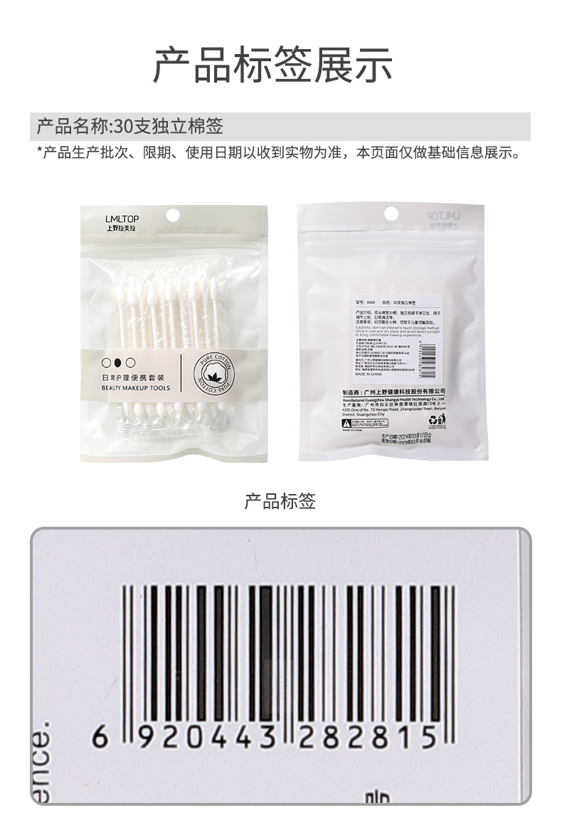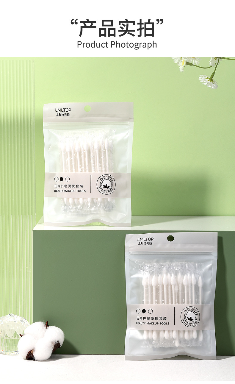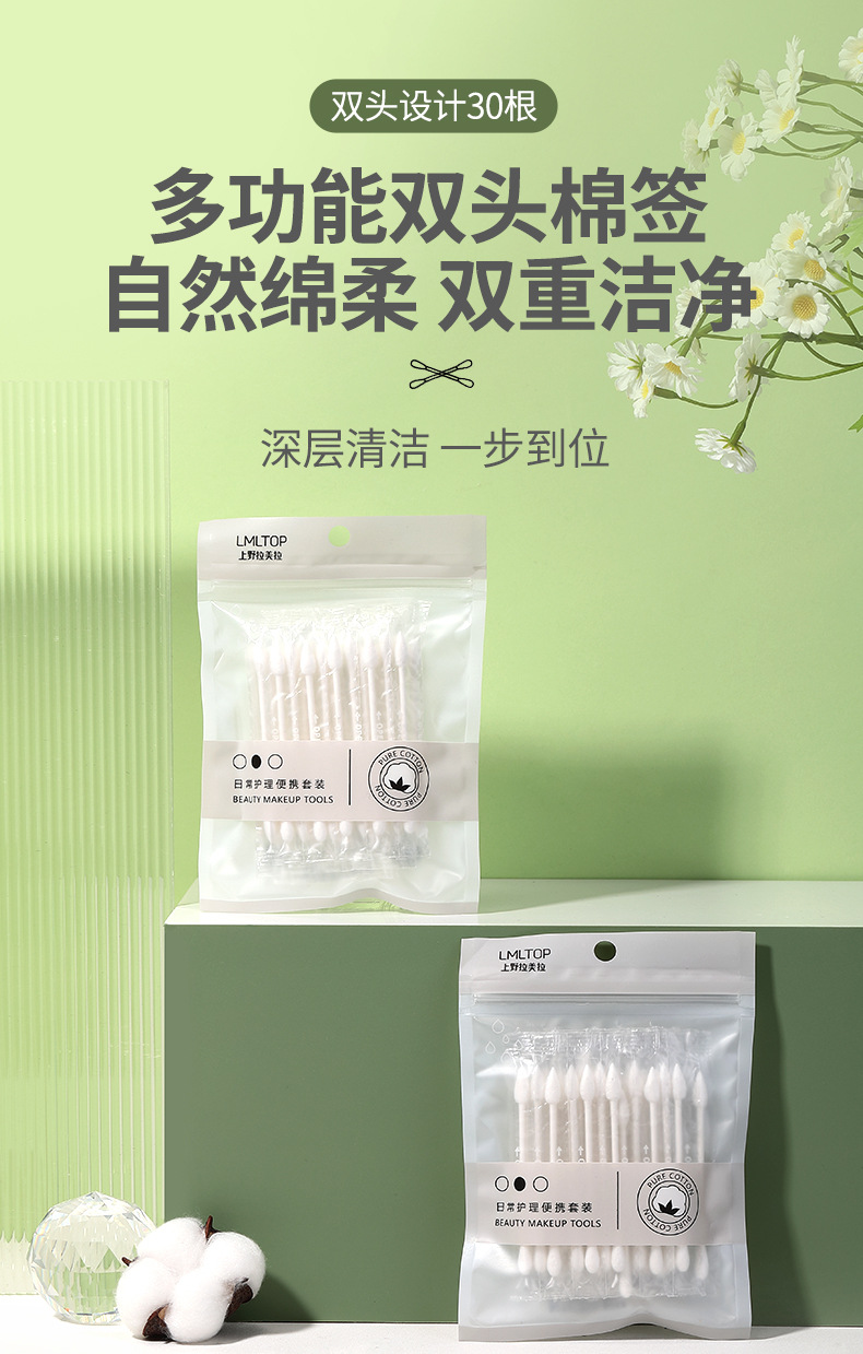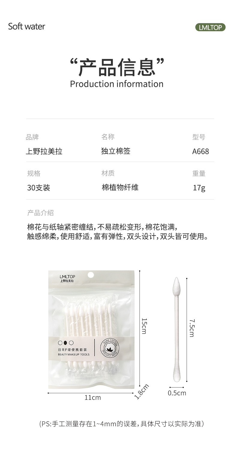 Ramila 30 hisopos de algodón de embalaje independiente de viaje portátil de doble cabeza palos de papel desechables de maquillaje hisopos de algodón A668