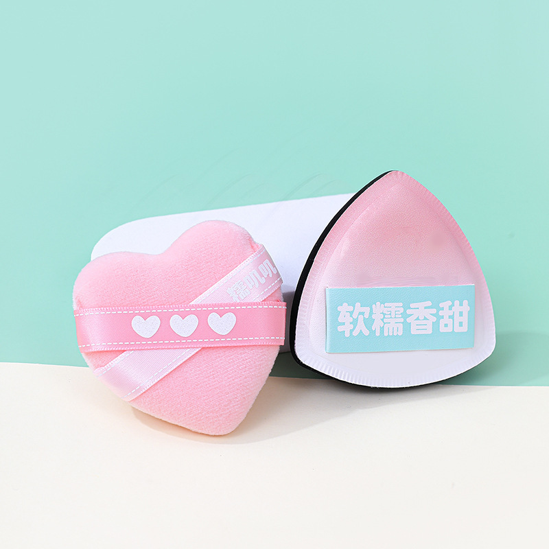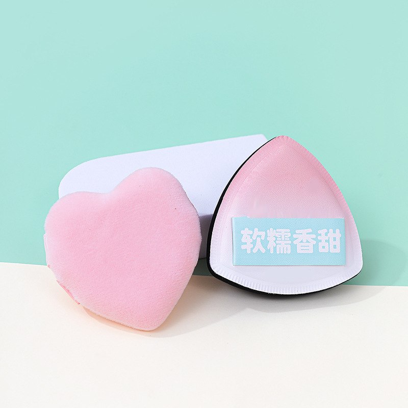 Puff triangular, algodón de azúcar, súper suave, grueso, seco y húmedo, amor de doble uso, doble cinta, flocado, polvo suelto, esponja de maquillaje, cojín de aire