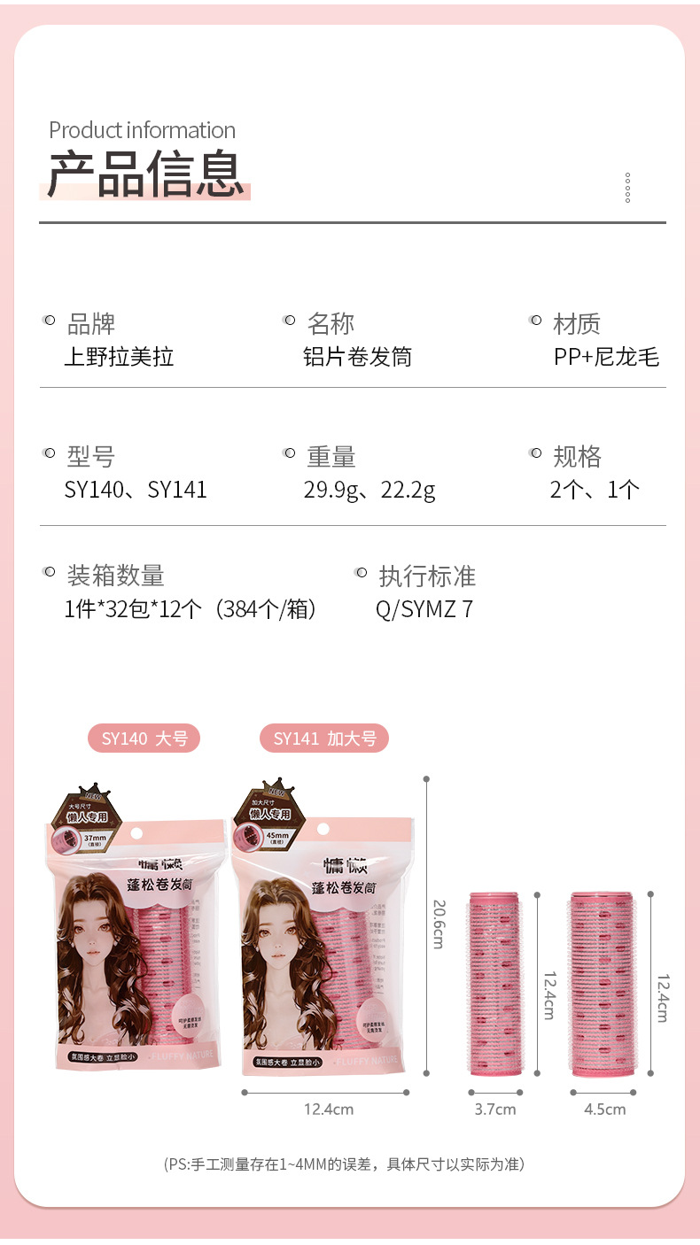 | Especificaciones | Largo 37mm (dos paquetes), más grande 45mm (paquete único), puede personalizar la bobina de rizos (a granel) |