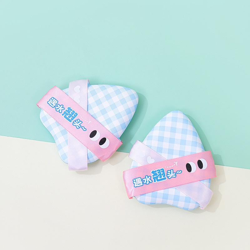 Fábrica personalizada doble cinta triángulo polvo cojín de aire super suave no comer base líquida esponja de maquillaje seca y húmeda