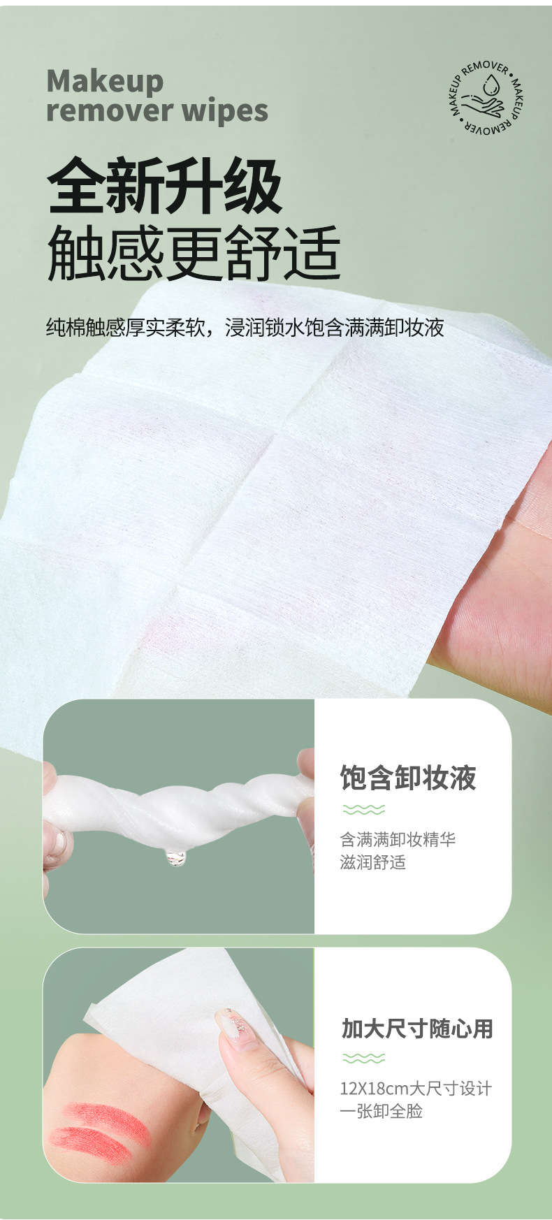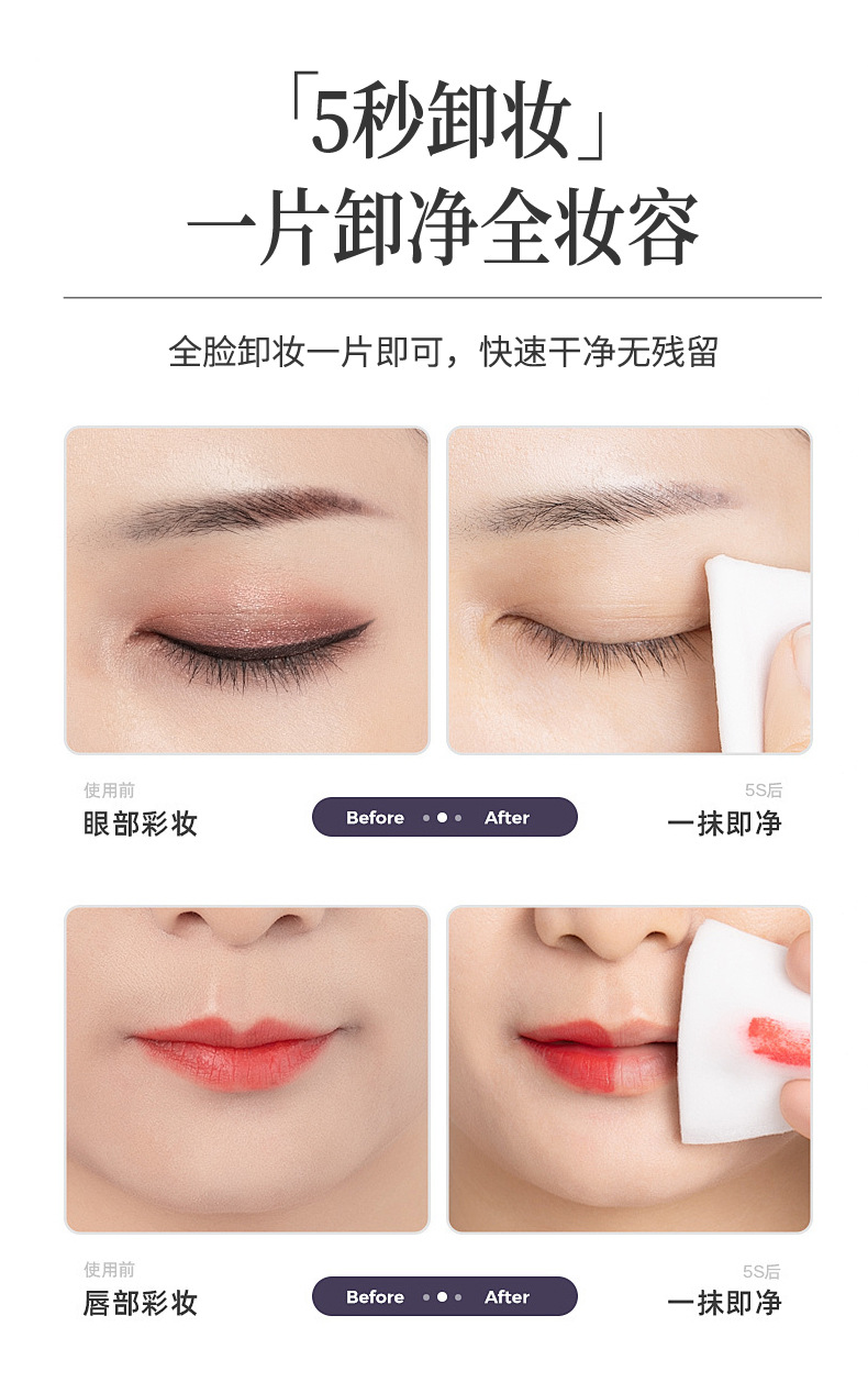 UEN071 Toallitas desmaquillantes suaves, 60 unidades (folleto mejorado de 120*180mm)