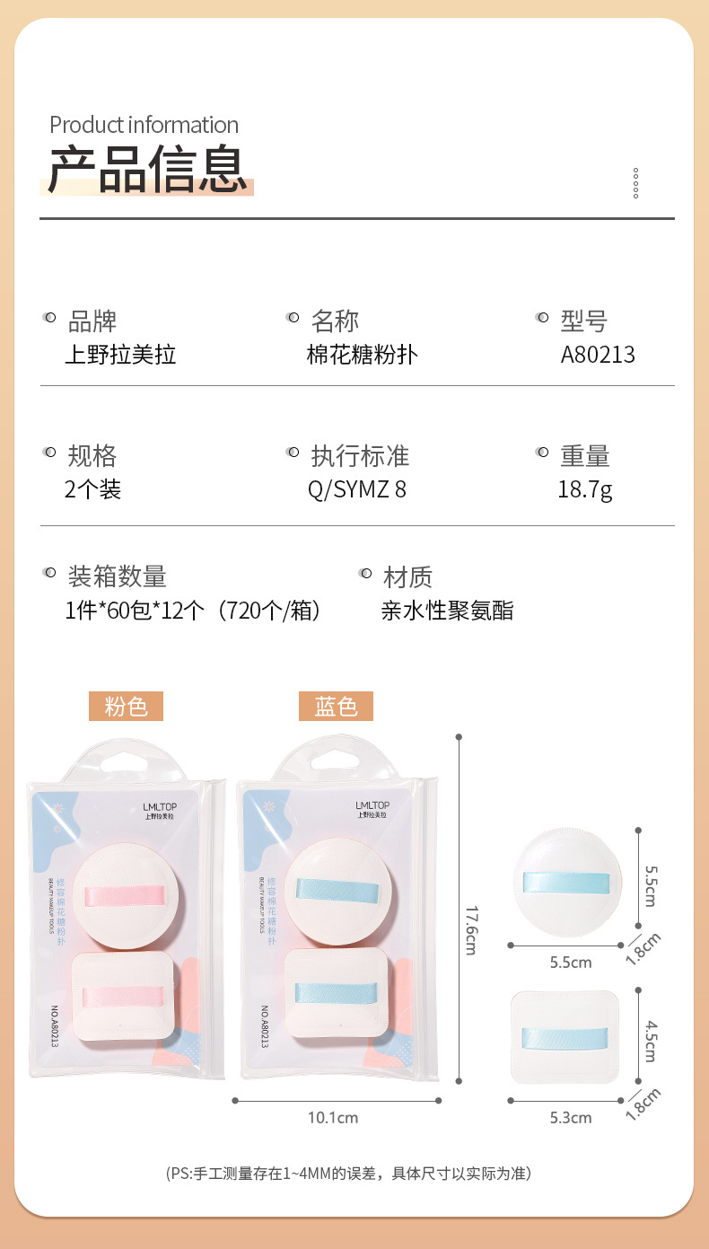LMLTOP Algodón de azúcar Puff Dos paquetes Base líquida cuadrada Cojín de aire Puff de maquillaje A80213