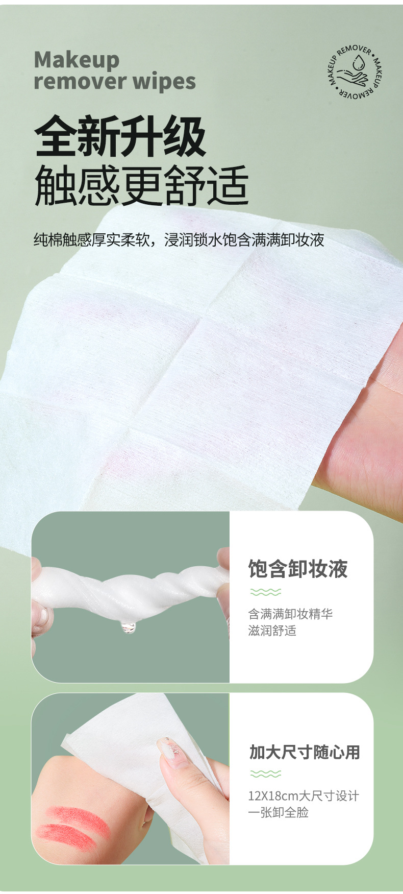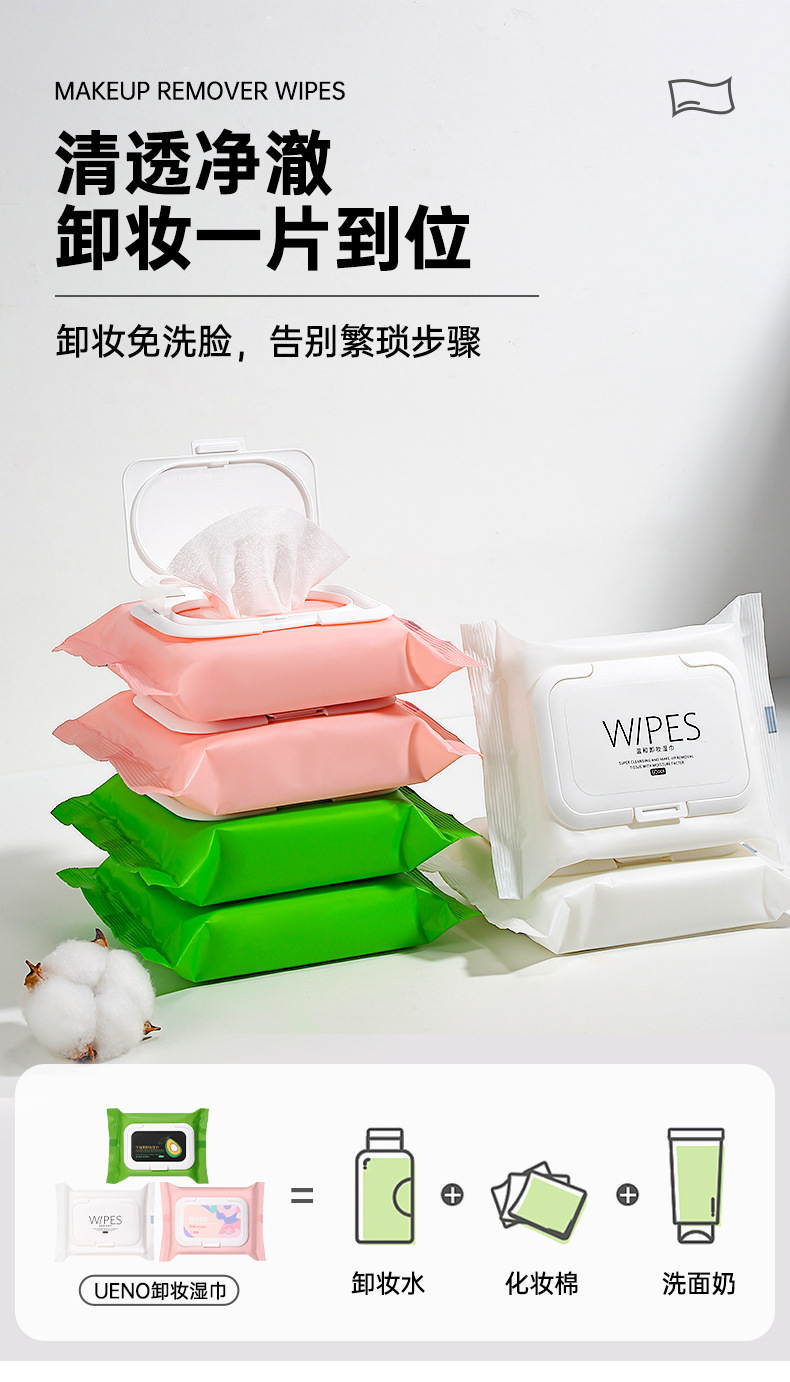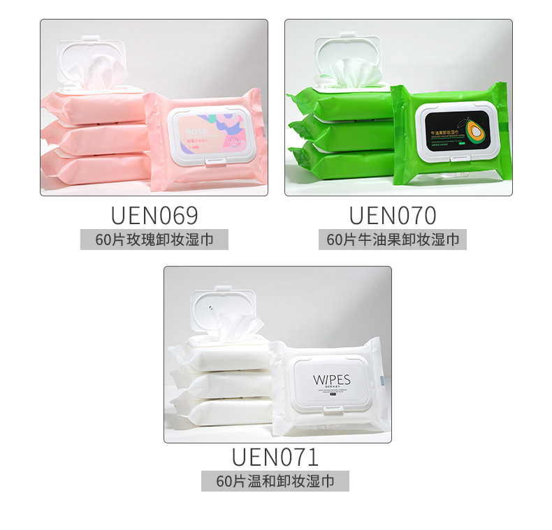 UENO toallitas de desmaquillaje de 60 piezas, toallitas de desmaquillaje de extracción suave de aguacate rosa más gruesa.