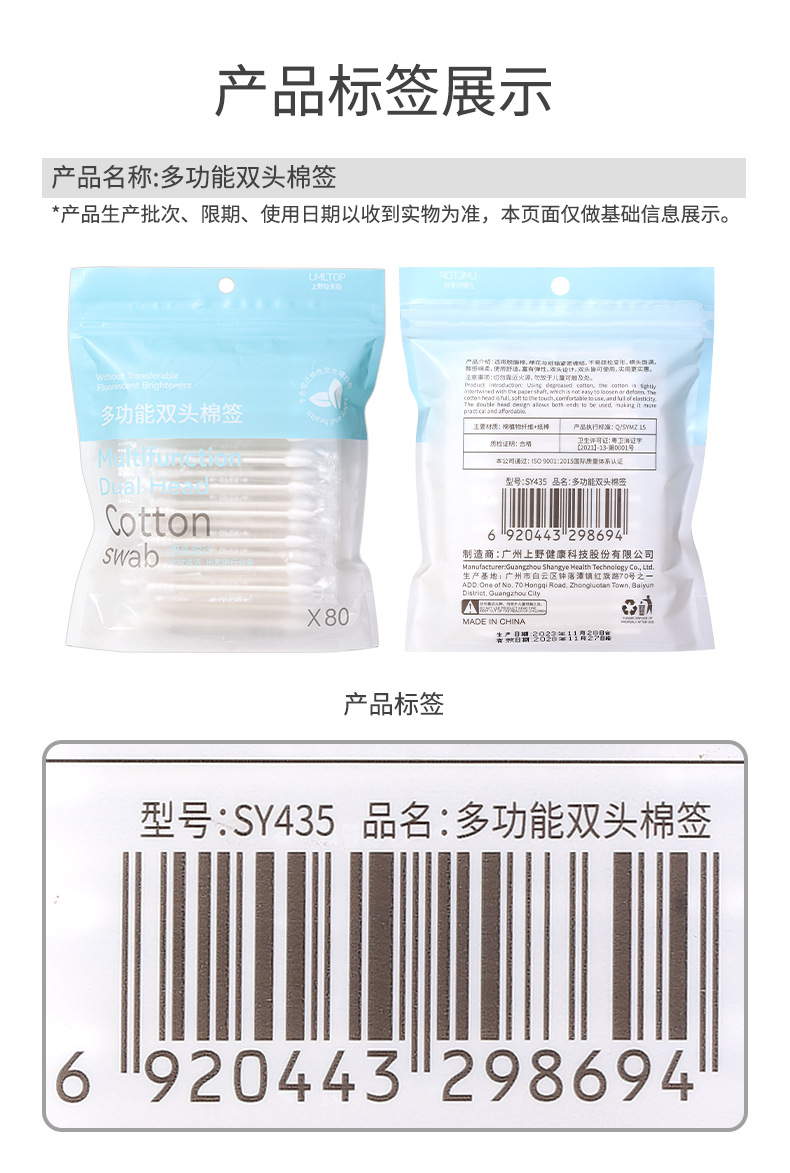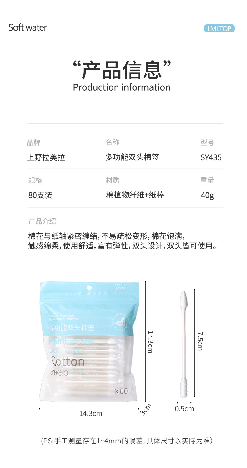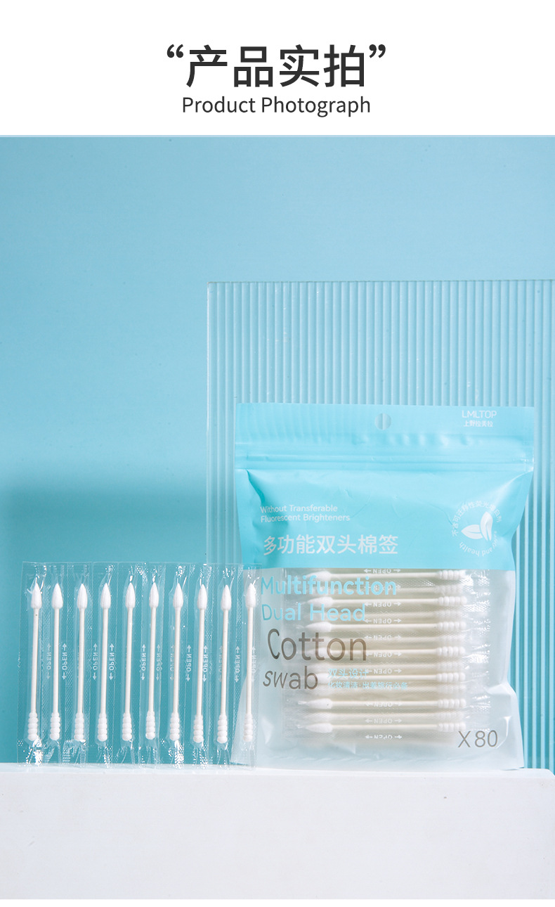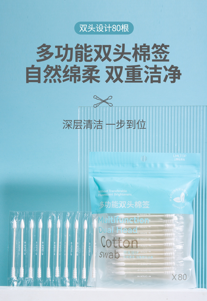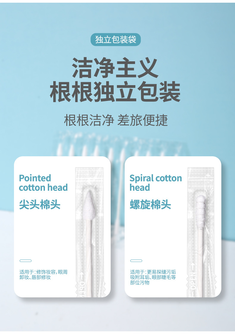 LMLTOP 80 hisopo de algodón de embalaje independiente punta espiral cabeza desechable maquillaje limpieza hisopo de algodón SY435