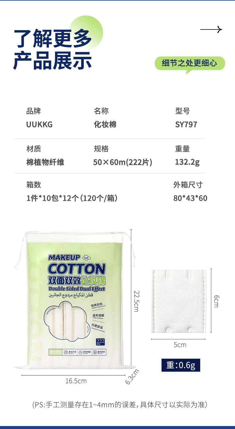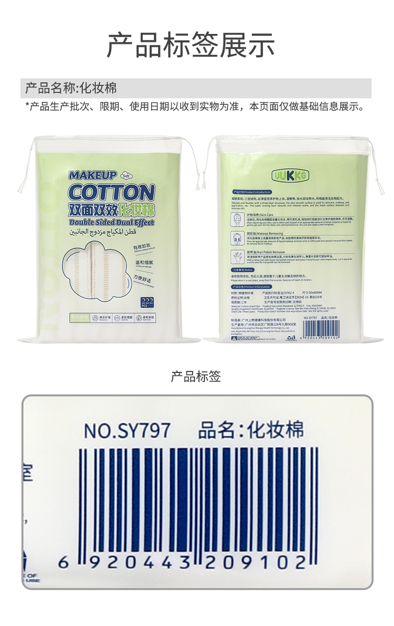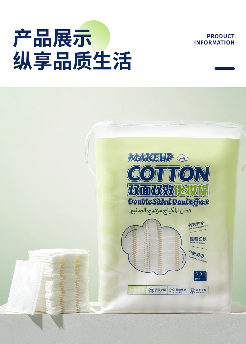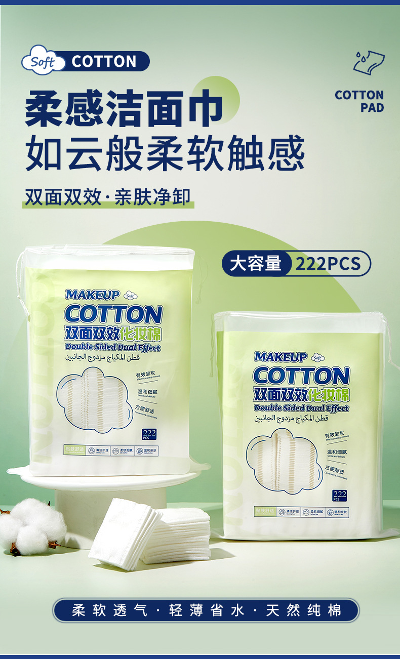 UUKKG grueso algodón maquillaje de doble cara 222 piezas de salón de belleza especial limpieza facial desmaquillaje algodón húmedo