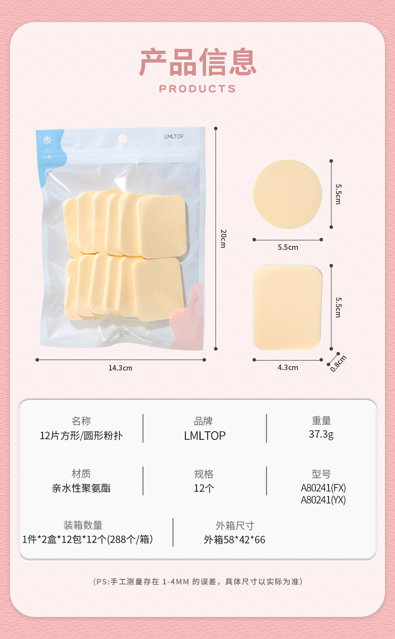 LMLTOP polvo cuadrado redondo 12 piezas de estudio de maquillaje especialista en polvo de maquillaje A80241