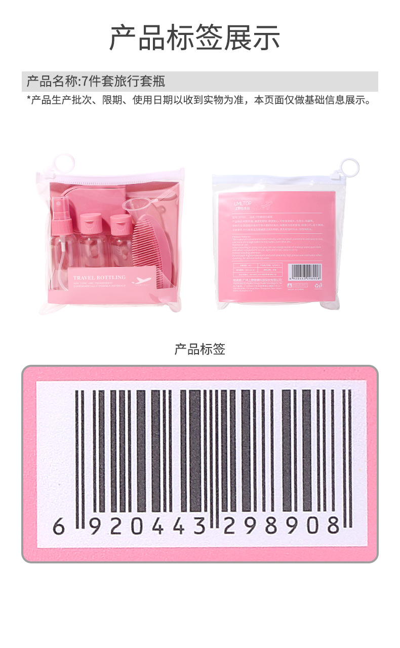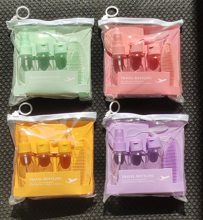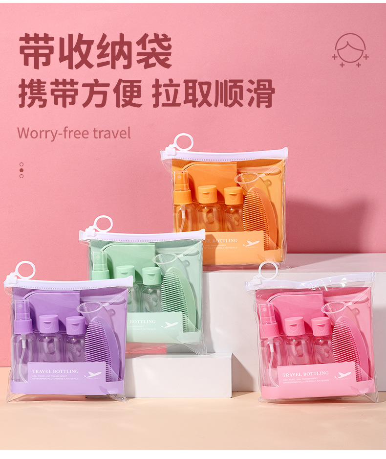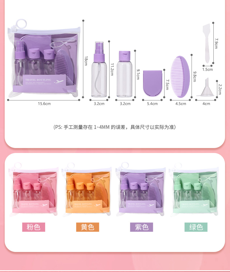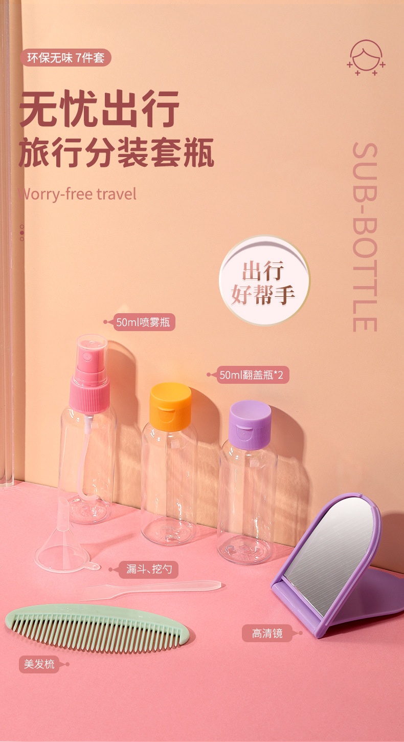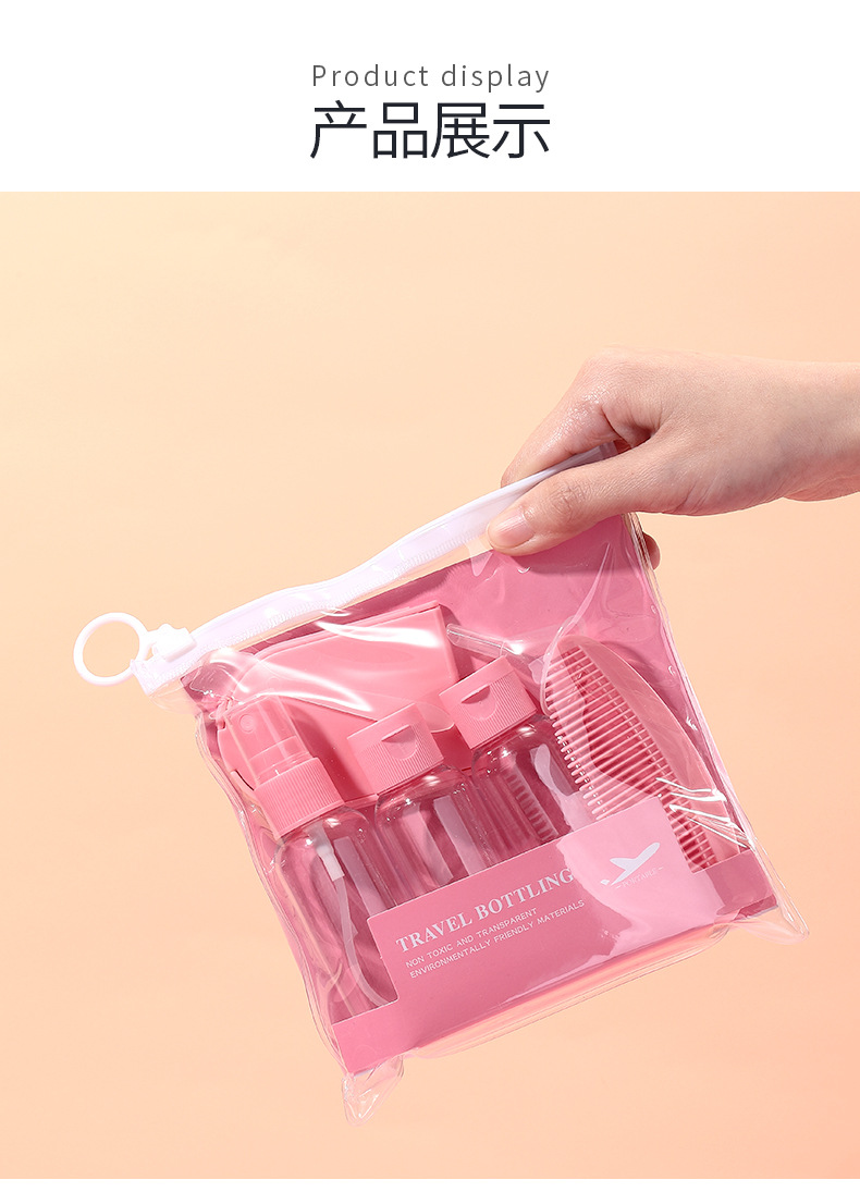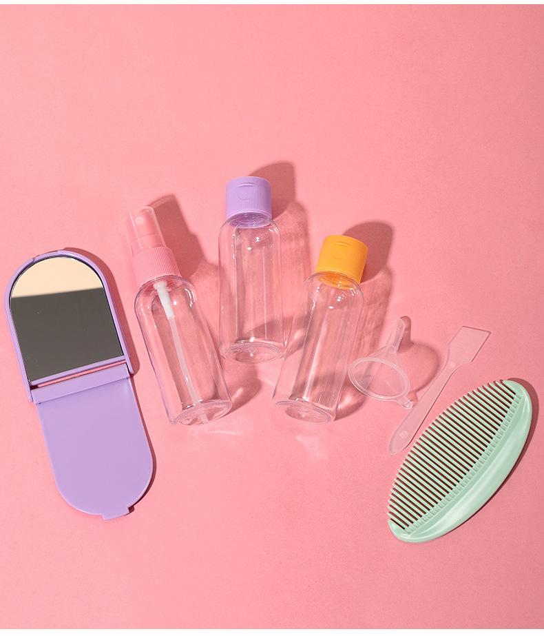 Lmltop botella vacía de viaje conjunto de 7 cosméticos sub-botella portátil cosmético espejo peine traje SY763