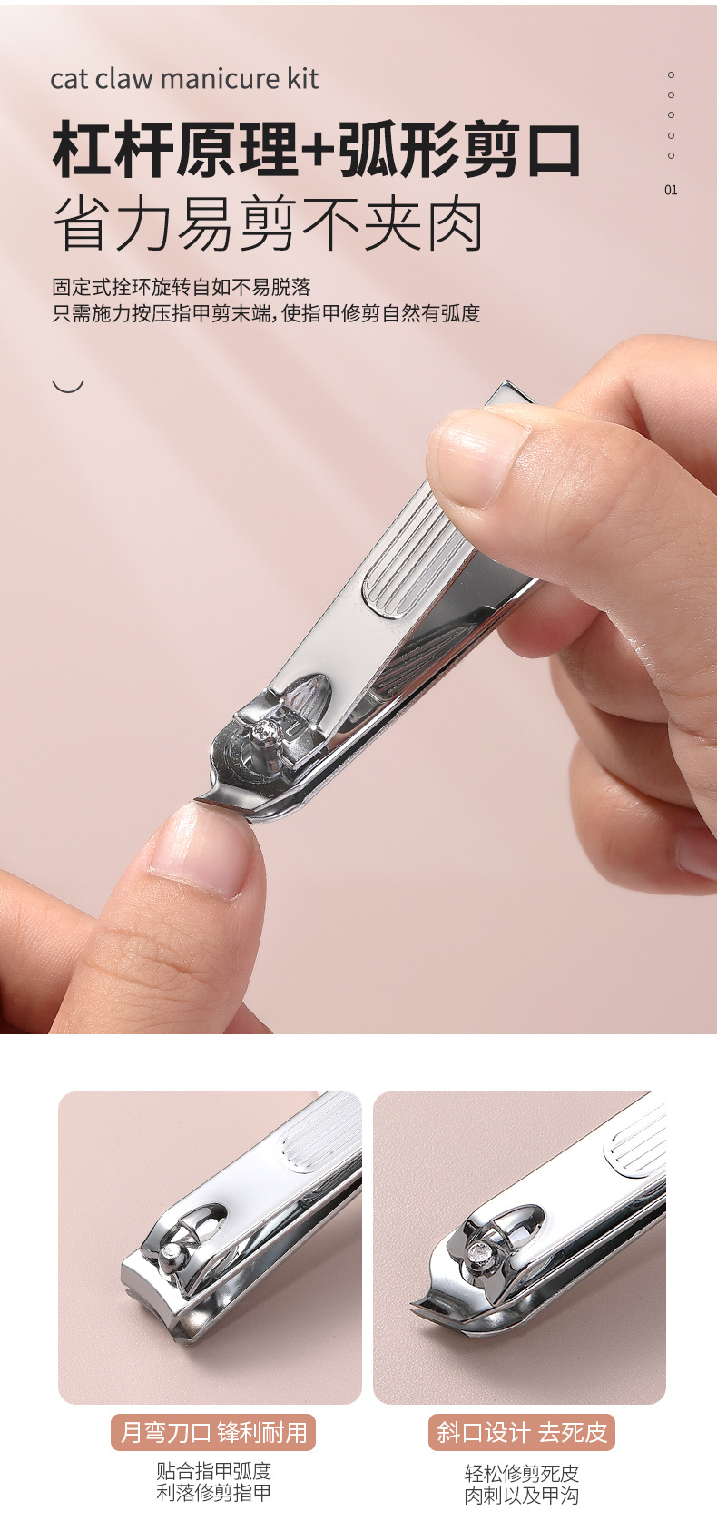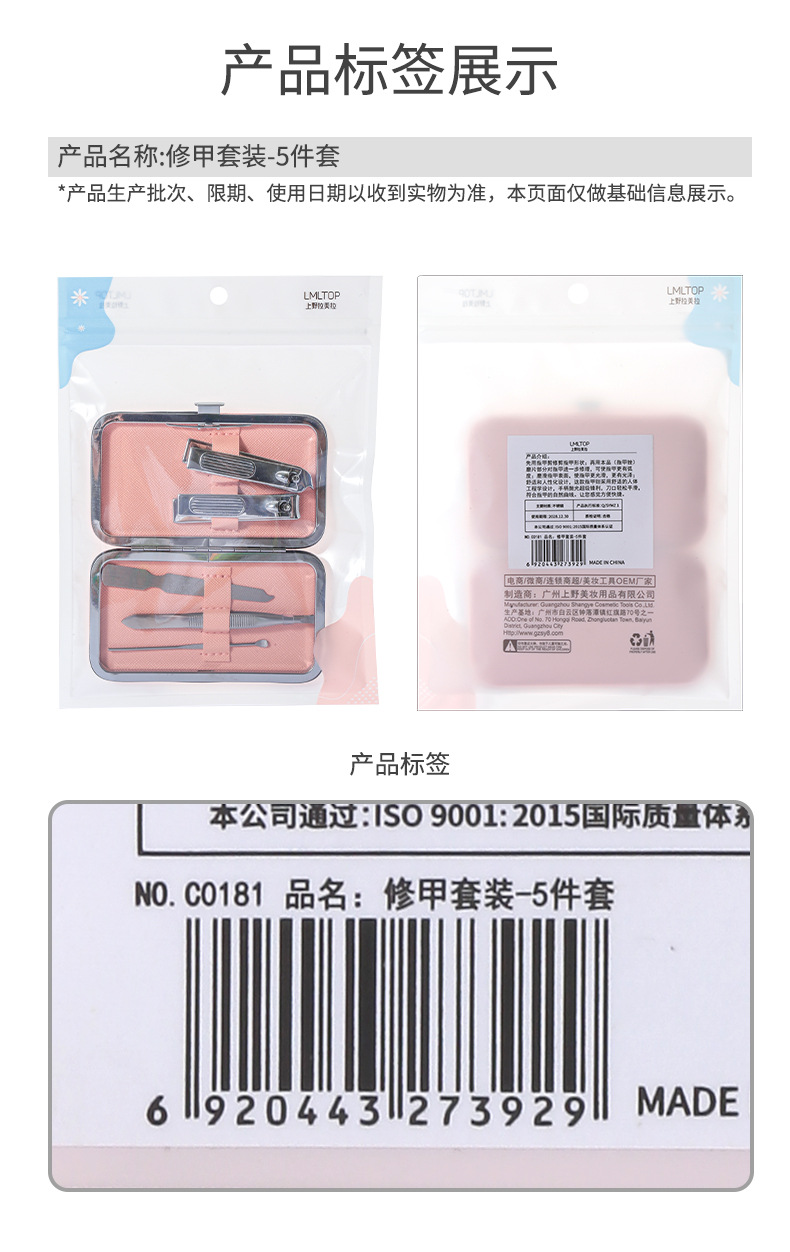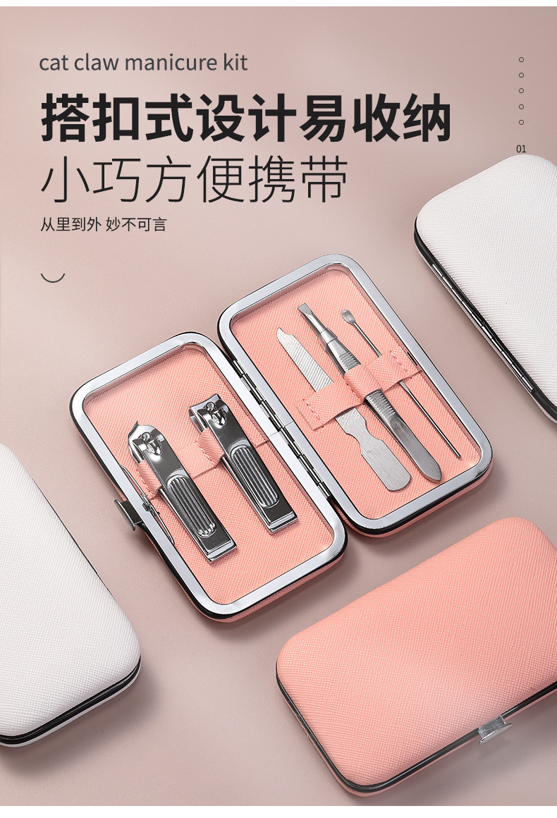 Ramila manicura de acero inoxidable juego de 5 piezas de almacenamiento portátil traje de manicura cortauñas amoladora de uñas Archivo de pulido