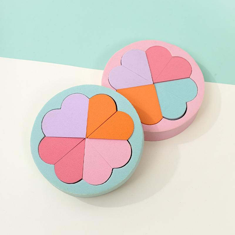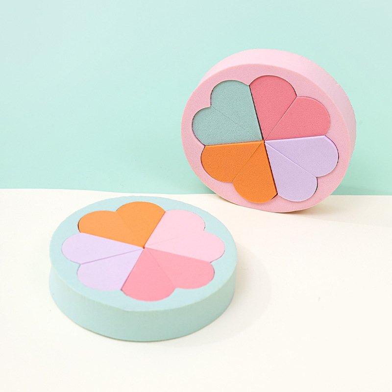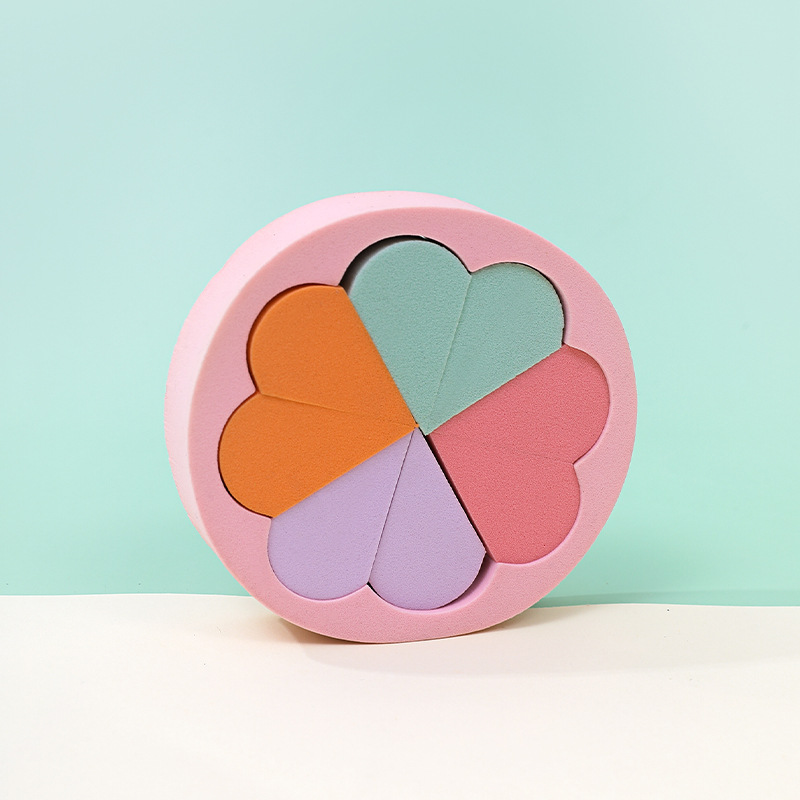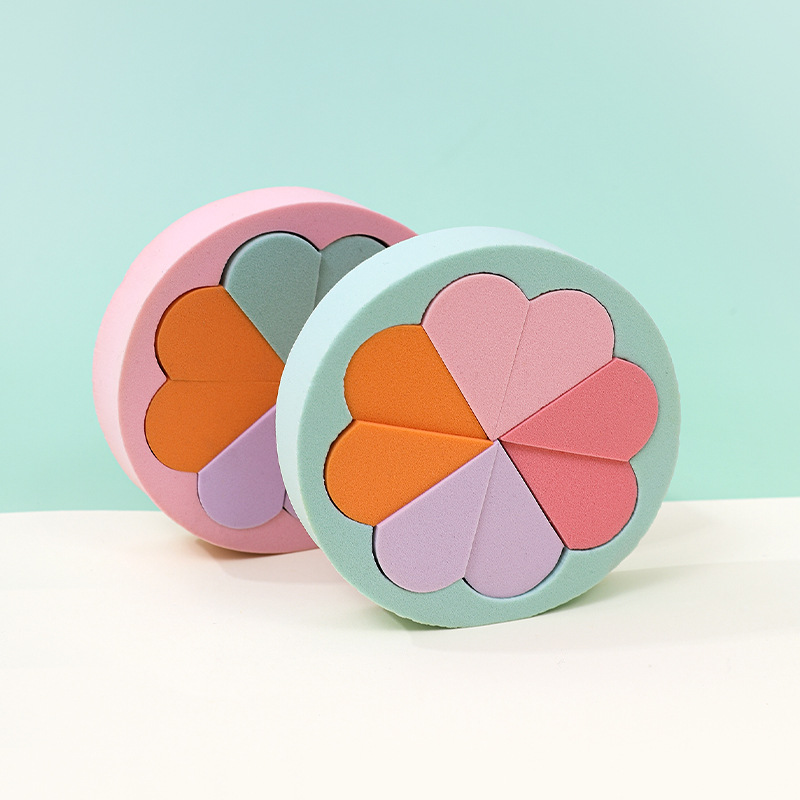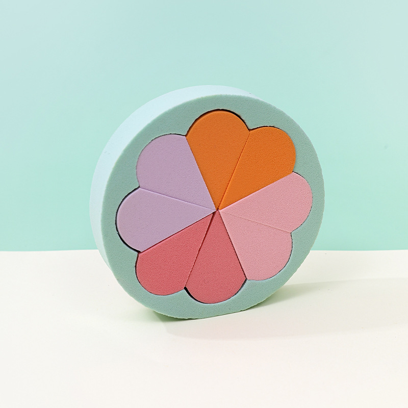 Puff plano personalizado de fábrica, triángulo, seis pétalos redondos, ocho, esponja cosmética sin látex, grande en el agua, transfronterizo