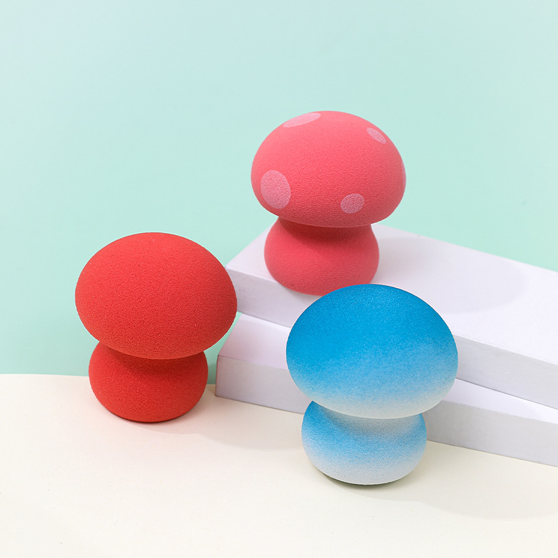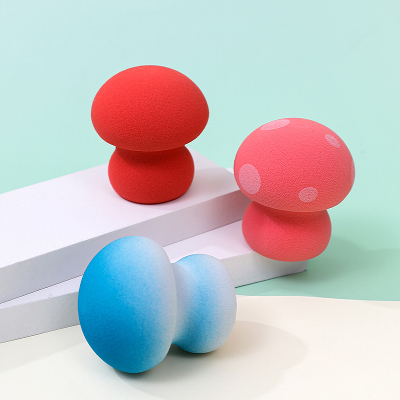 Huevo de belleza de cabeza de hongo personalizado de fábrica, no coma polvo, manchas de color degradado, maquillaje sin látex, esponja, huevo de maquillaje
