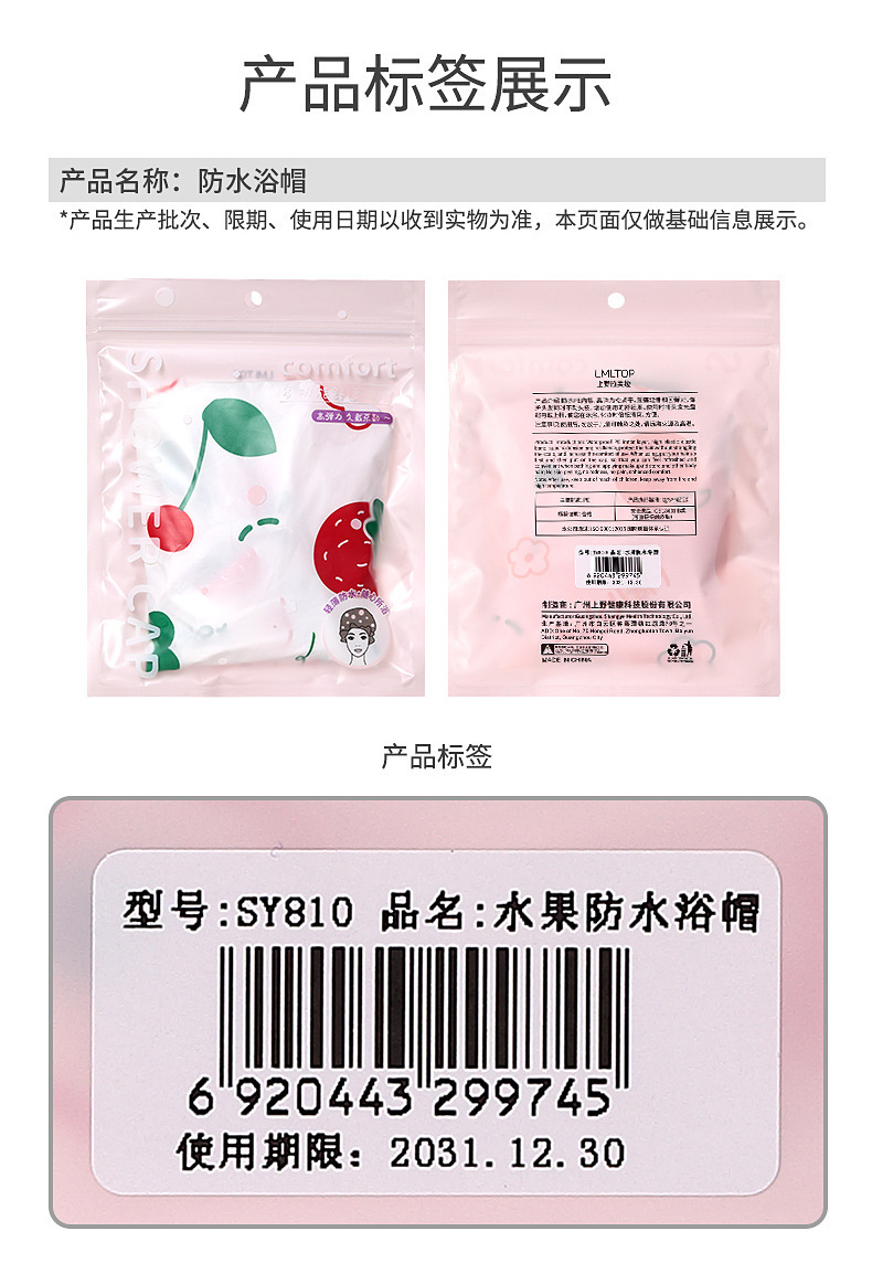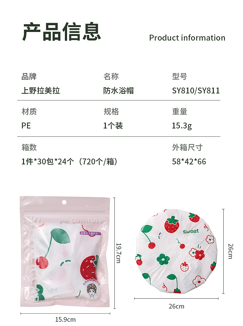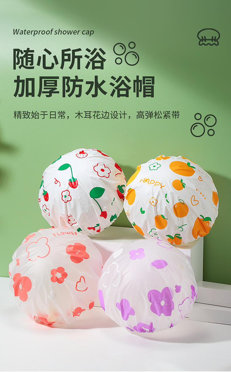 LMLTOP dibujos animados patrón de fruta gorra de baño gruesa pe impermeable gorra de ducha a prueba de humo gorra de pelo de baño SY810